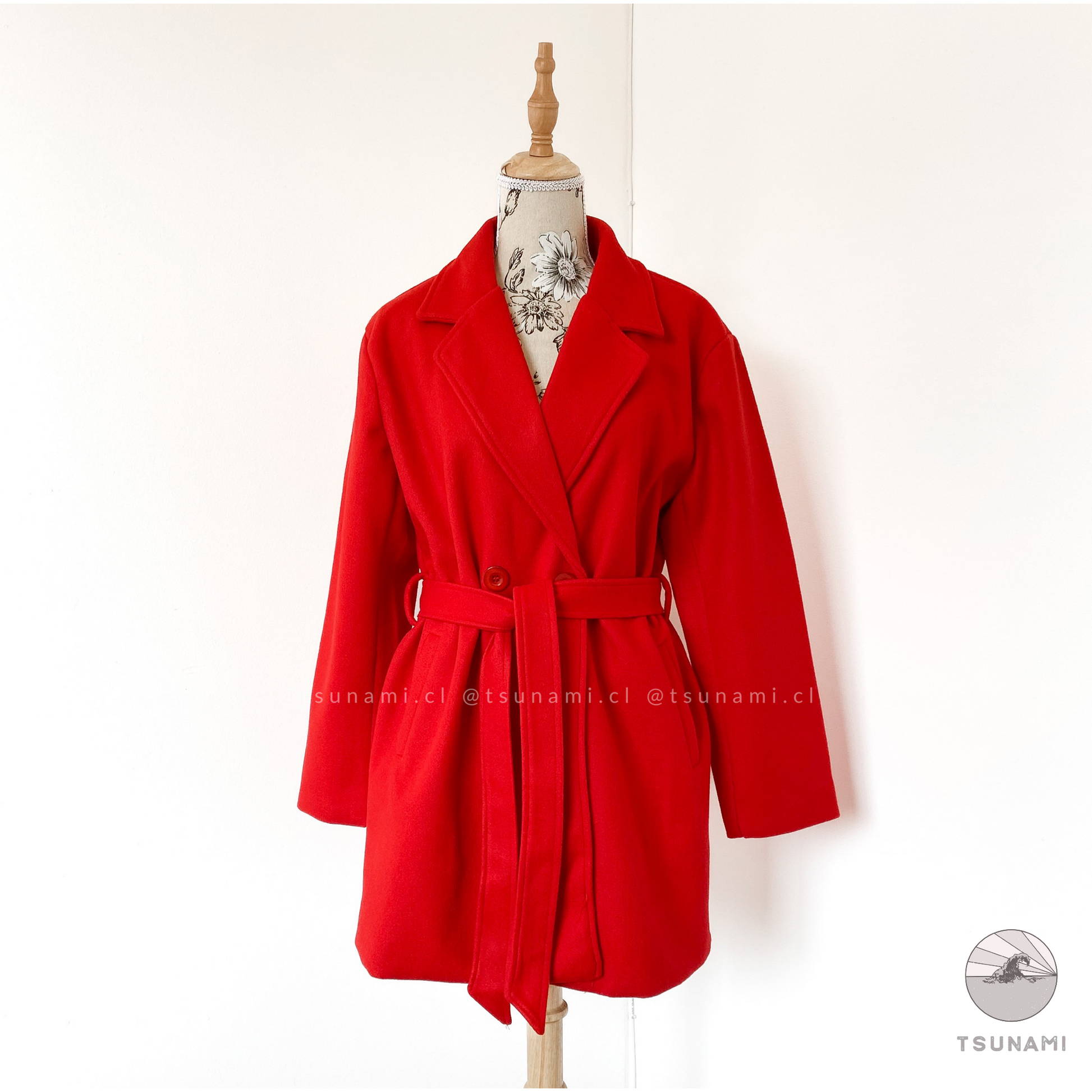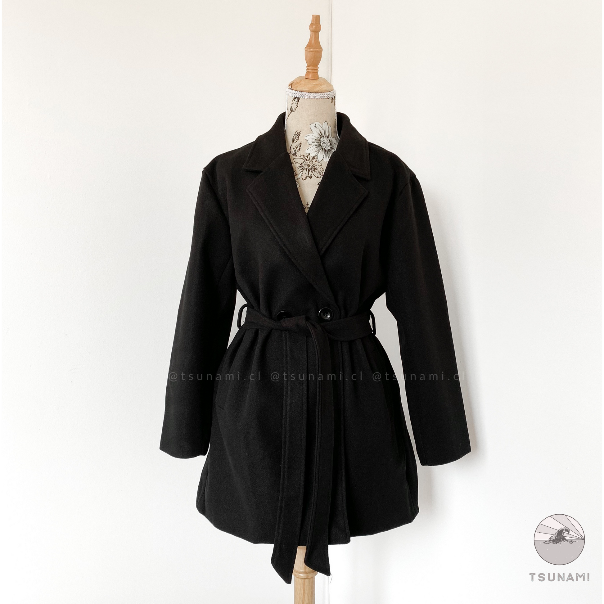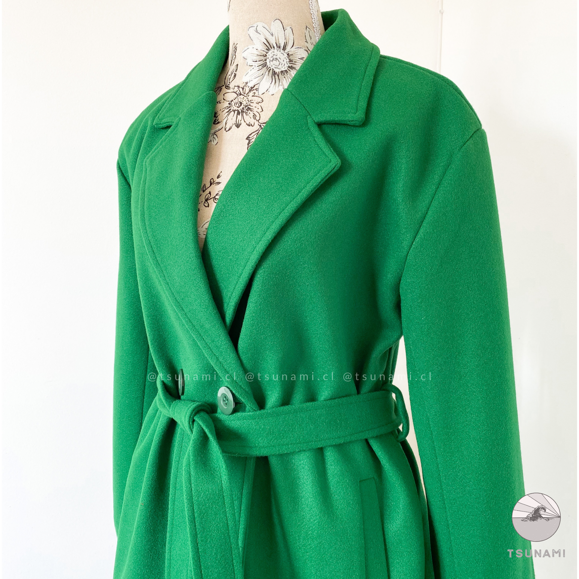 Abrigo de paño con forro interior satinado, bolsillos laterales funcionales, cierre frontal cruzado con botones y cinturón desmontable en color a tono. Trae un botón extra.