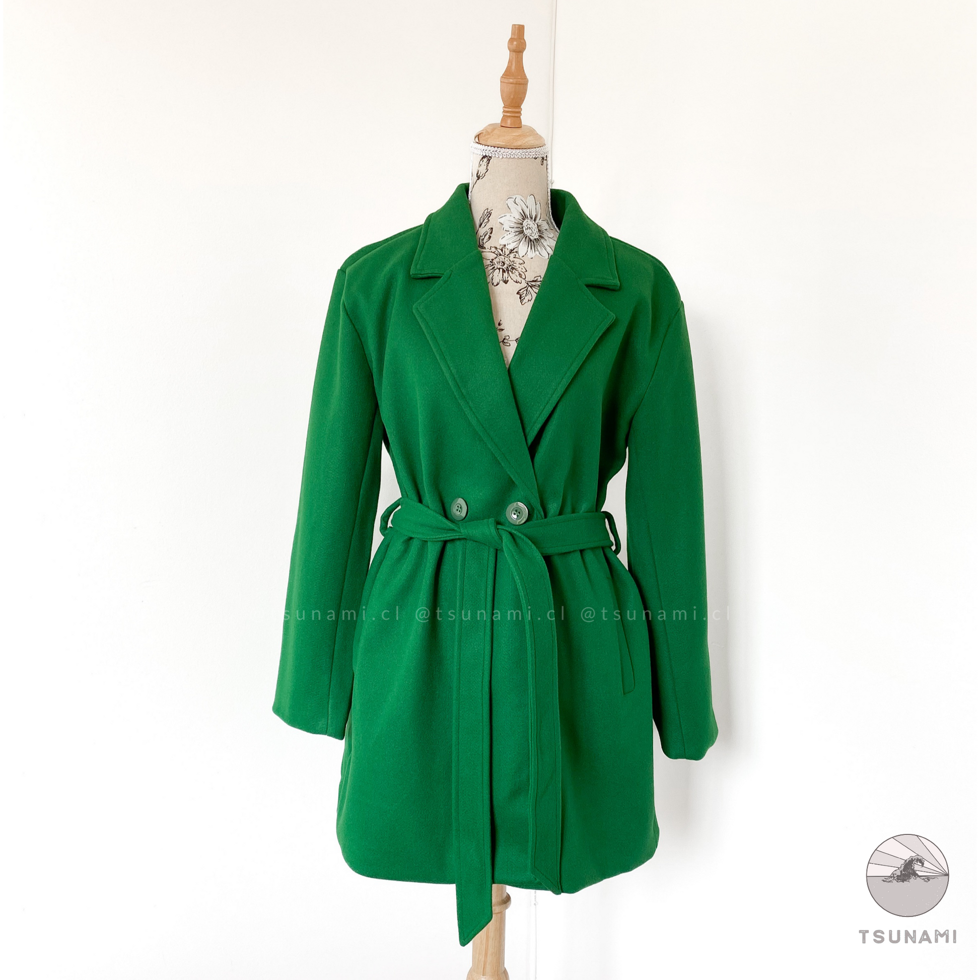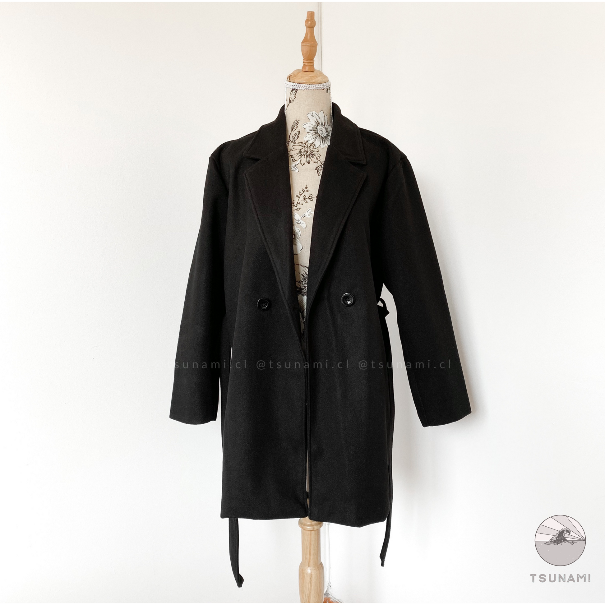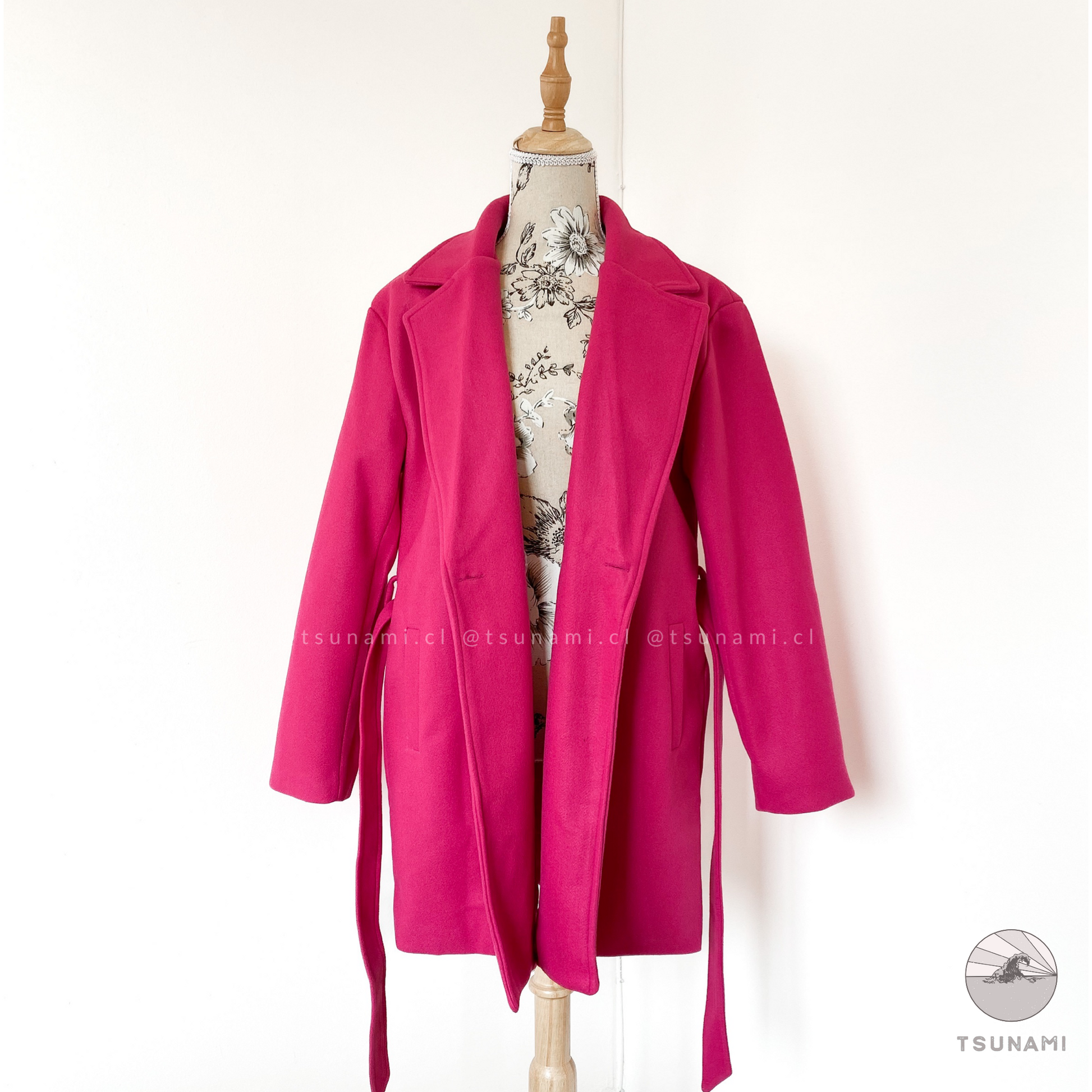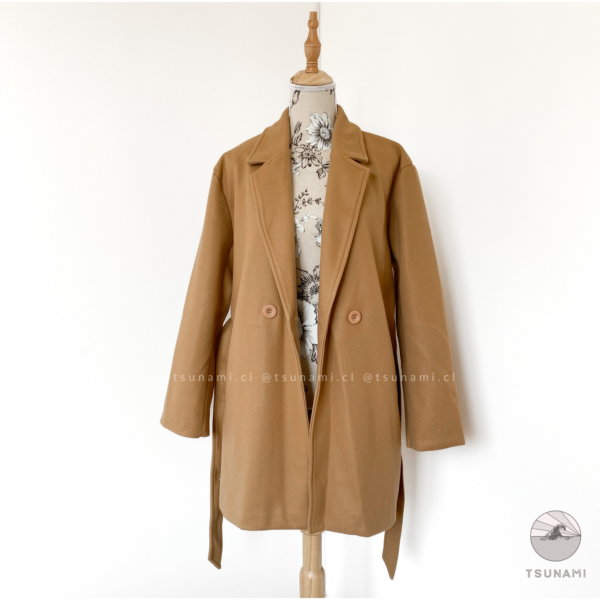 Abrigo de paño con forro interior satinado, bolsillos laterales funcionales, cierre frontal cruzado con botones y cinturón desmontable en color a tono. Trae un botón extra.