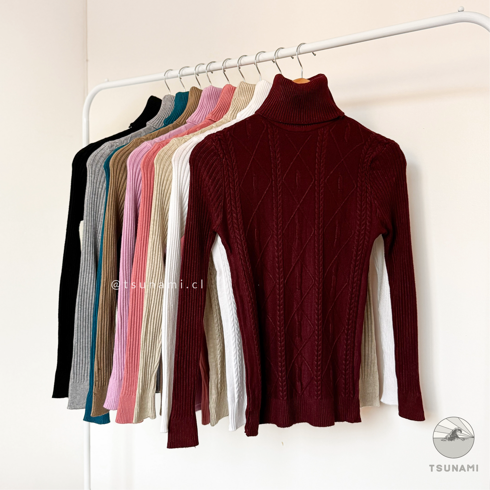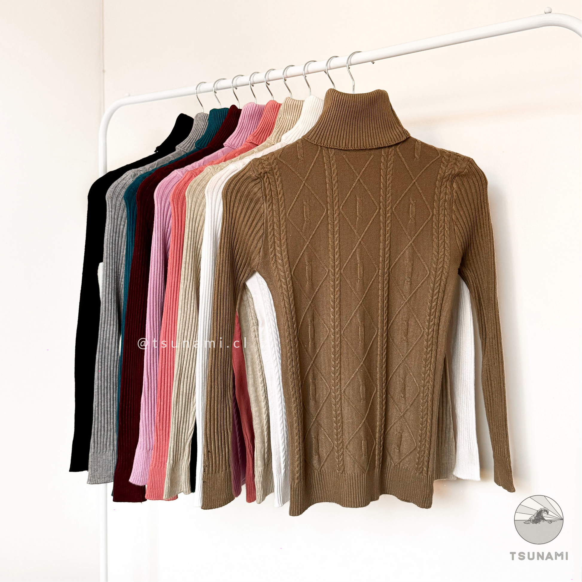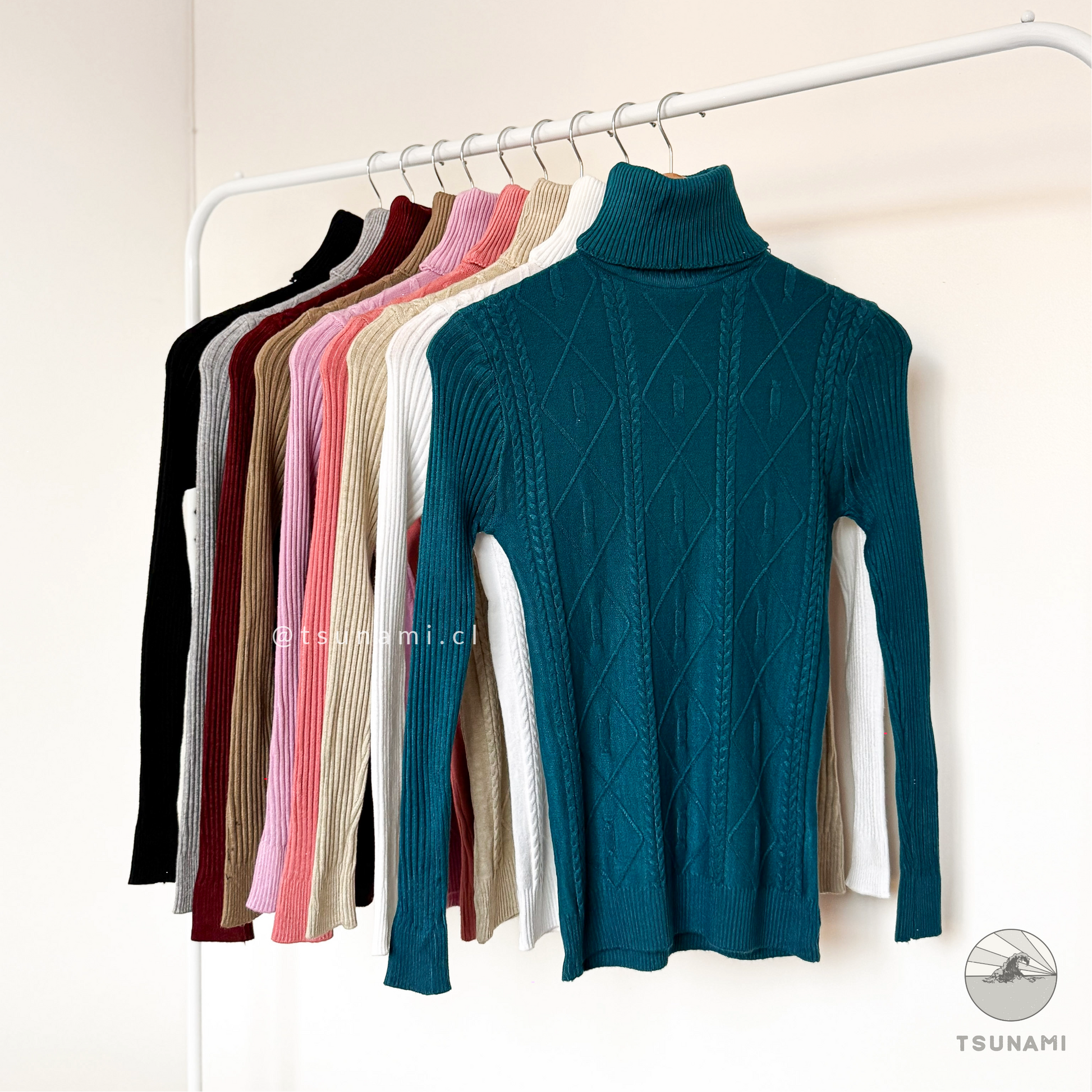 Este beatle de cuello alto con diseño de rombos es el match perfecto entre estilo y abrigo 😍. Su tejido acanalado y el patrón en relieve le dan ese toque femenino y delicado que eleva cualquier outfit sin esfuerzo. Se adapta al cuerpo sin apretar gracias a su material elasticado, lo que lo hace ideal para usar bajo chaquetas o blazers, o como protagonista en tus looks más casuales. Un básico renovado que no puede faltar en tu closet esta temporada y que además queda increíble 💖