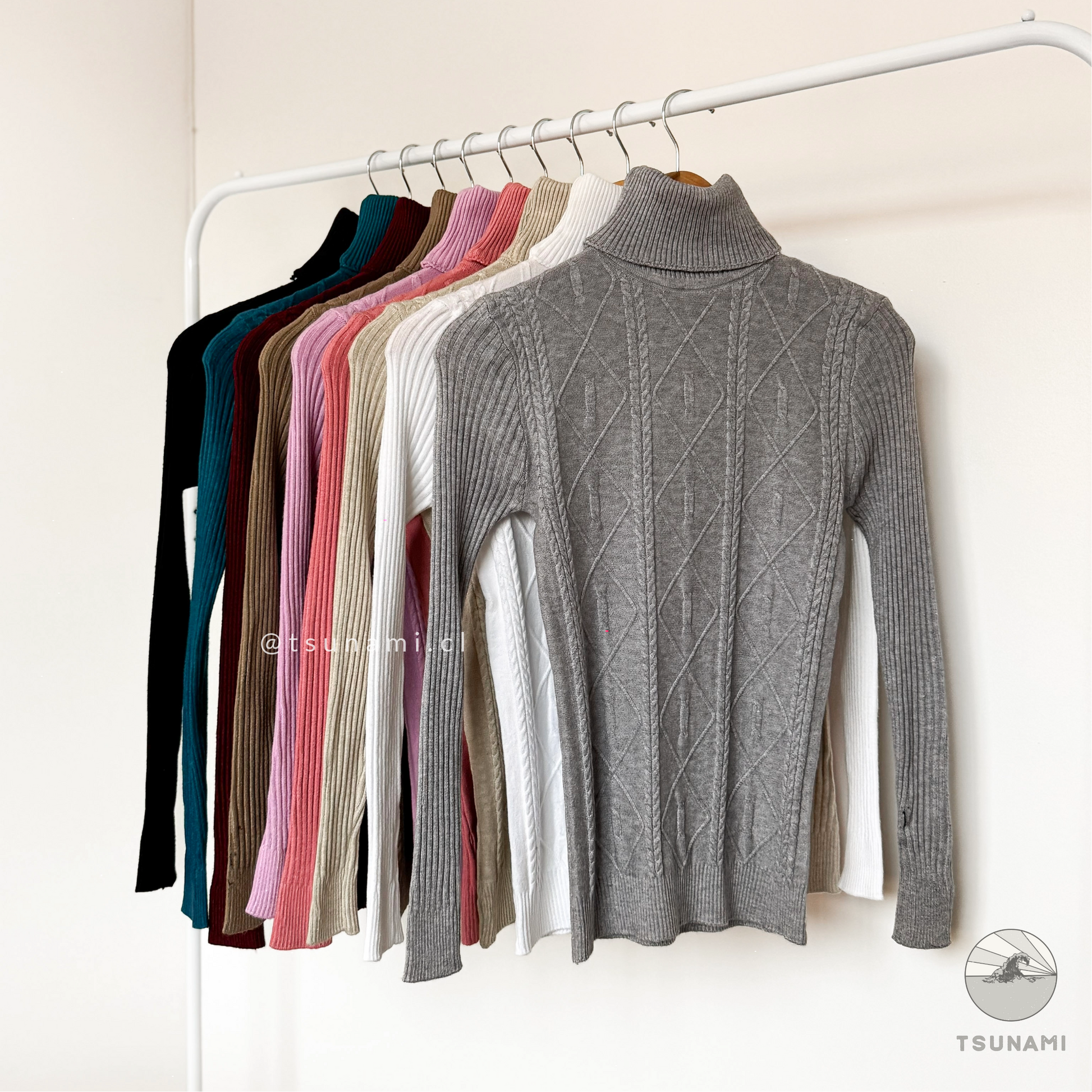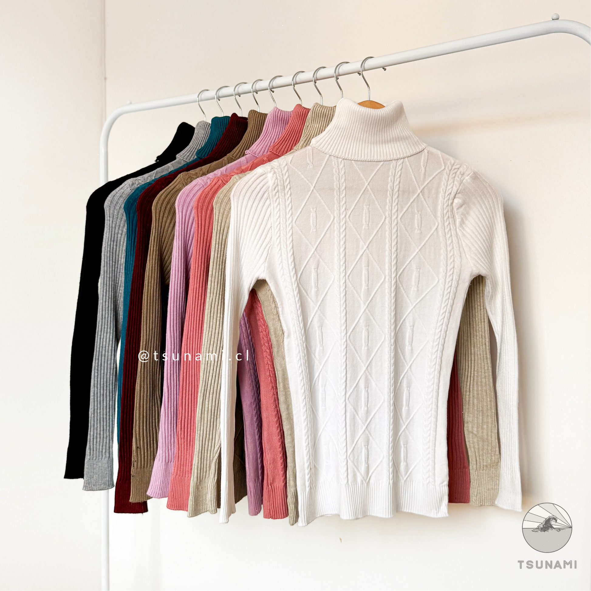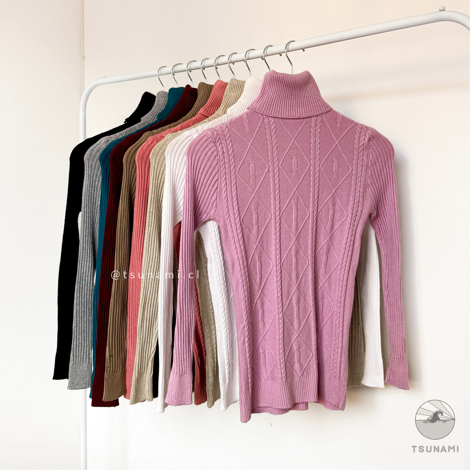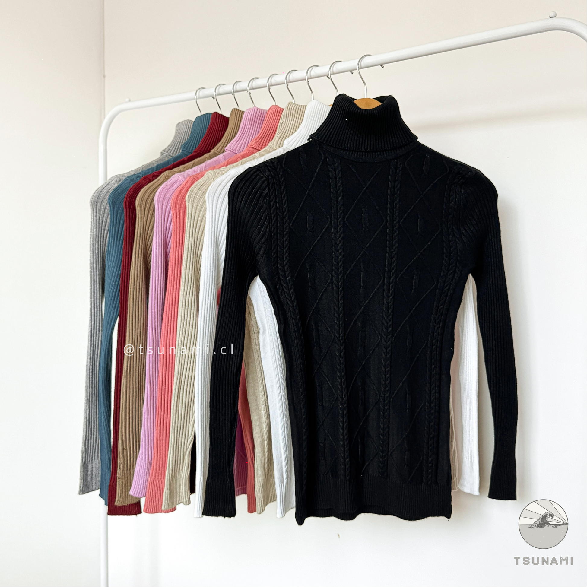 Este beatle de cuello alto con diseño de rombos es el match perfecto entre estilo y abrigo 😍. Su tejido acanalado y el patrón en relieve le dan ese toque femenino y delicado que eleva cualquier outfit sin esfuerzo. Se adapta al cuerpo sin apretar gracias a su material elasticado, lo que lo hace ideal para usar bajo chaquetas o blazers, o como protagonista en tus looks más casuales. Un básico renovado que no puede faltar en tu closet esta temporada y que además queda increíble 💖