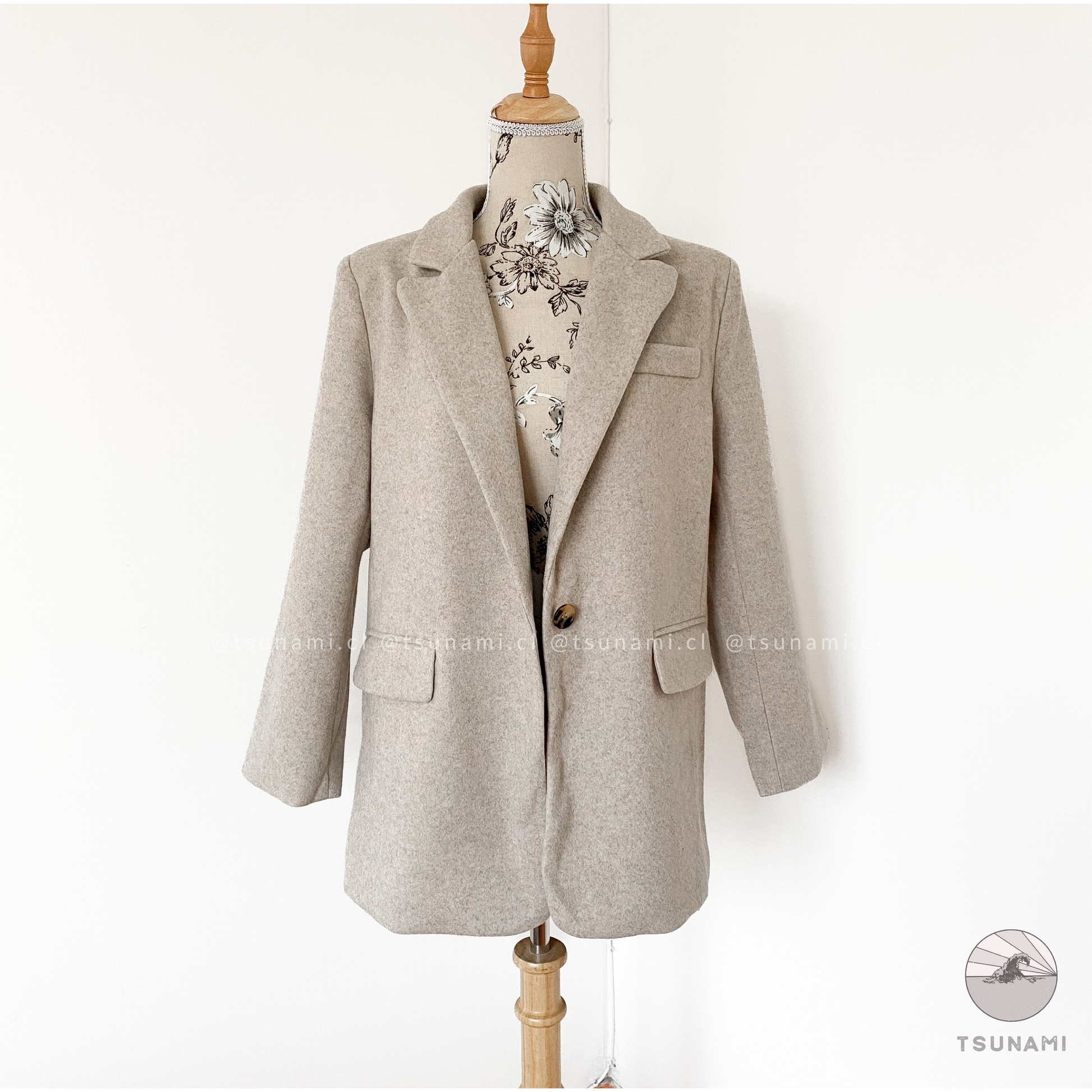 Blazer oversize de paño, holgado, con un botón y dos bolsillos laterales. Al ser oversize la talla S sirve hasta la L y la M sirve hasta XL, todo depende de si te gusta muy holgado o no tanto.