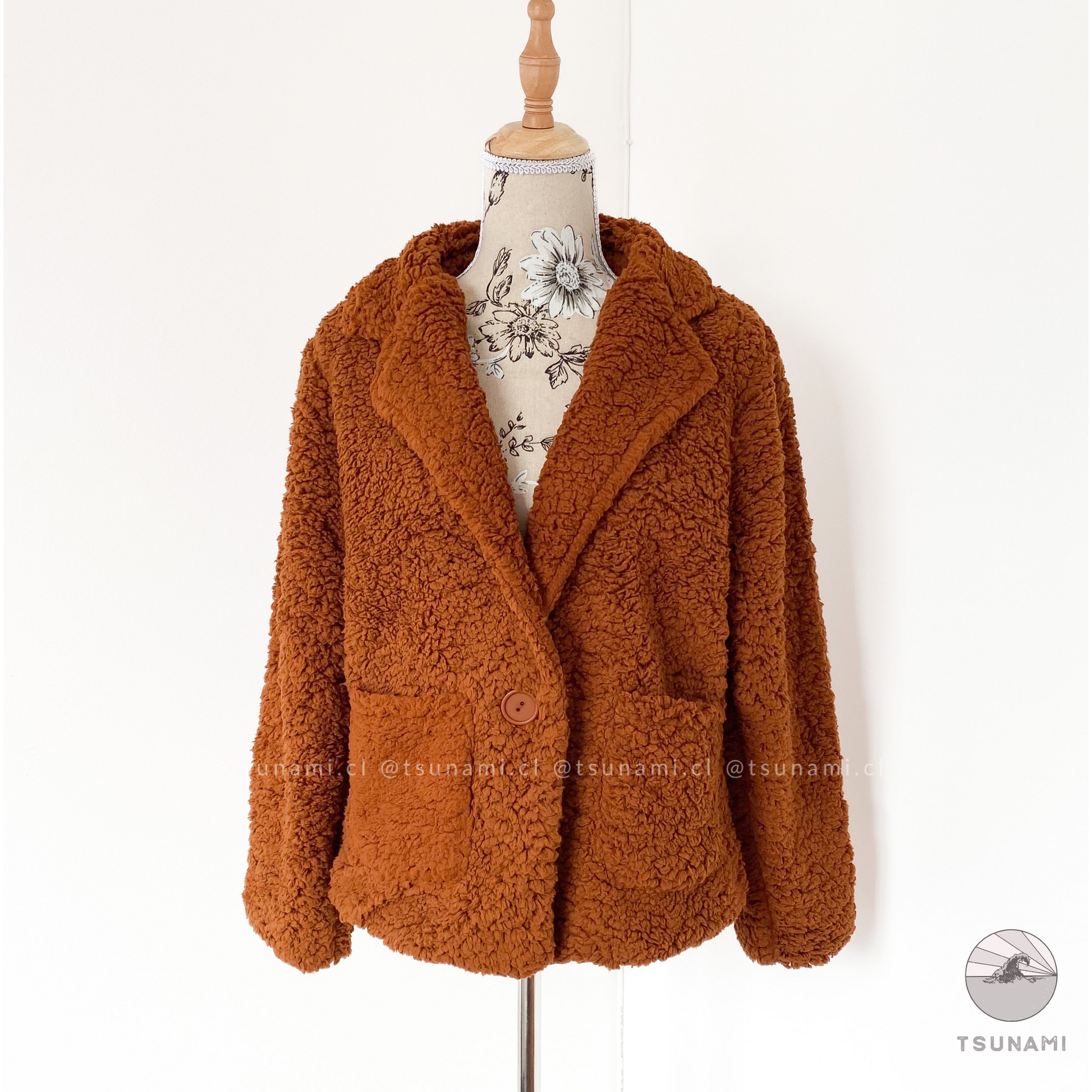 Chaqueta tipo blazer con botón frontal, teddy exterior e interior forrado y bolsillos funcionales. Súper cómodo, holgado y calientito.