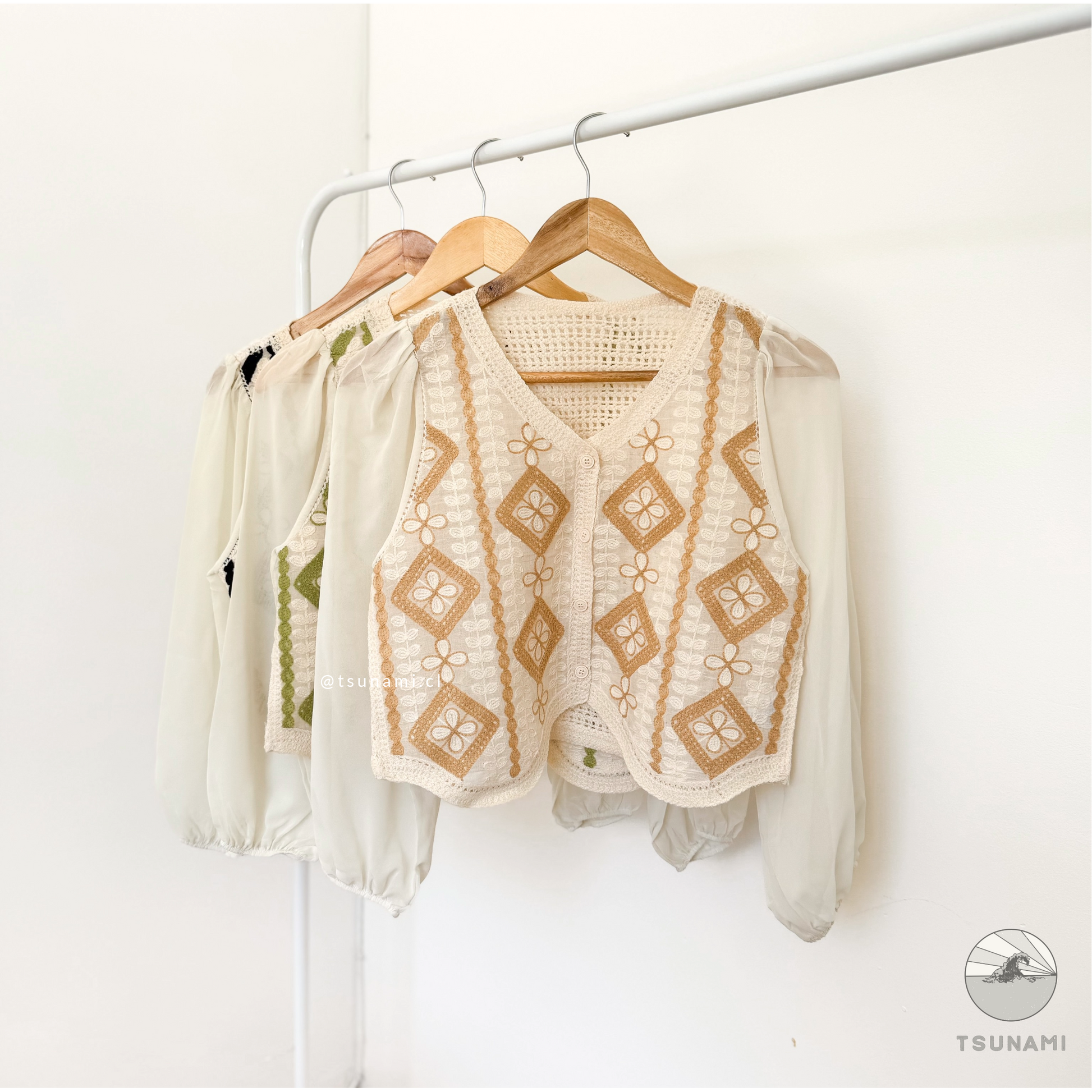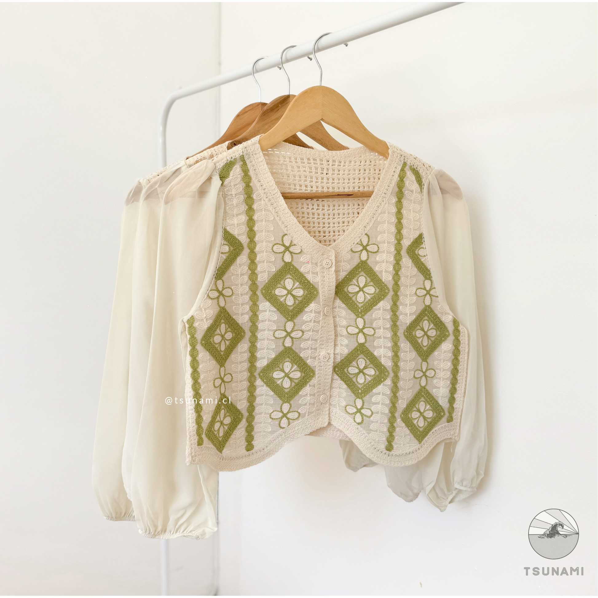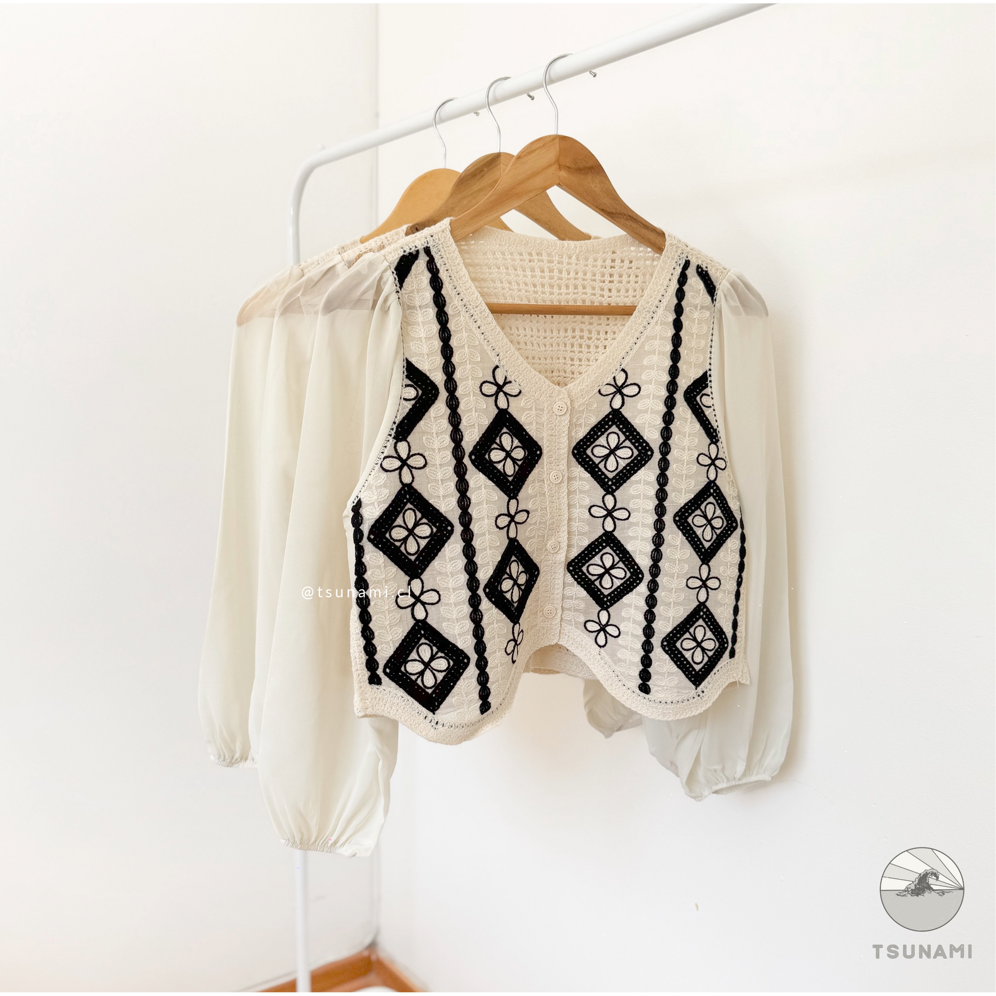 Blusa de hilo de algodón con diseño de rombos en el frente. El tejido y las mangas de gasa convierten a esta blusa es tu aliada para días calurosos en donde quieres sentirte fresca y cómoda.