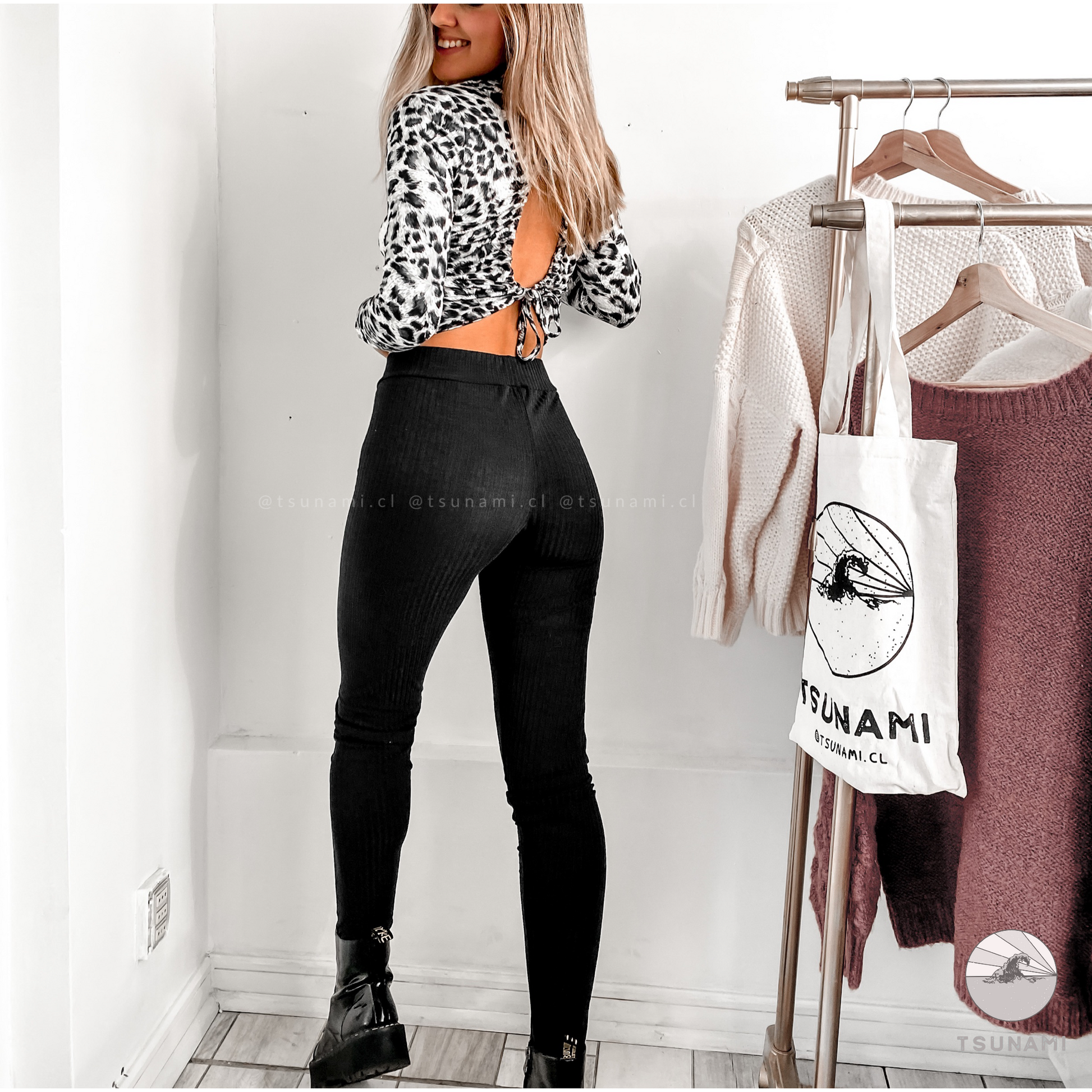 Calza básica con cintura elasticada y lazo decorativo en el frente.