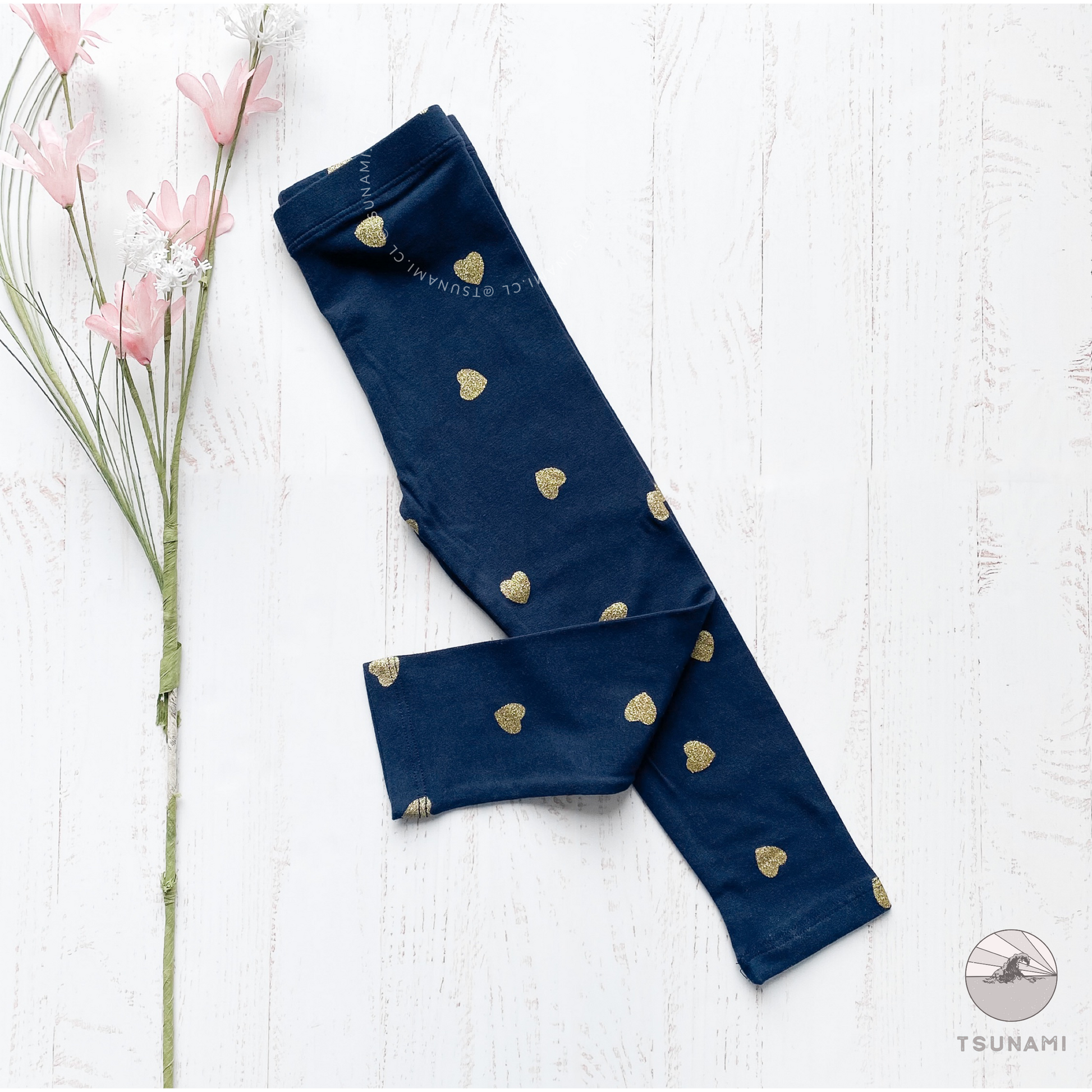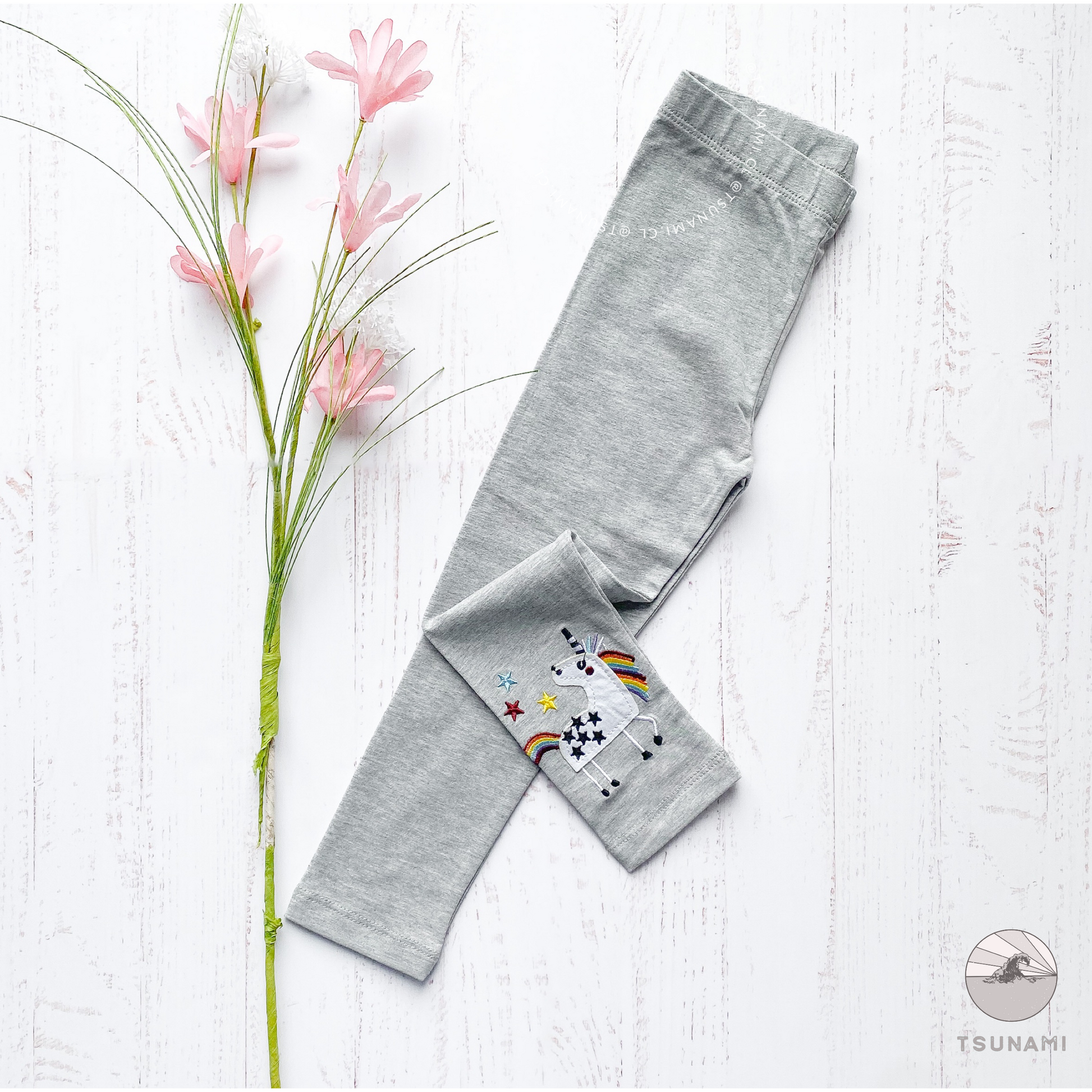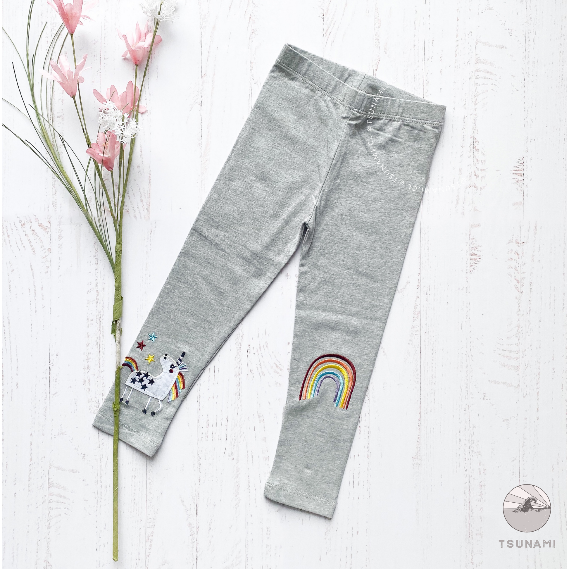 Calzas de algodón con diseño de corazones estampados y diseño de unicornio bordado, son de algodón, de grosor medio, con pretina elasticada.