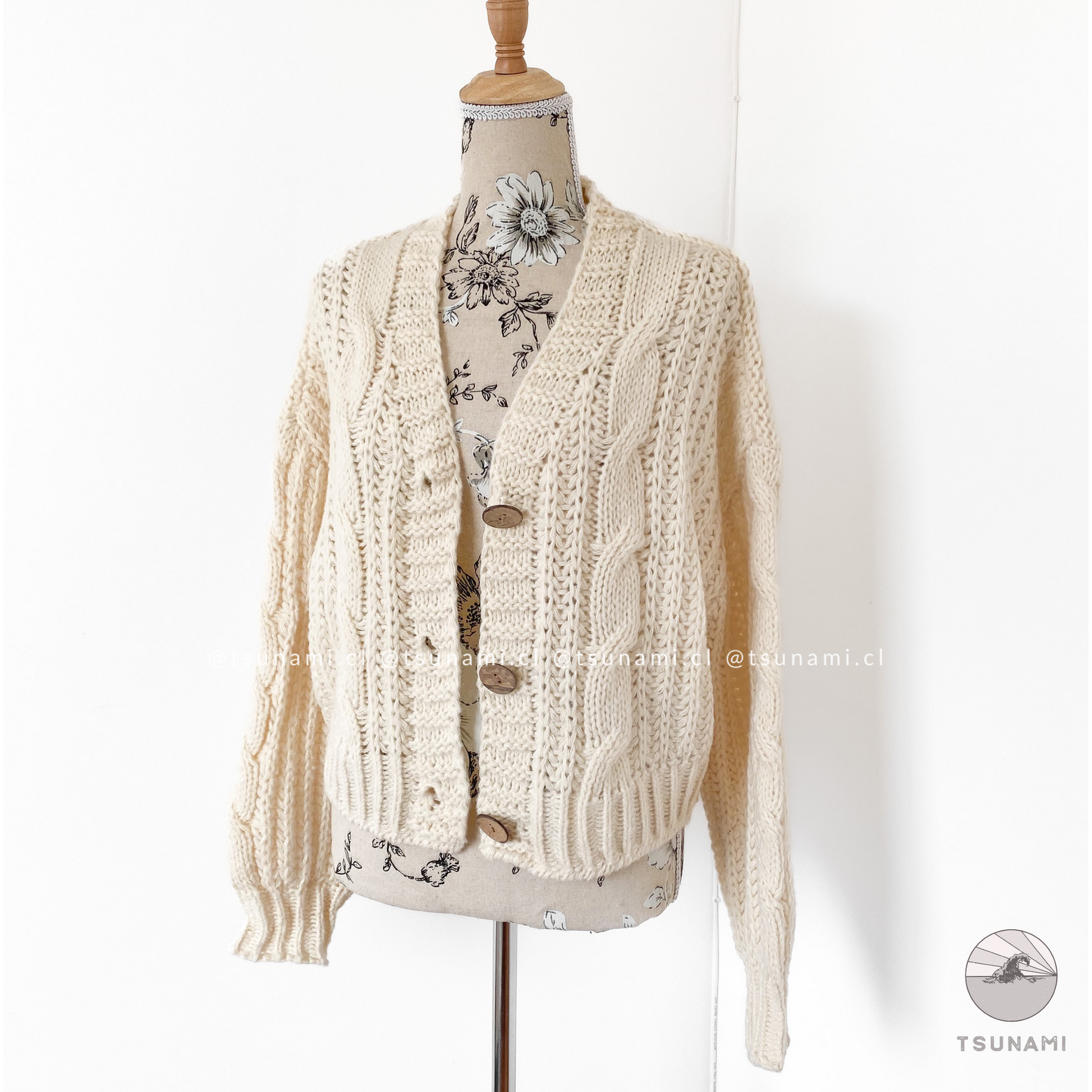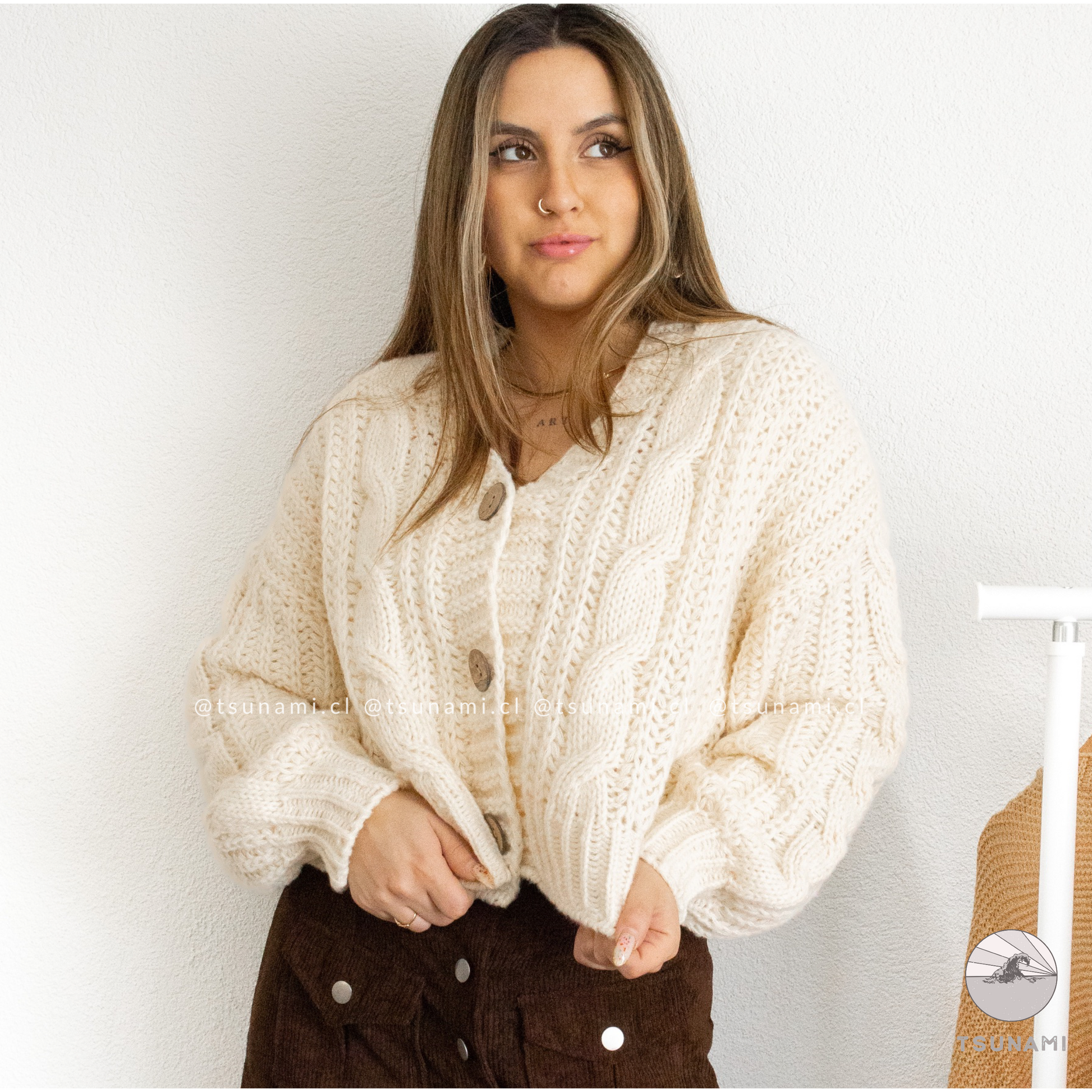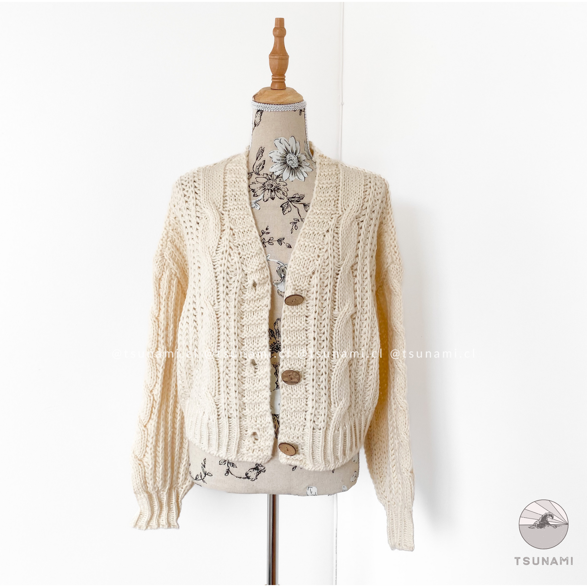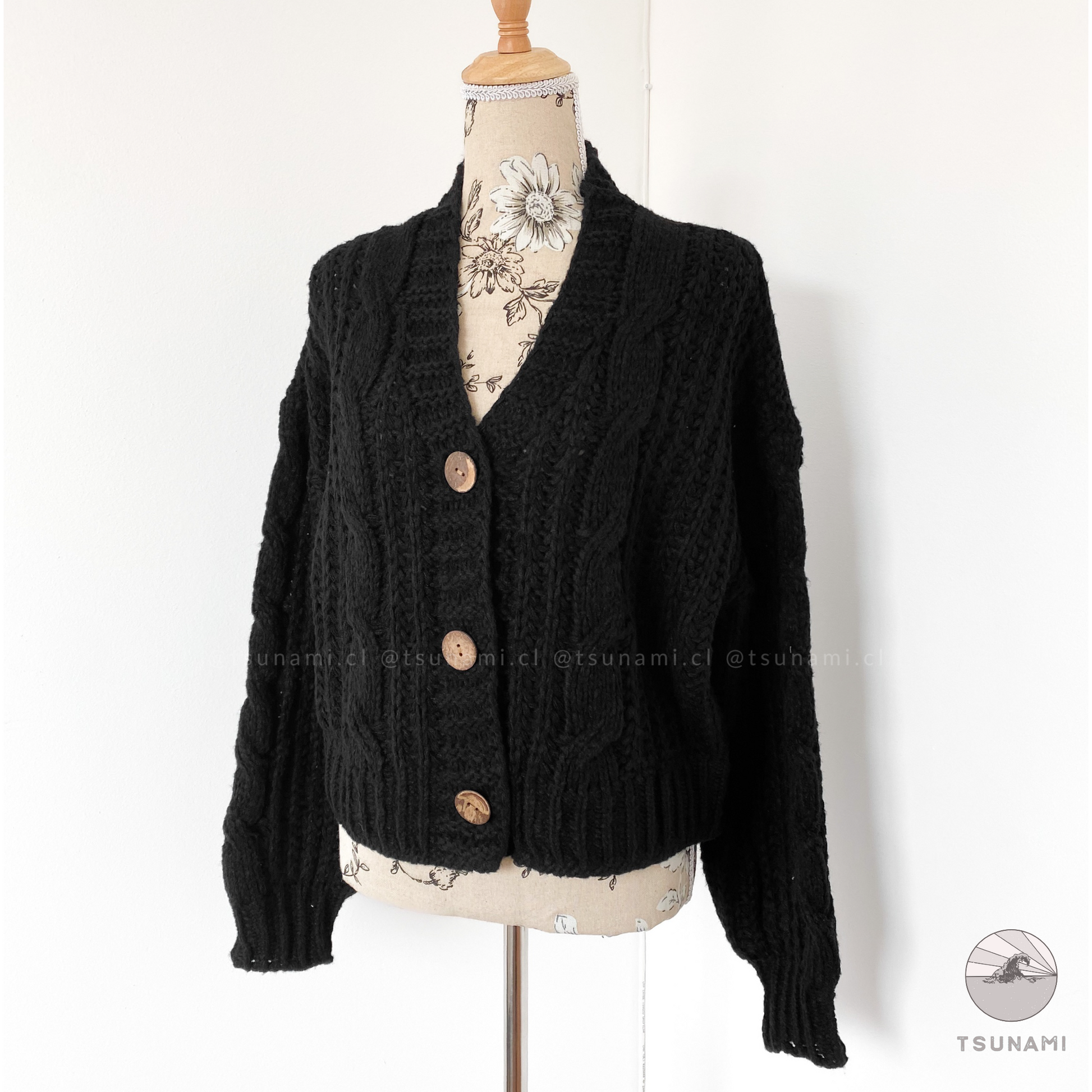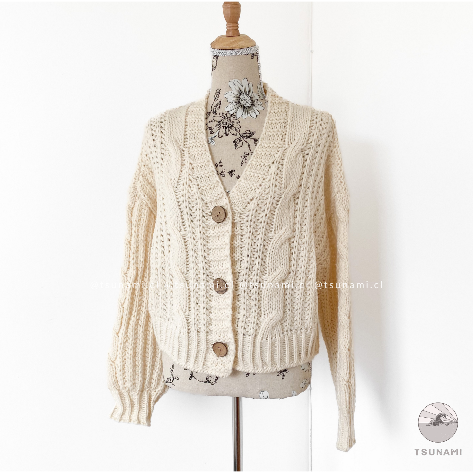 Cardigan de lana acrílica, muy esponjoso y suave, con tres botones de madera. Viene en los dos colores mas usados para que puedas añadirlo a todos tus outfits.