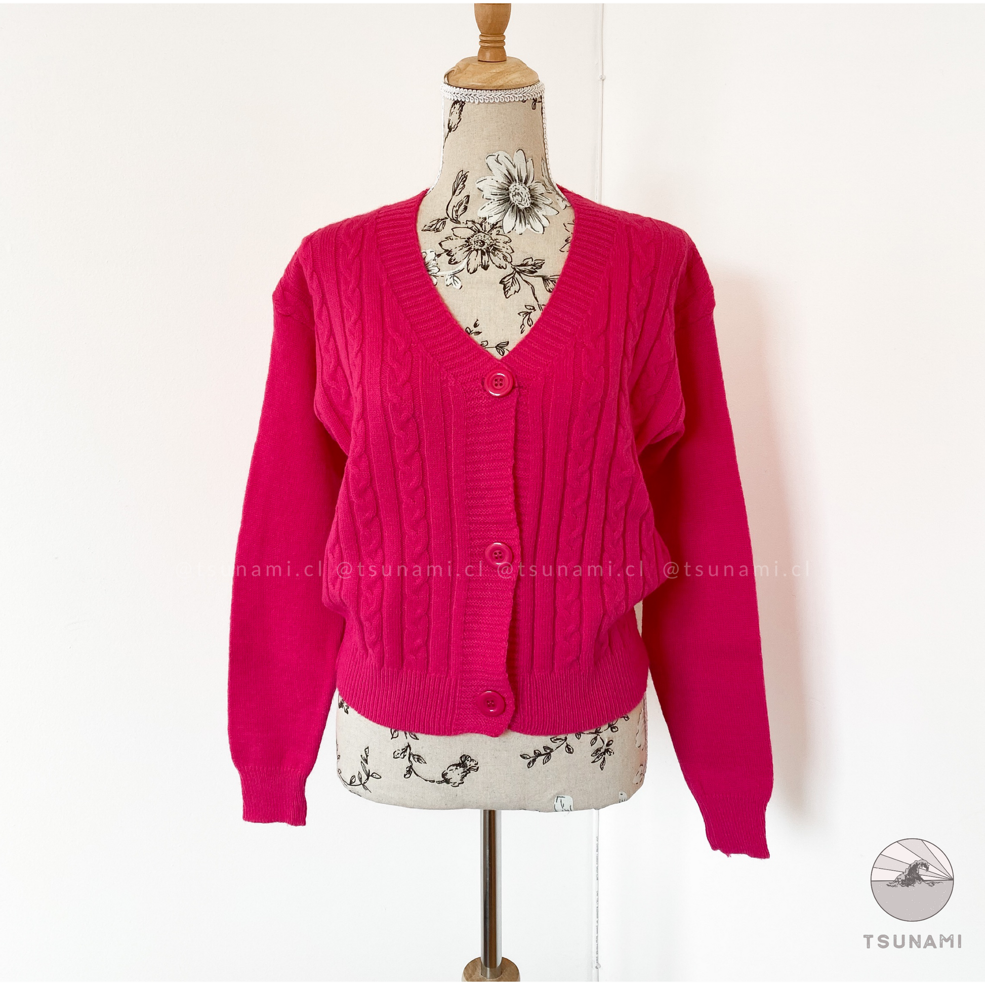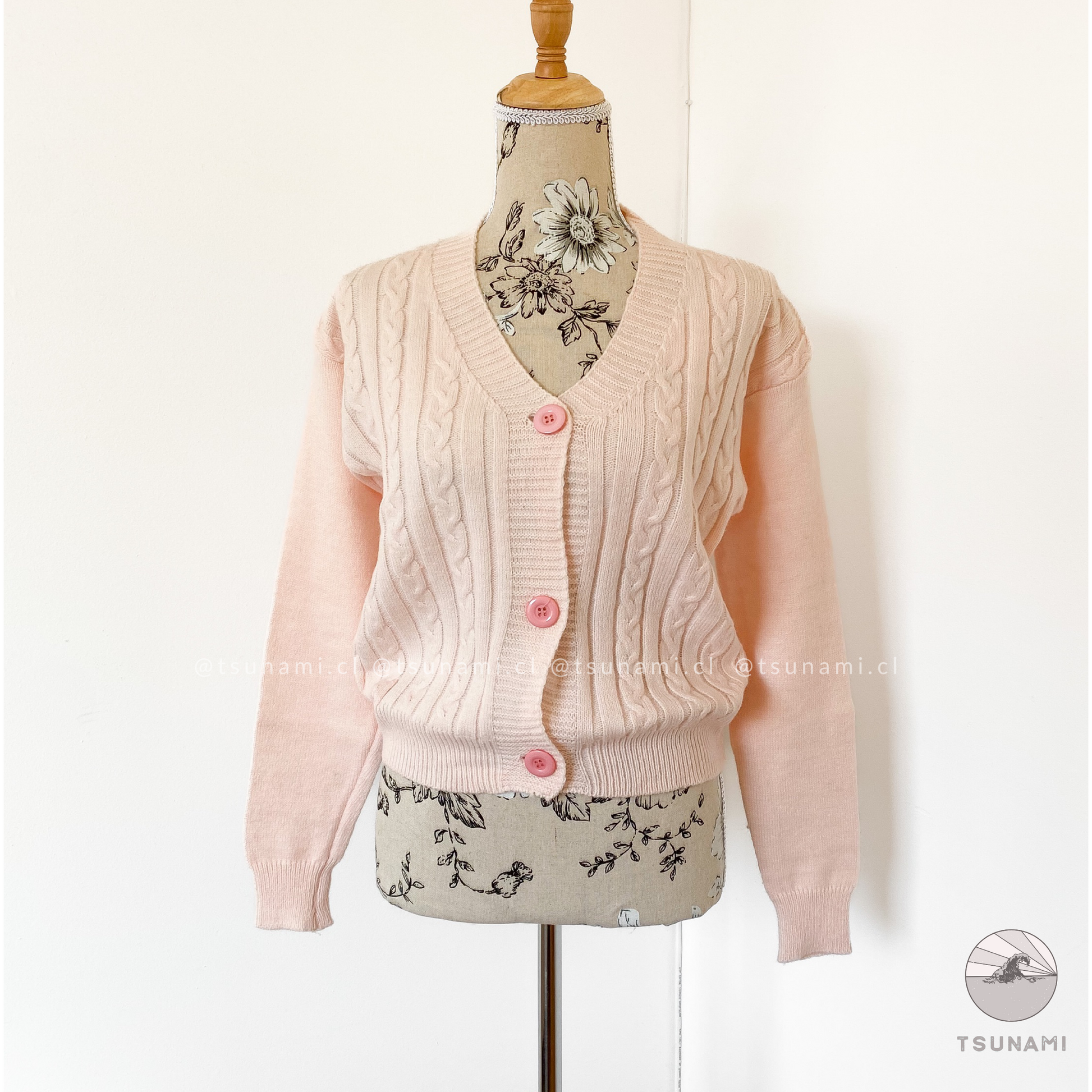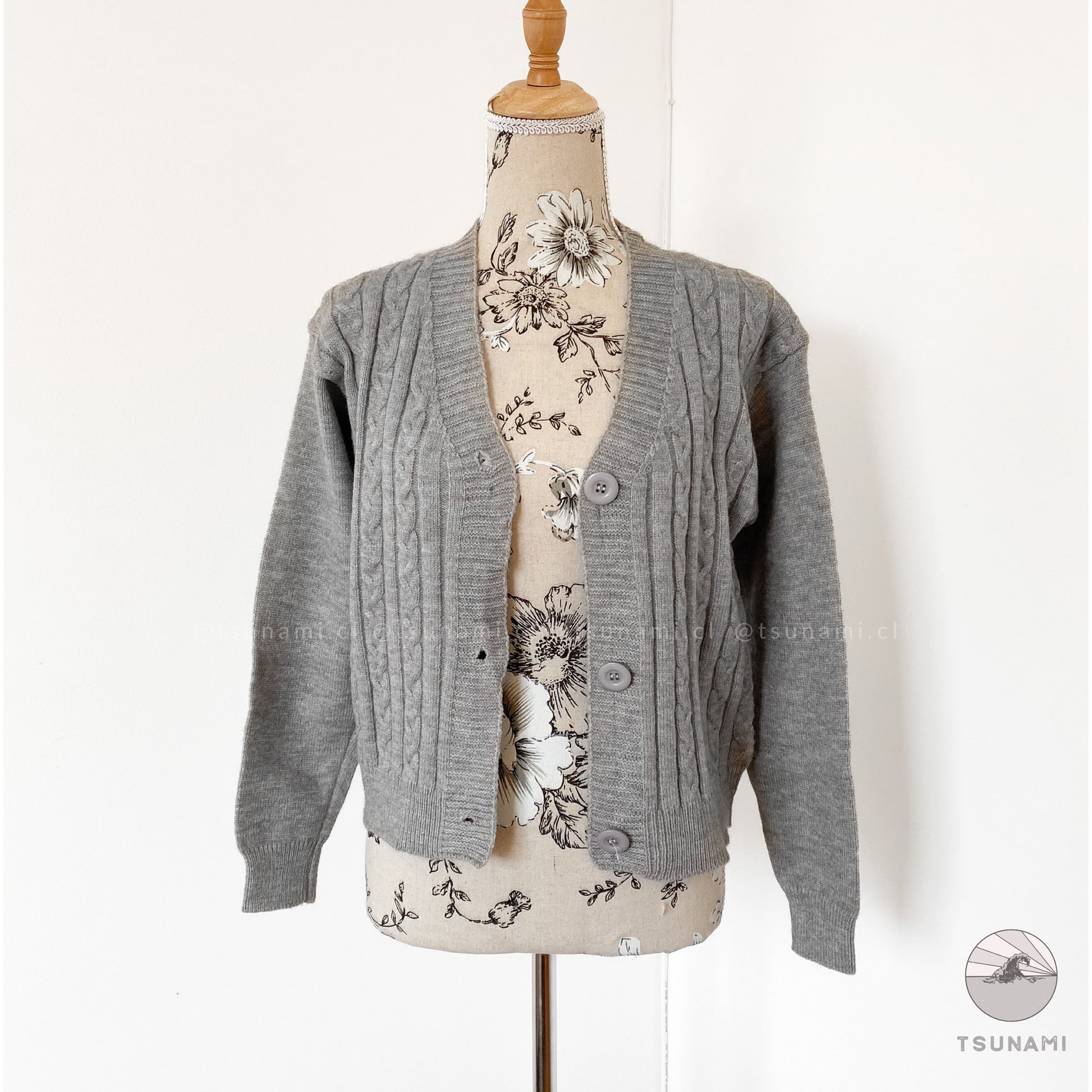Cardigan de grosor medio, tejido elástico muy suavecito, con tres botones y diseño en la parte delantera.