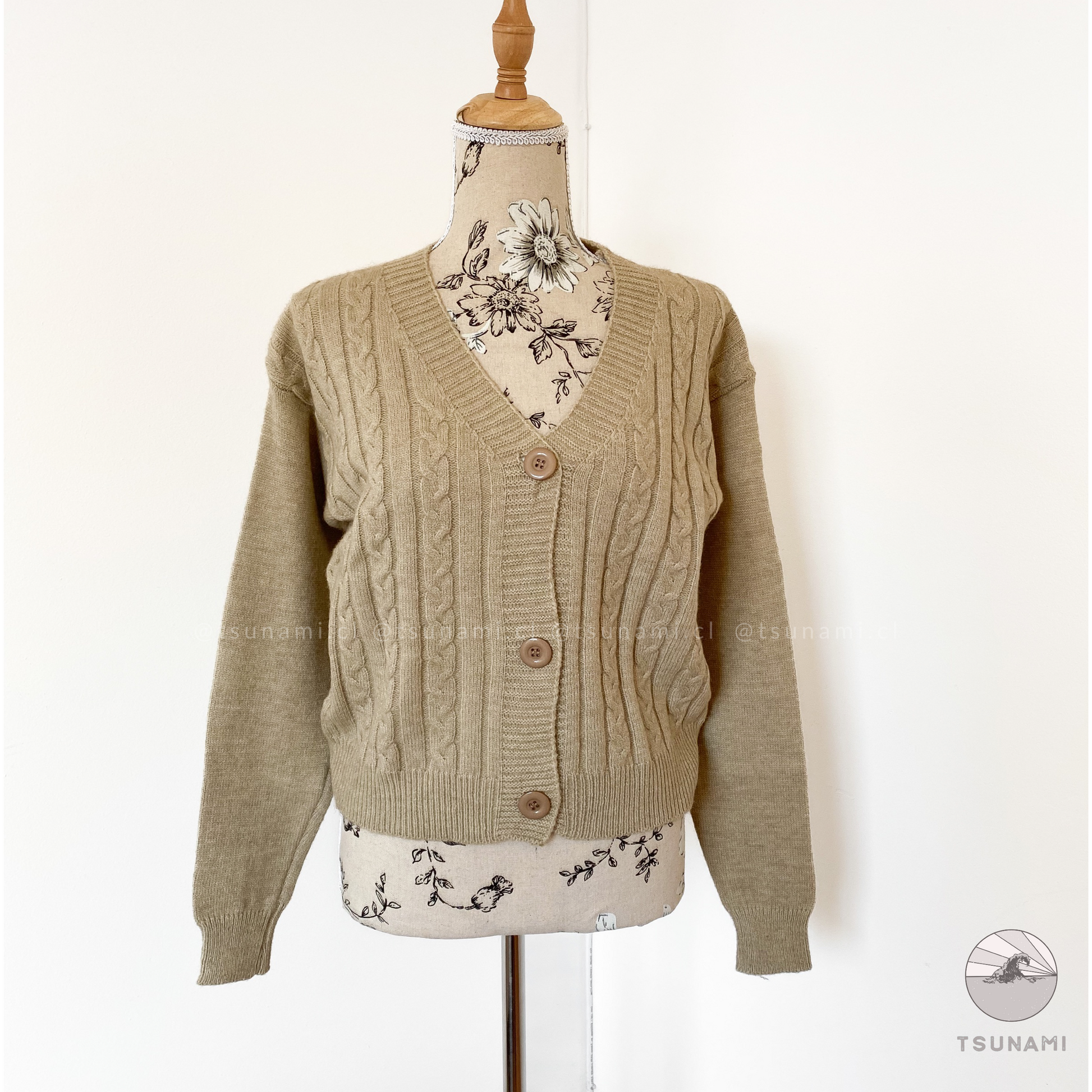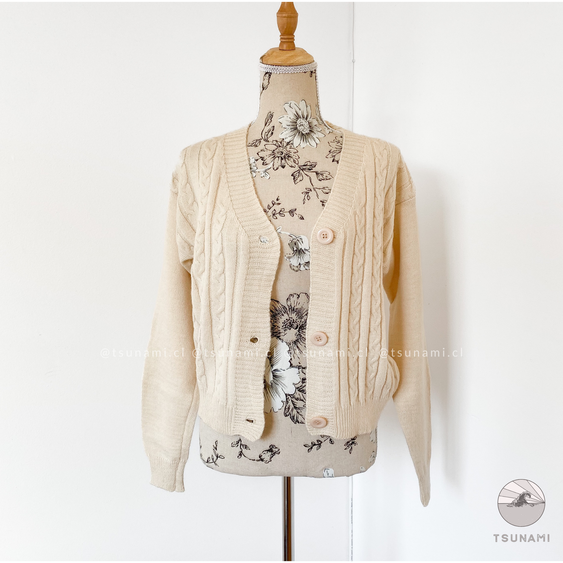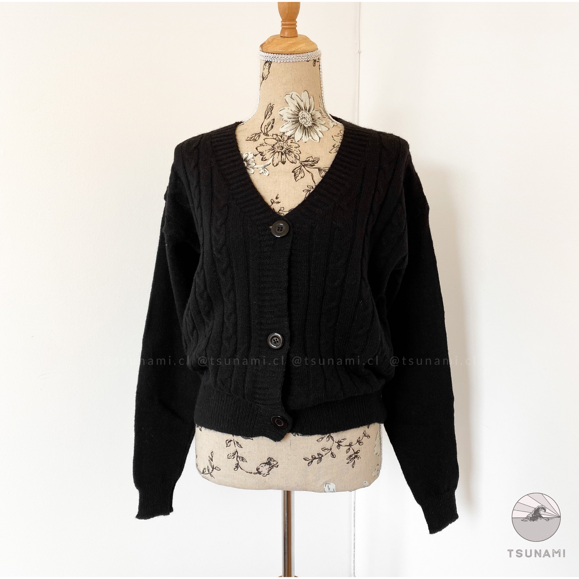 Cardigan de grosor medio, tejido elástico muy suavecito, con tres botones y diseño en la parte delantera.