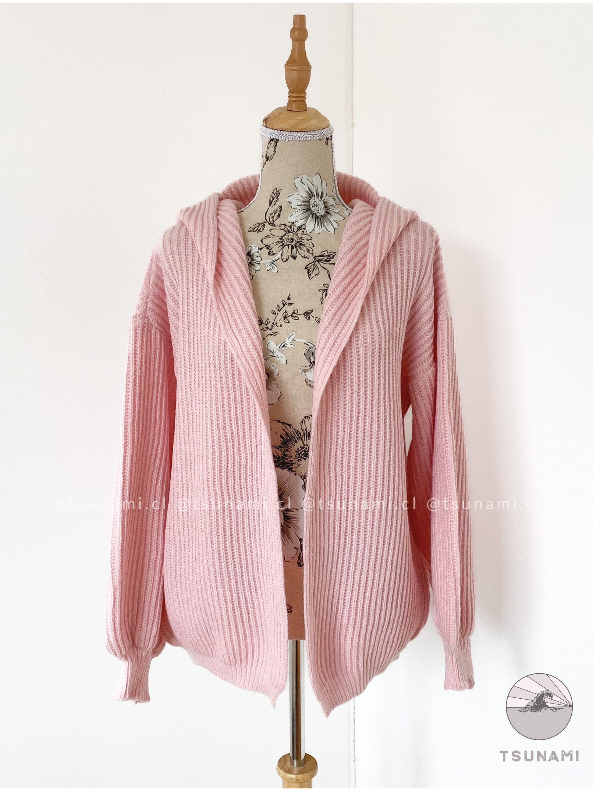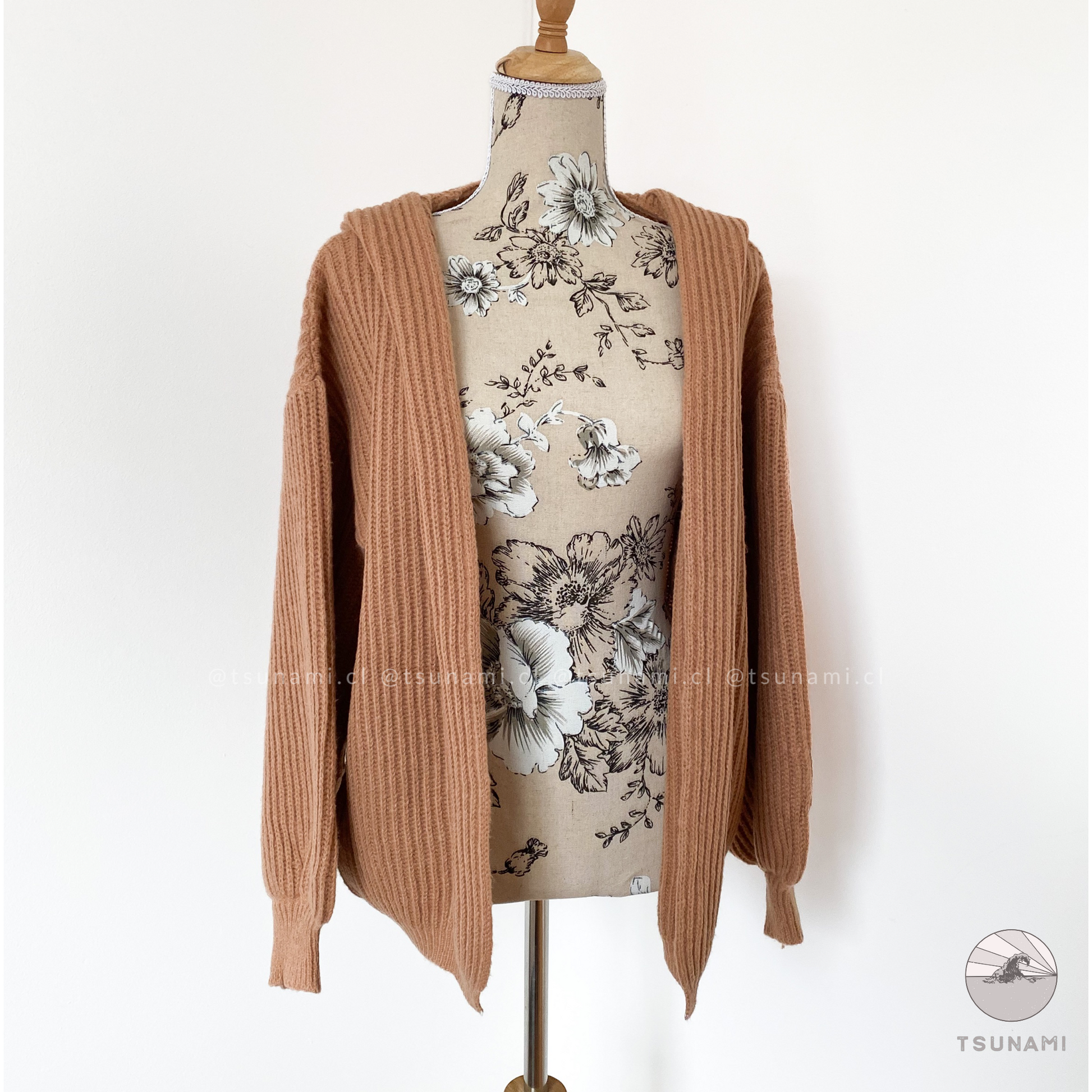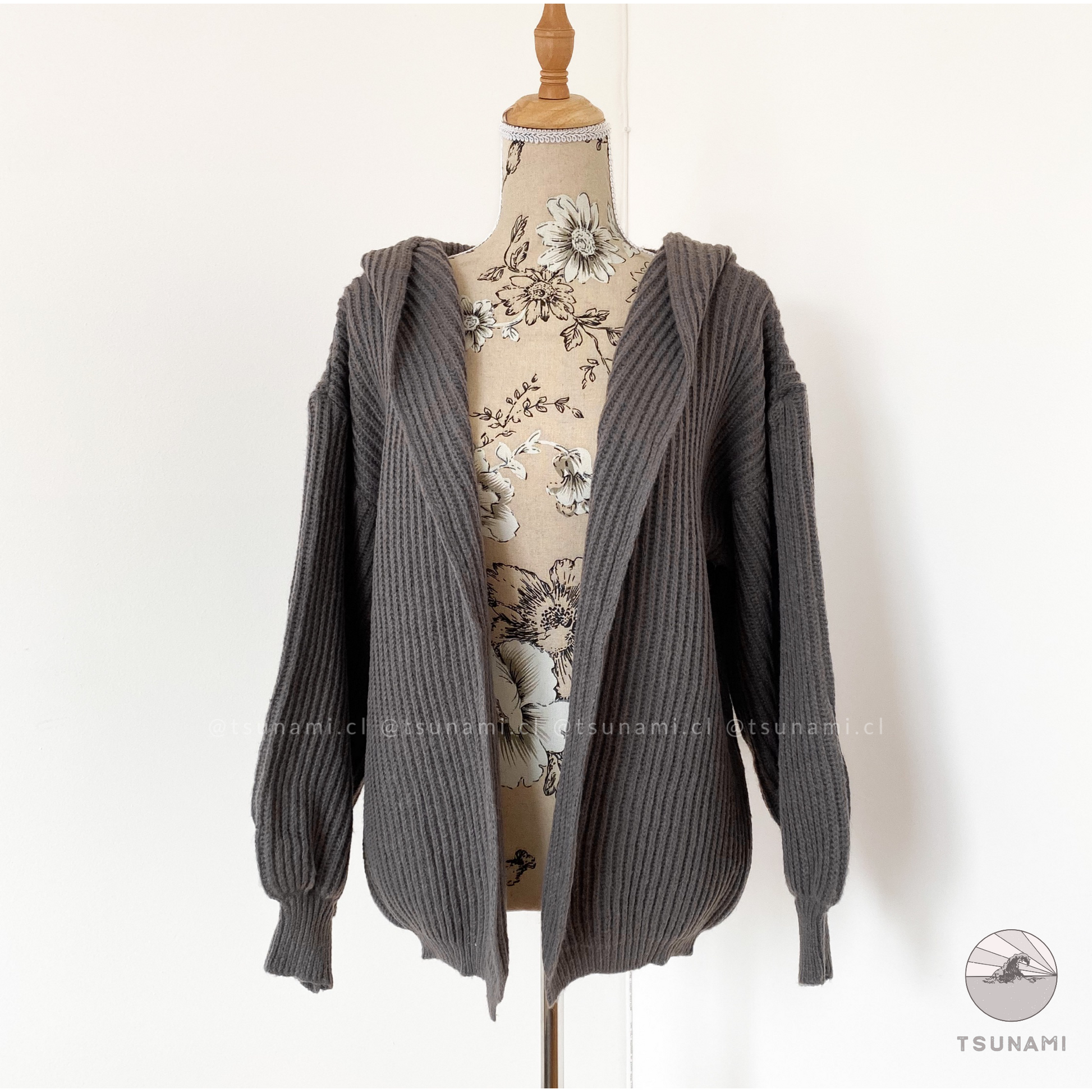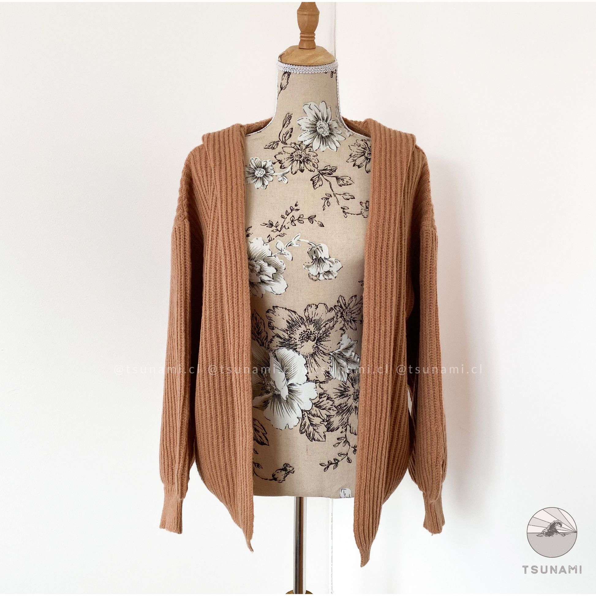 Cardigan de largo medio, abierto, con gorro. Es de lana, grueso, suavecito y muy calientito.