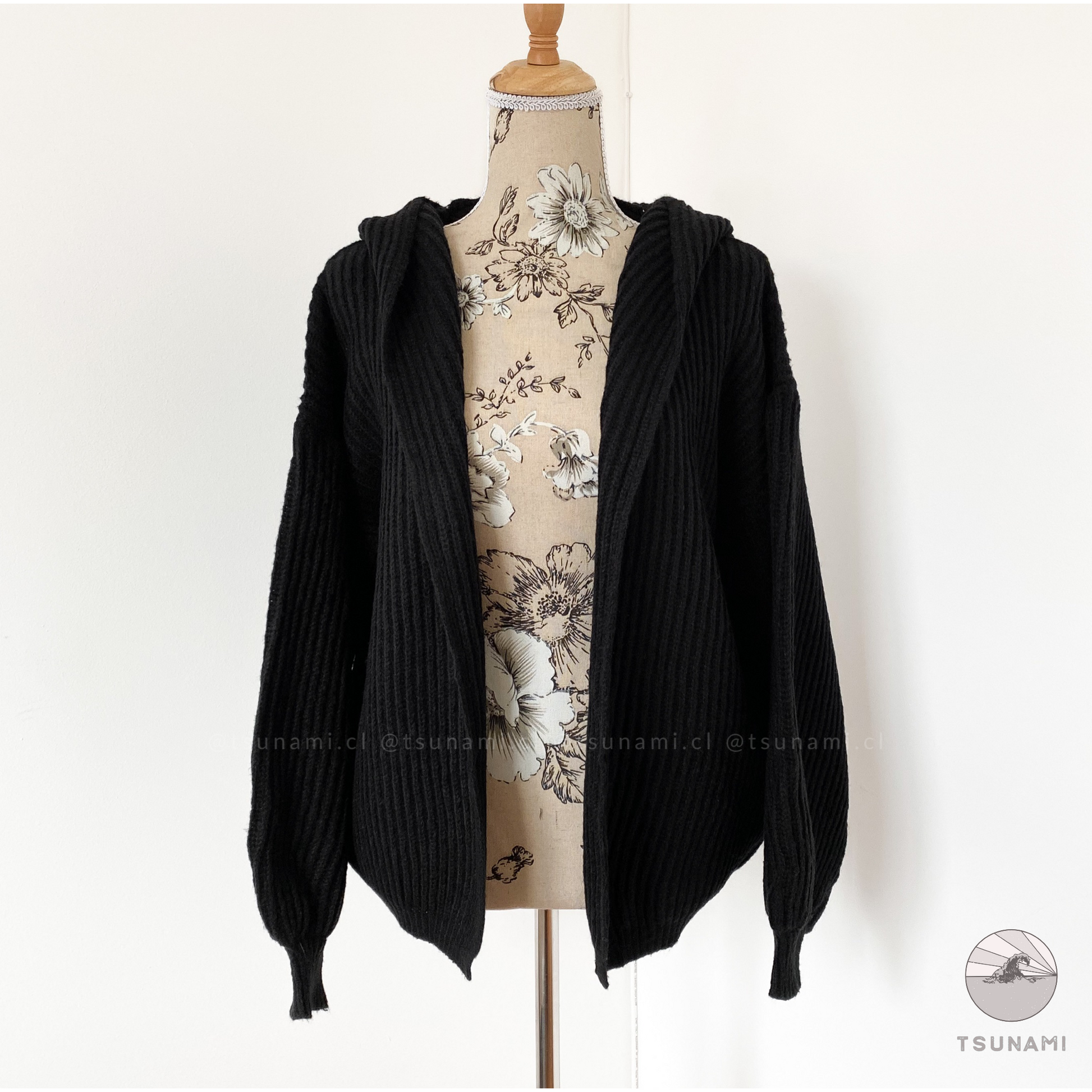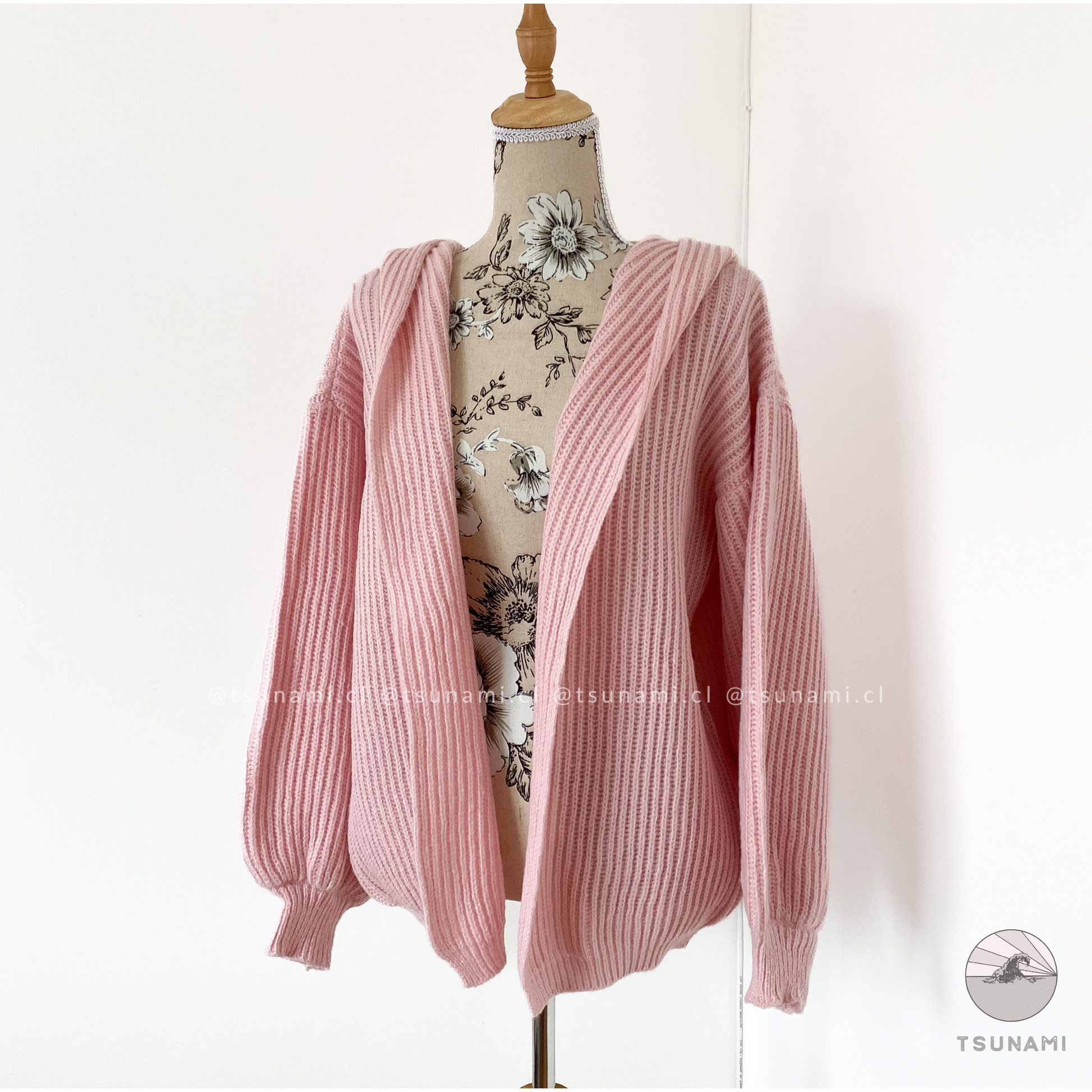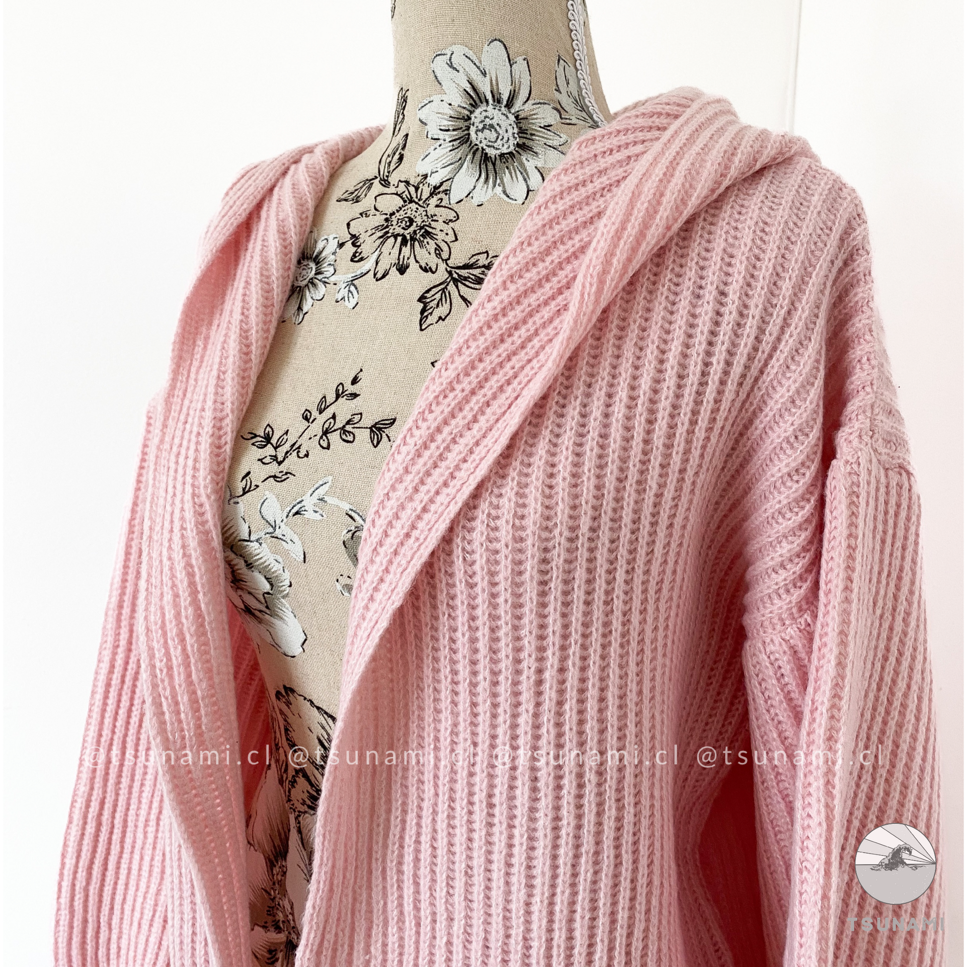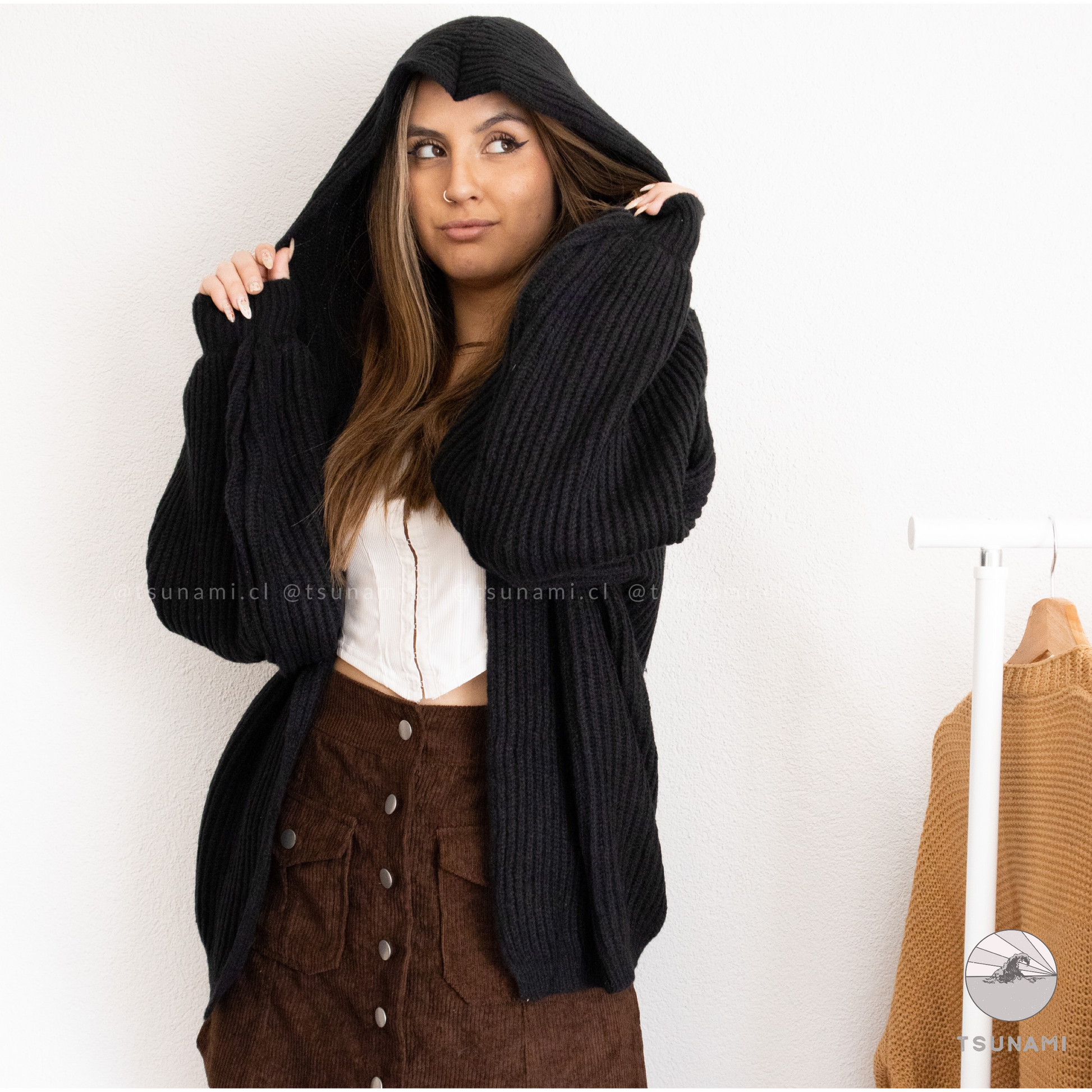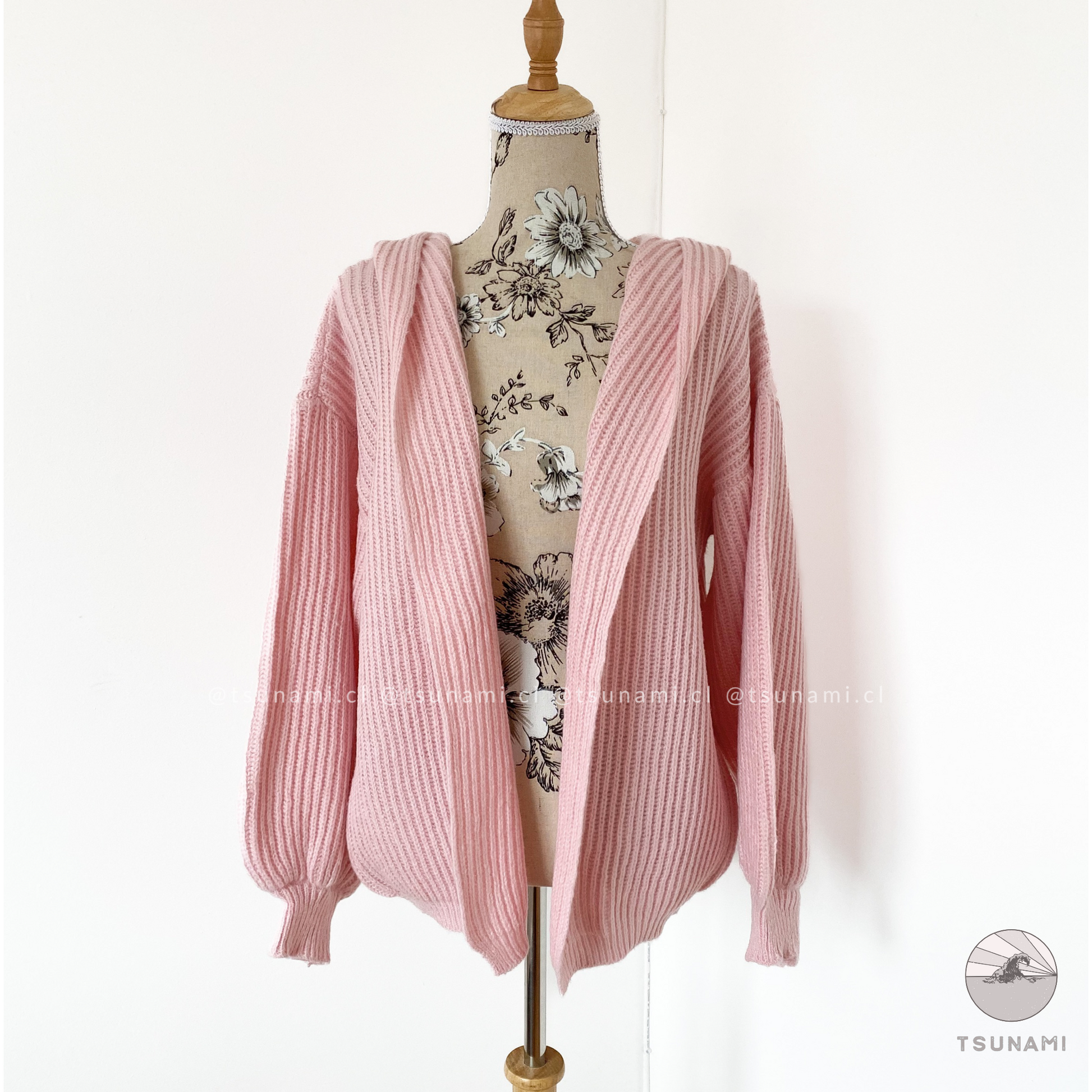 Cardigan de largo medio, abierto, con gorro. Es de lana, grueso, suavecito y muy calientito.