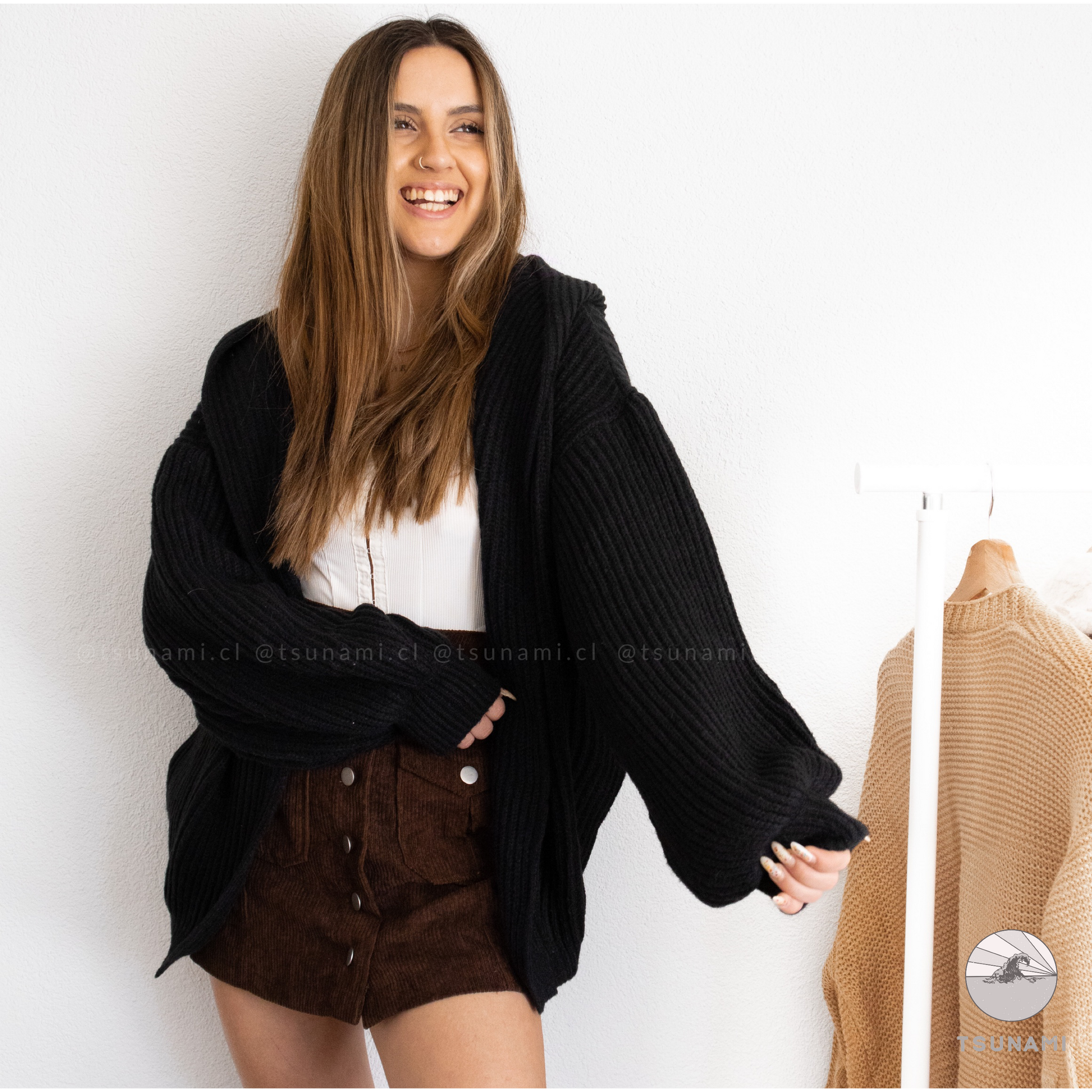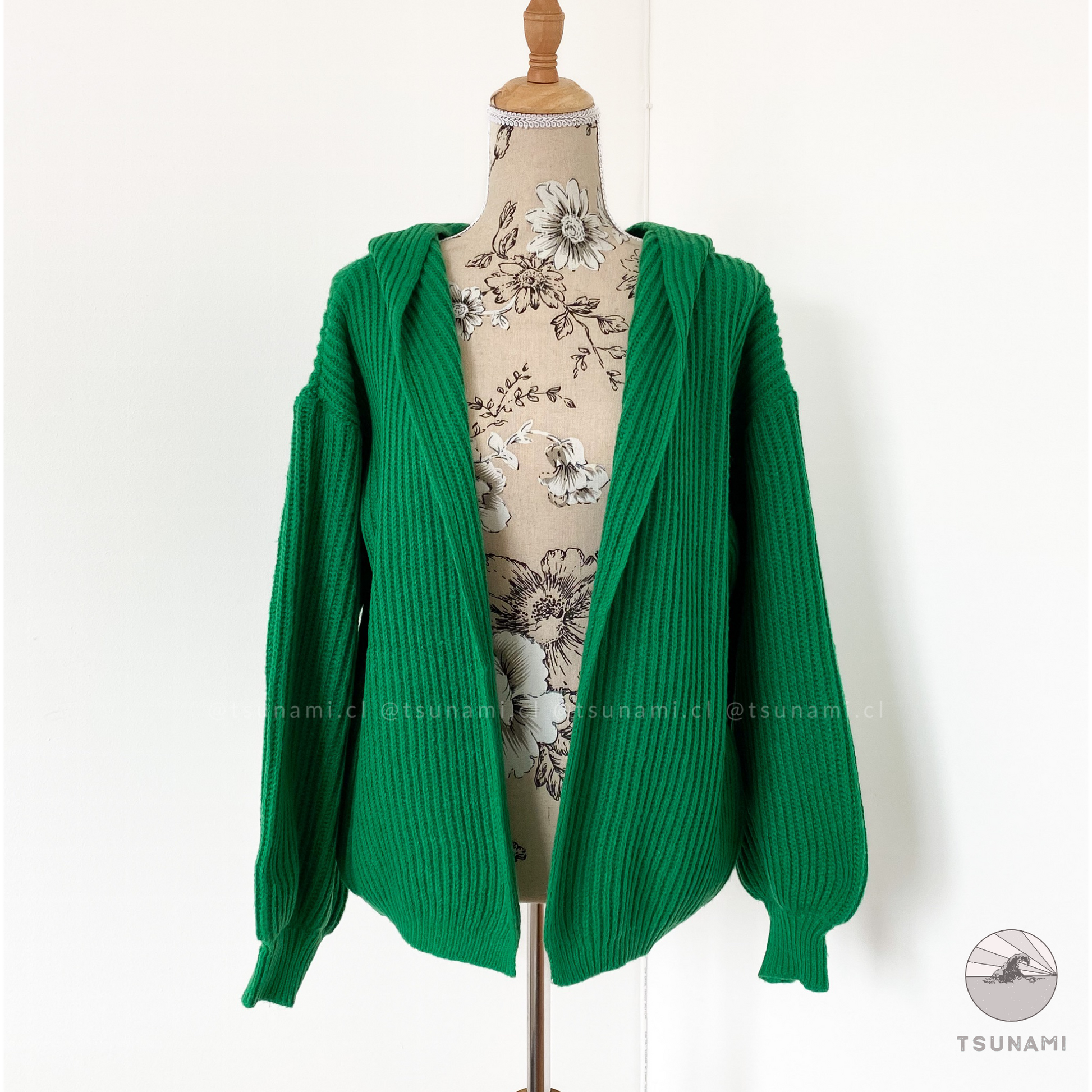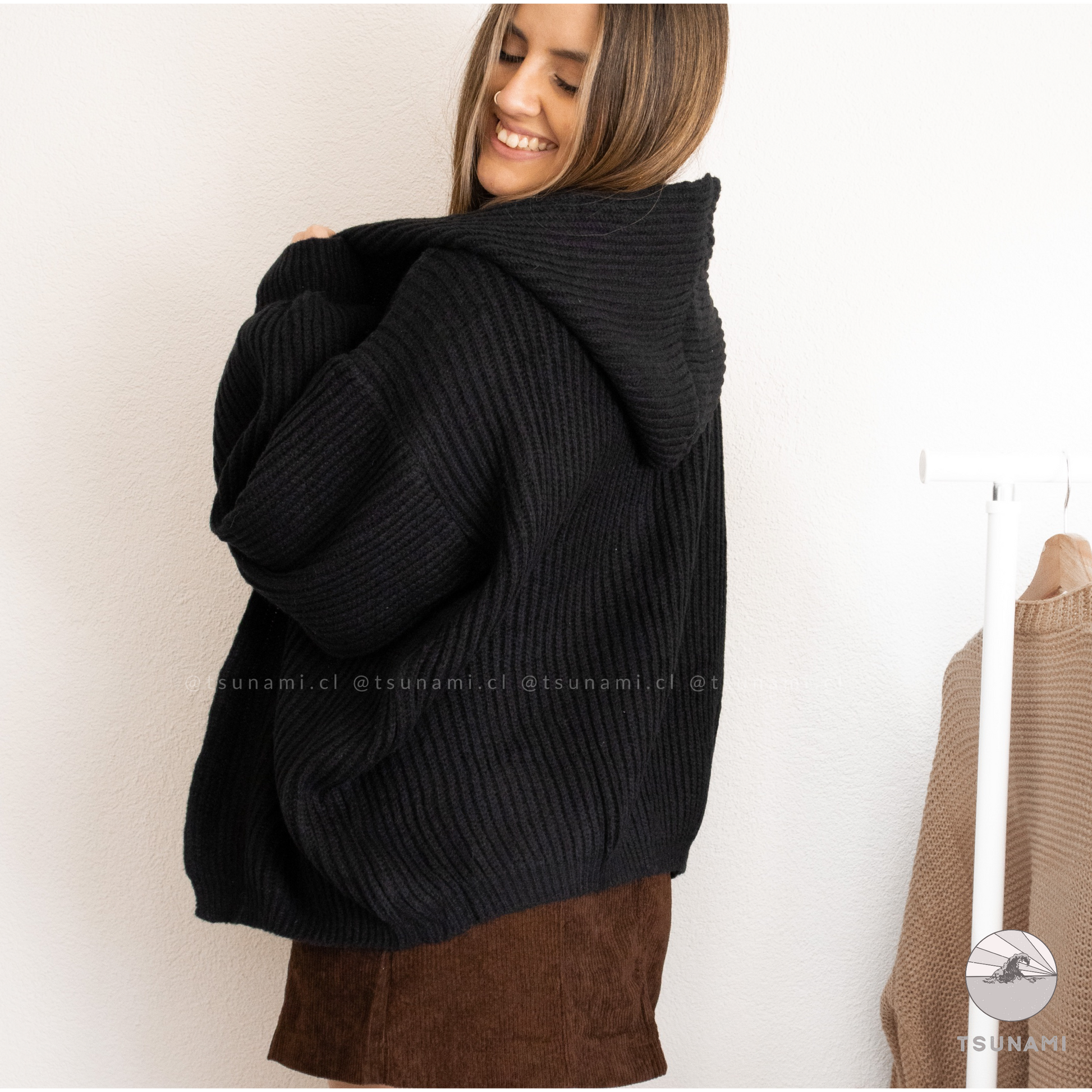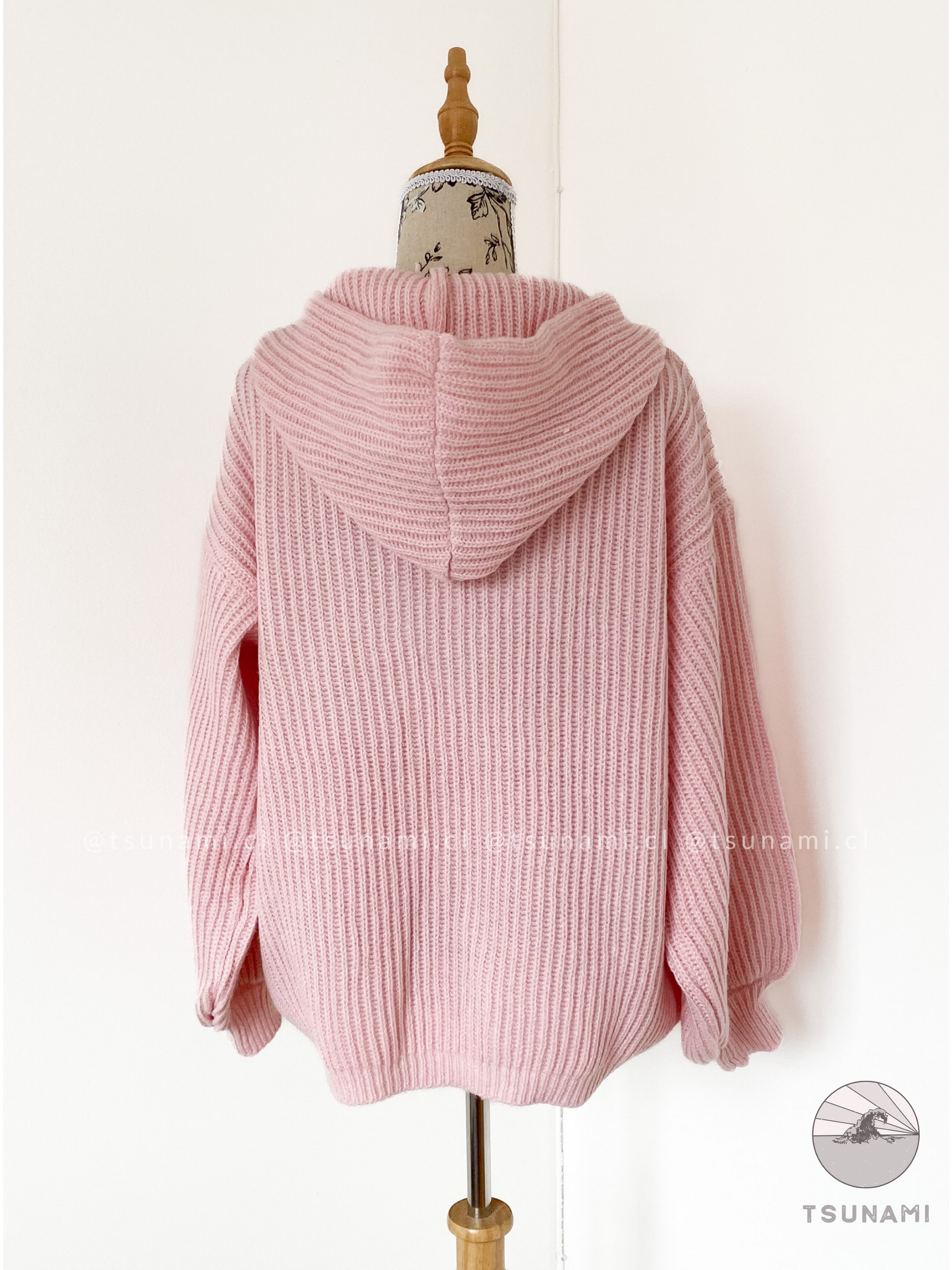 Cardigan de largo medio, abierto, con gorro. Es de lana, grueso, suavecito y muy calientito.