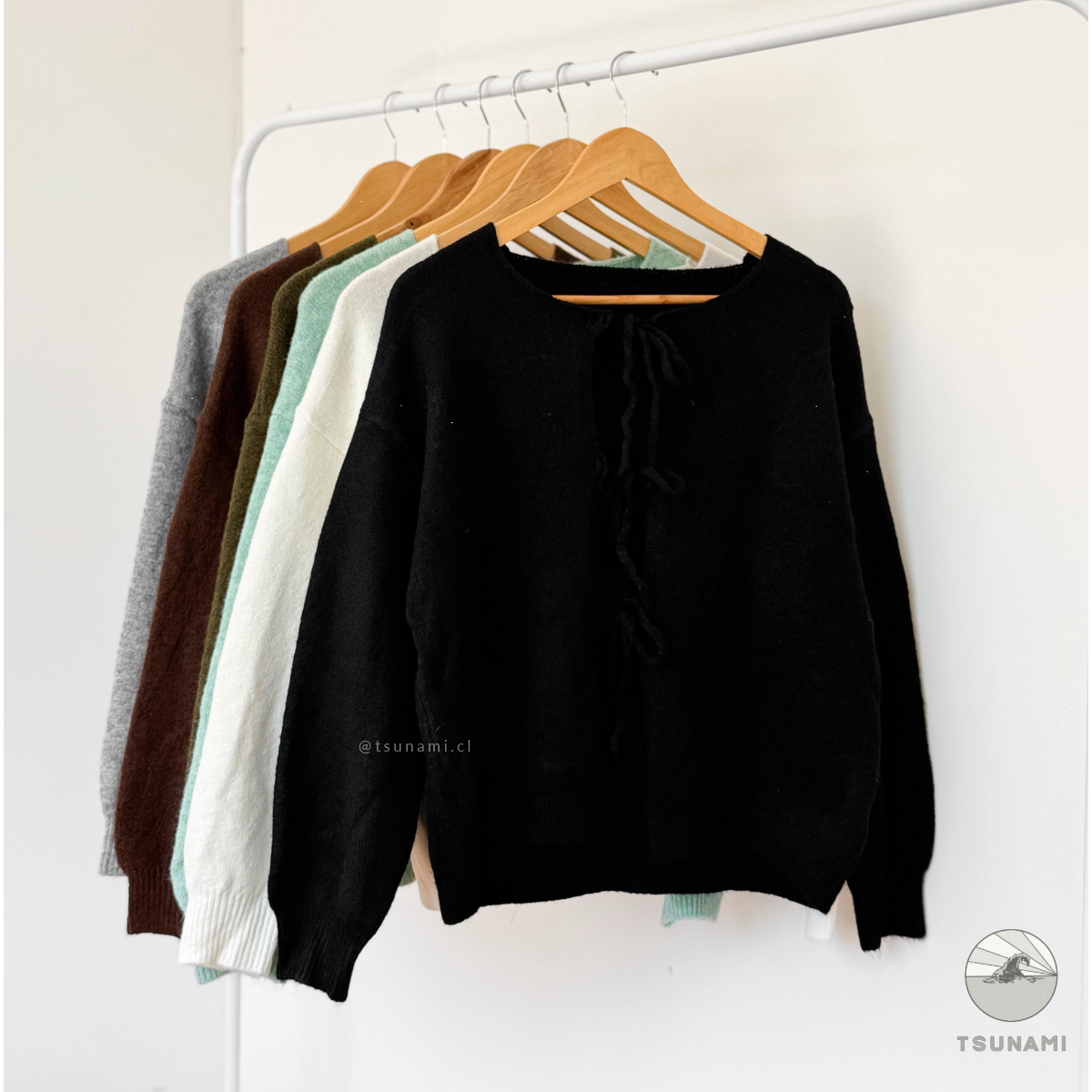 Los lacitos del frente lo convierten en un diseño muy dulce y femenino. Tiene el largo justo para abrigarte sin recargar tu look, ideal para los días otoñales donde el frío se empieza a sentir!! Su tejido suave, holgado, elasticado y levemente esponjoso lo hace cómodo y calentito, perfecto para usar sobre poleras o blusas. ¡Un toque romántico y versátil para tu clóset! ♥
