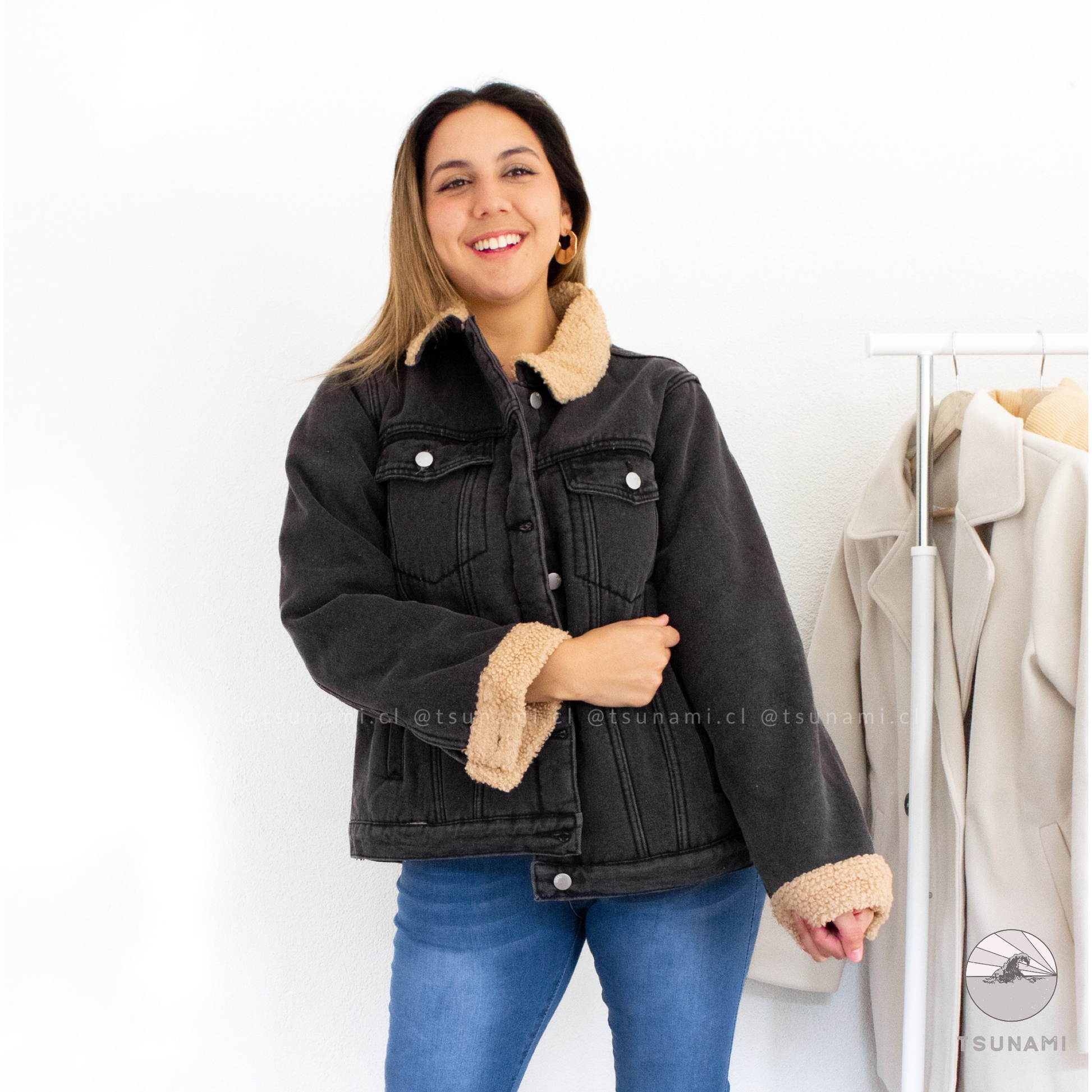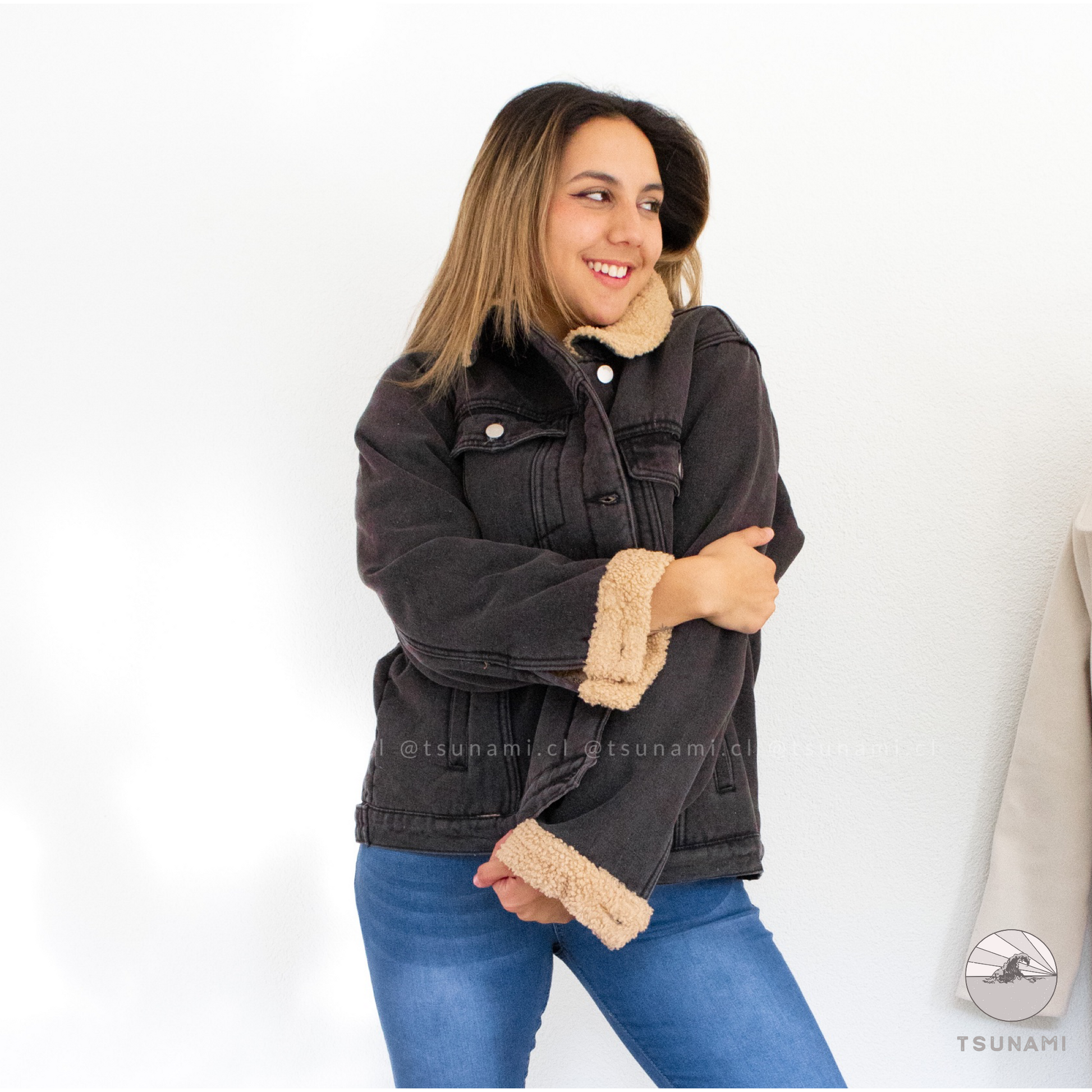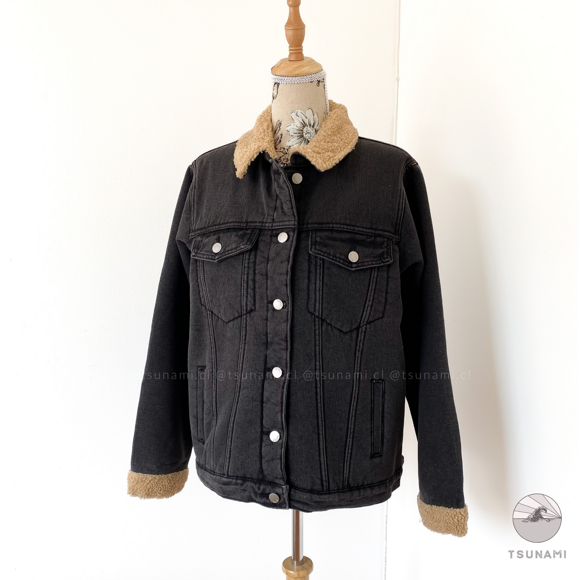 Chaqueta de mezclilla con forro interior de chiporro en toda la chaqueta, incluyendo mangas, posee bolsillos y botones funcionales. Es gruesa y muy calientita.