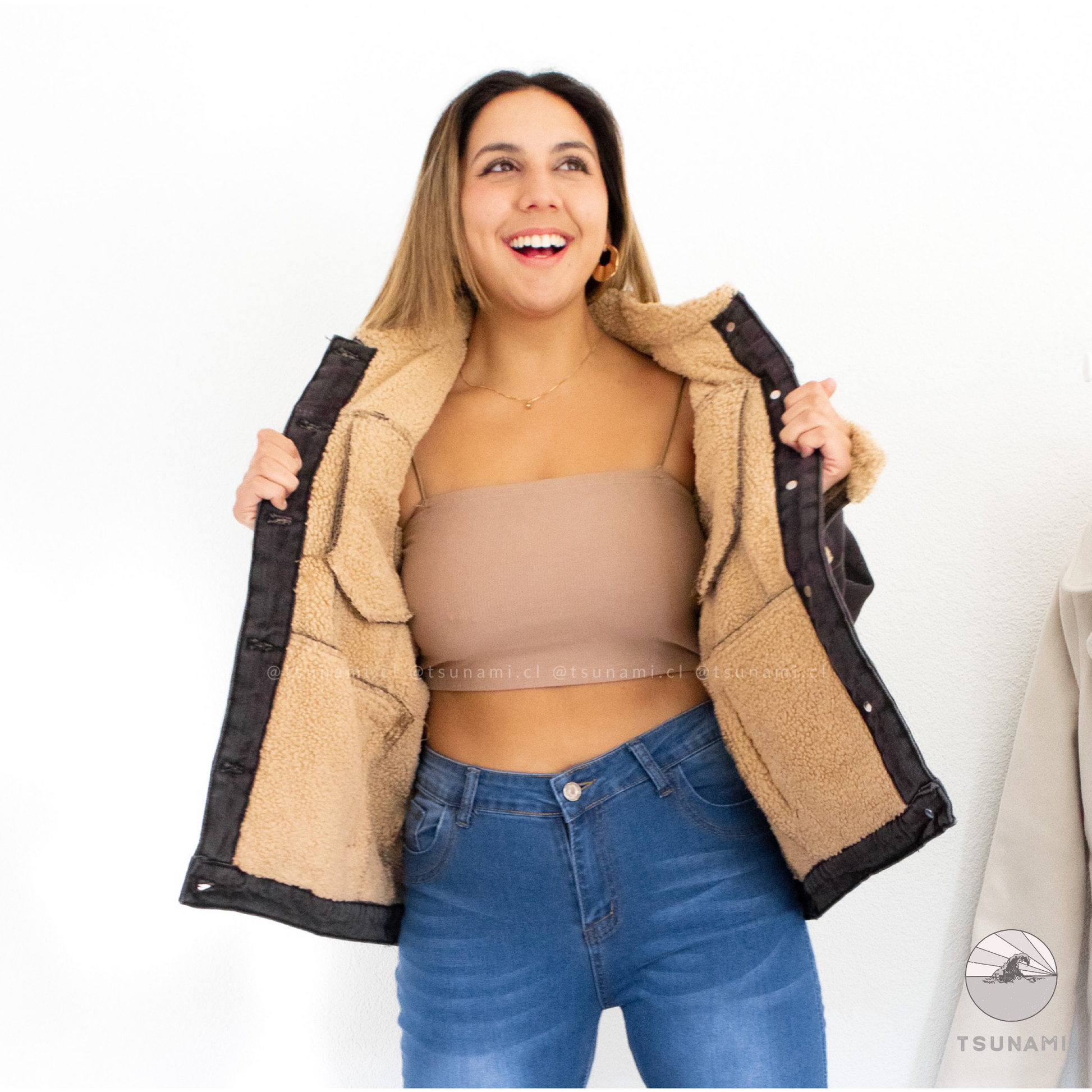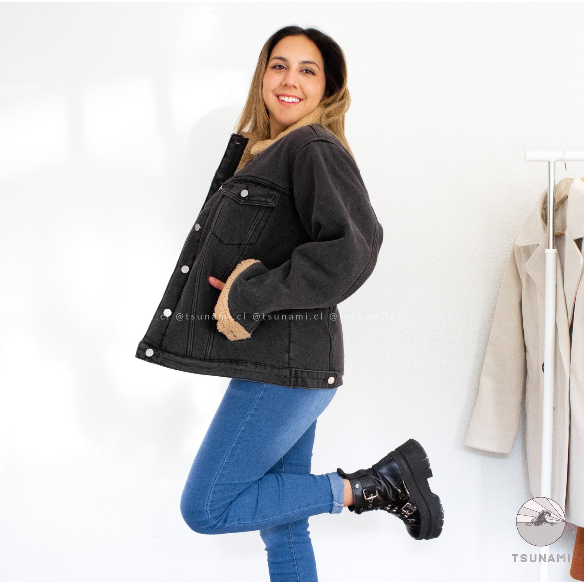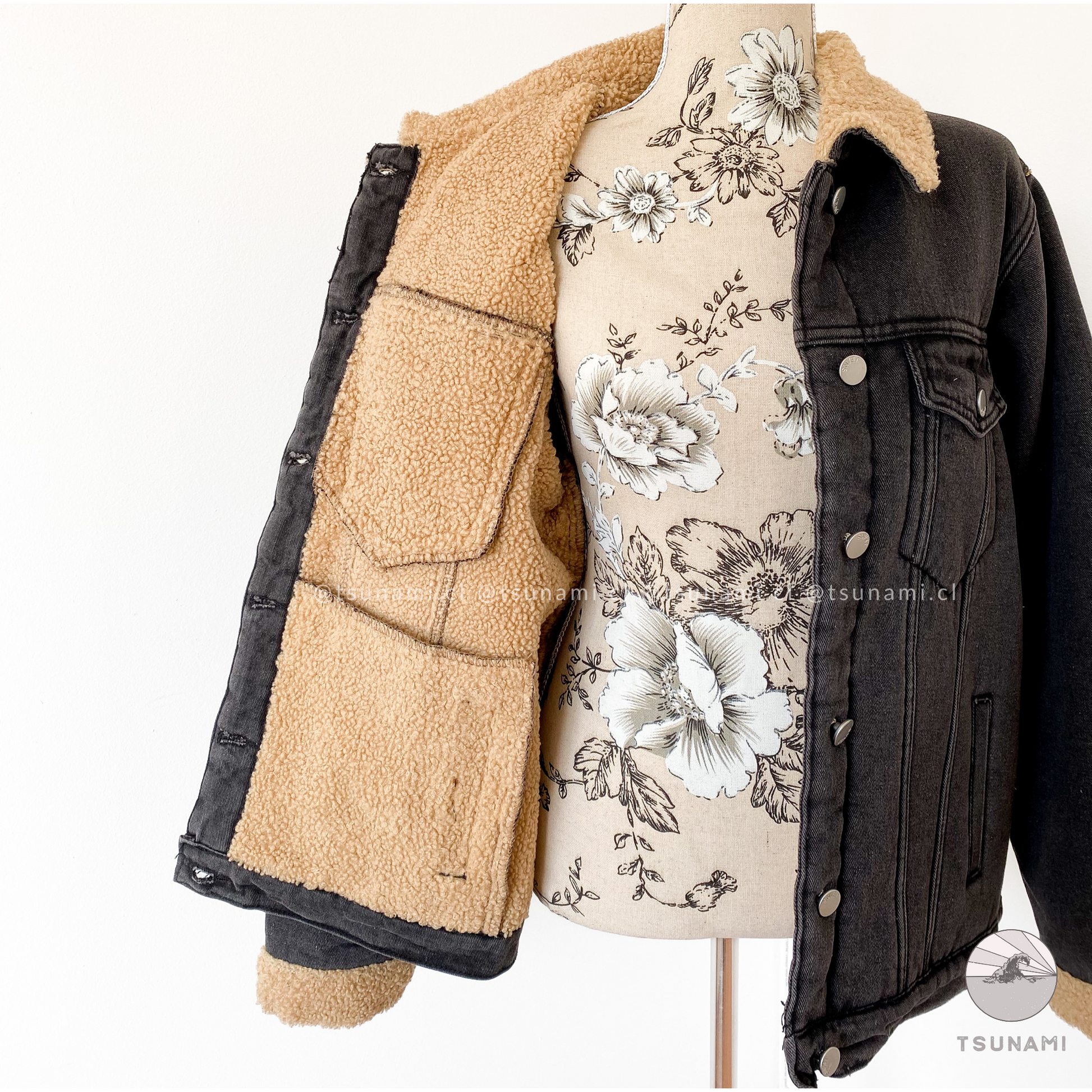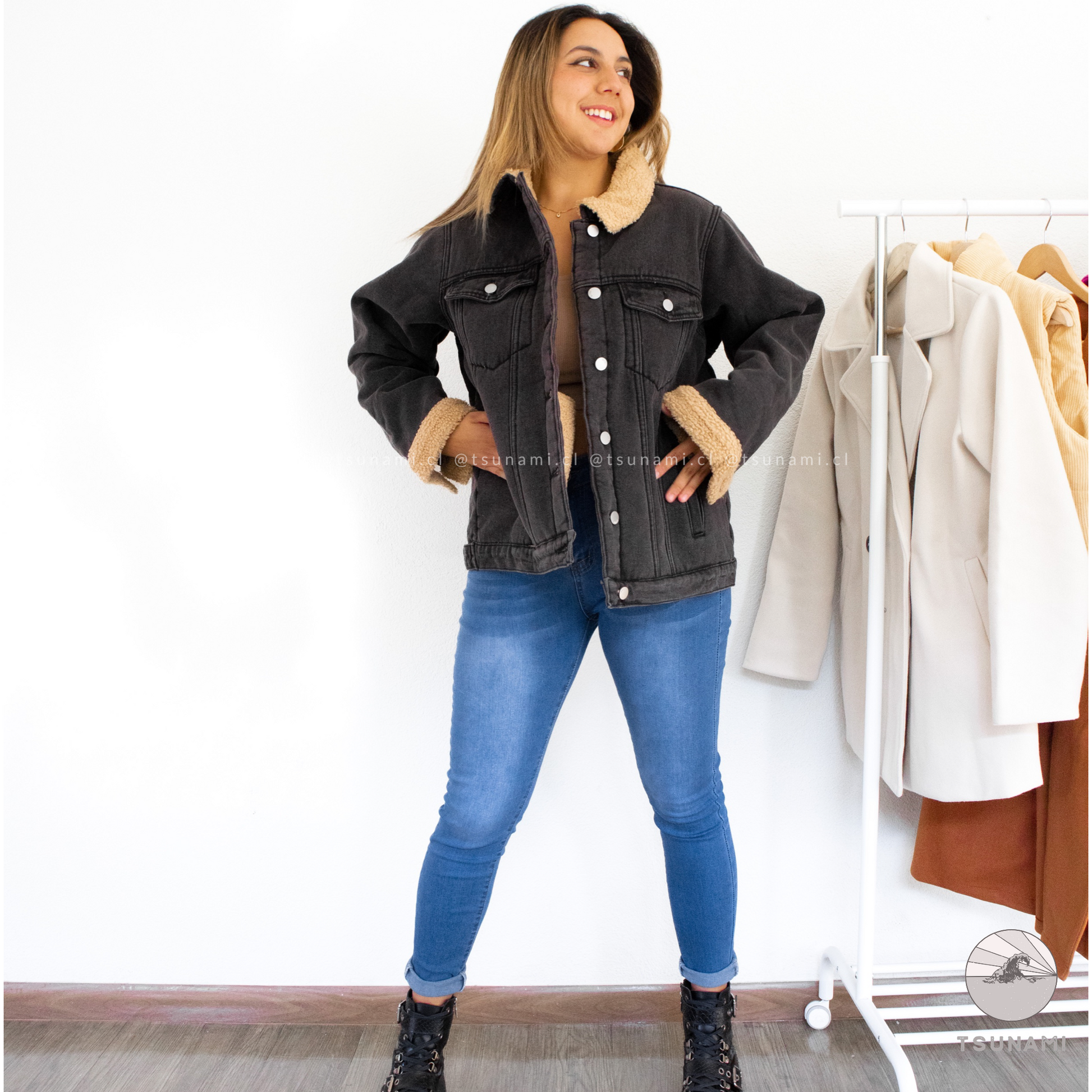 Chaqueta de mezclilla con forro interior de chiporro en toda la chaqueta, incluyendo mangas, posee bolsillos y botones funcionales. Es gruesa y muy calientita.