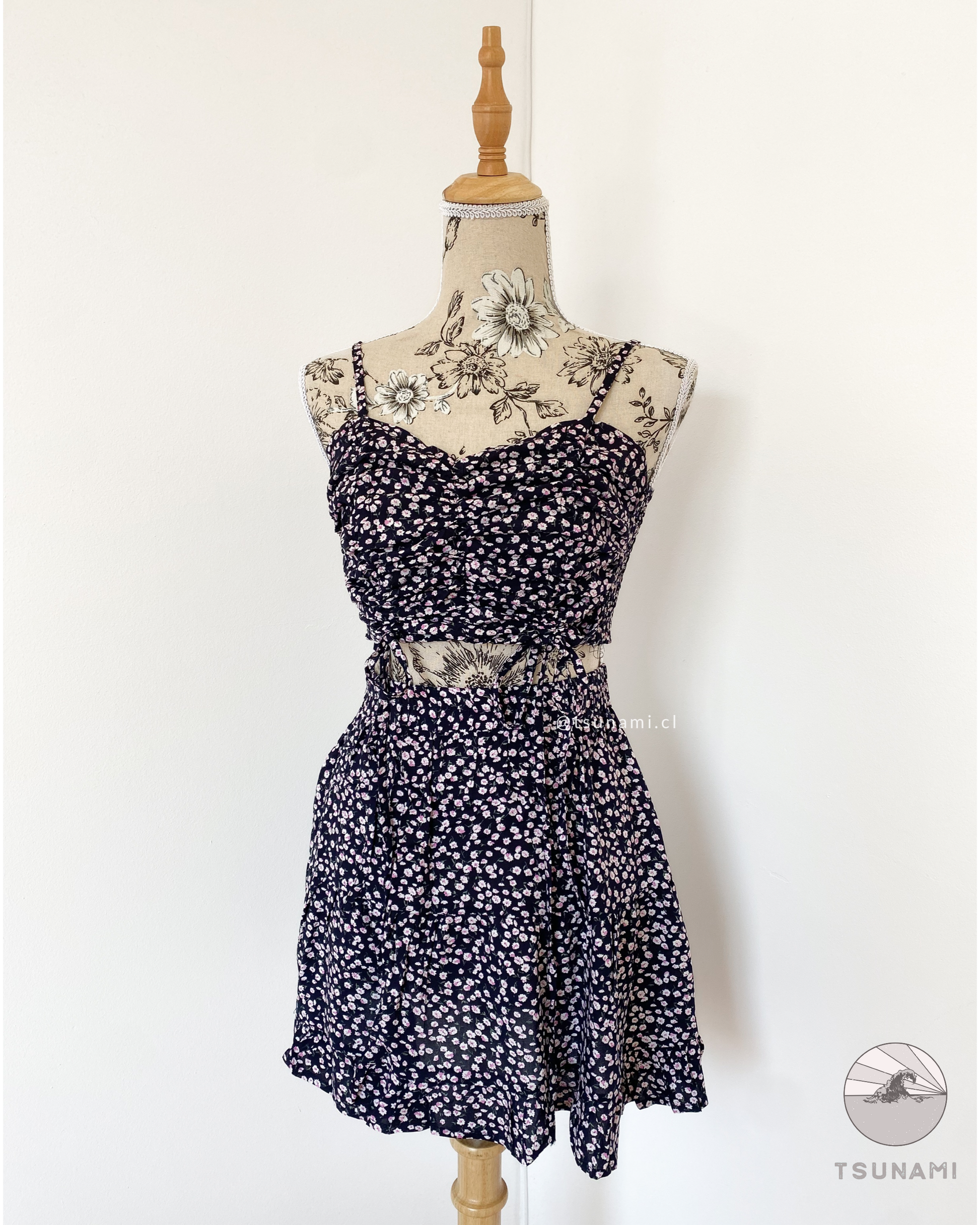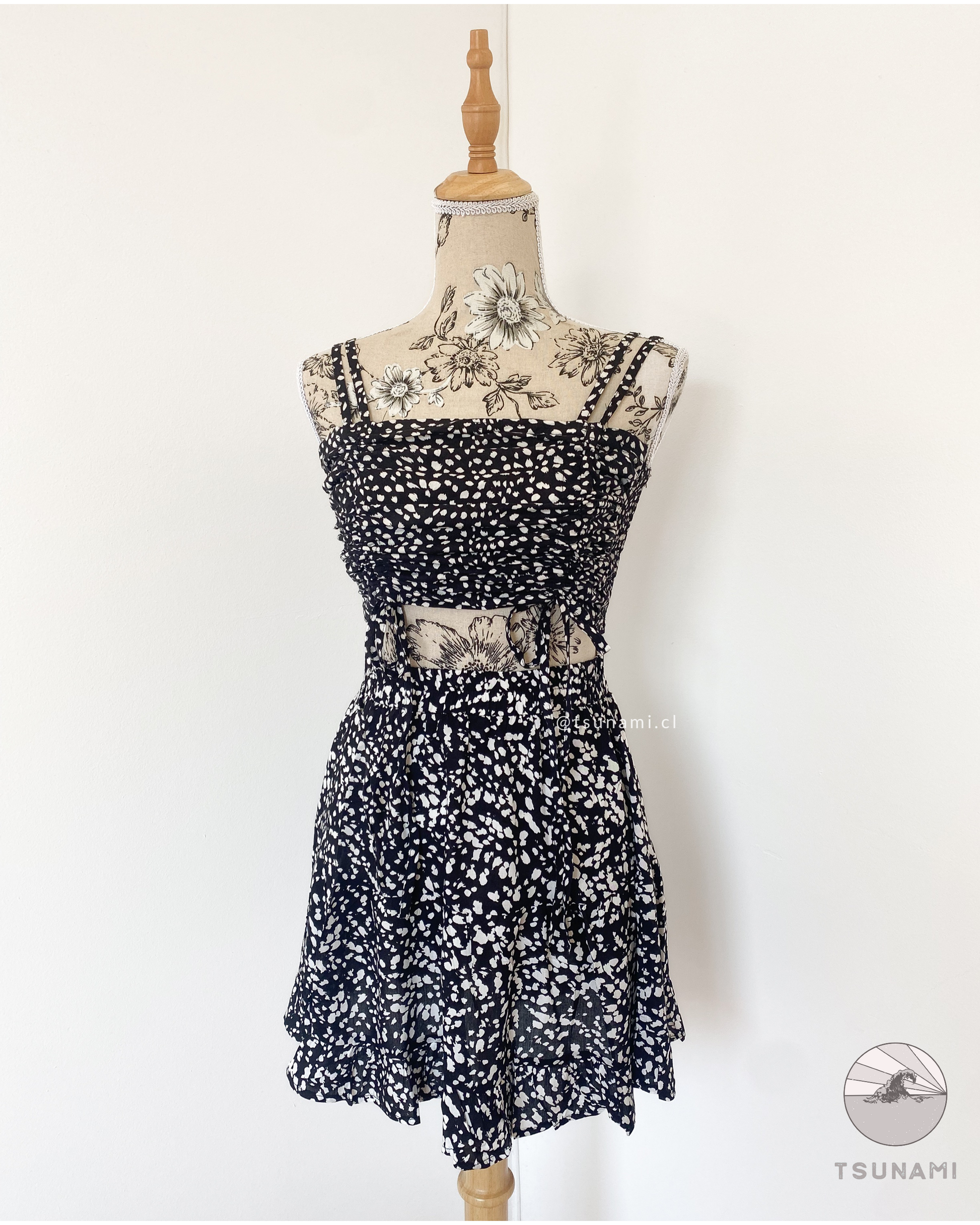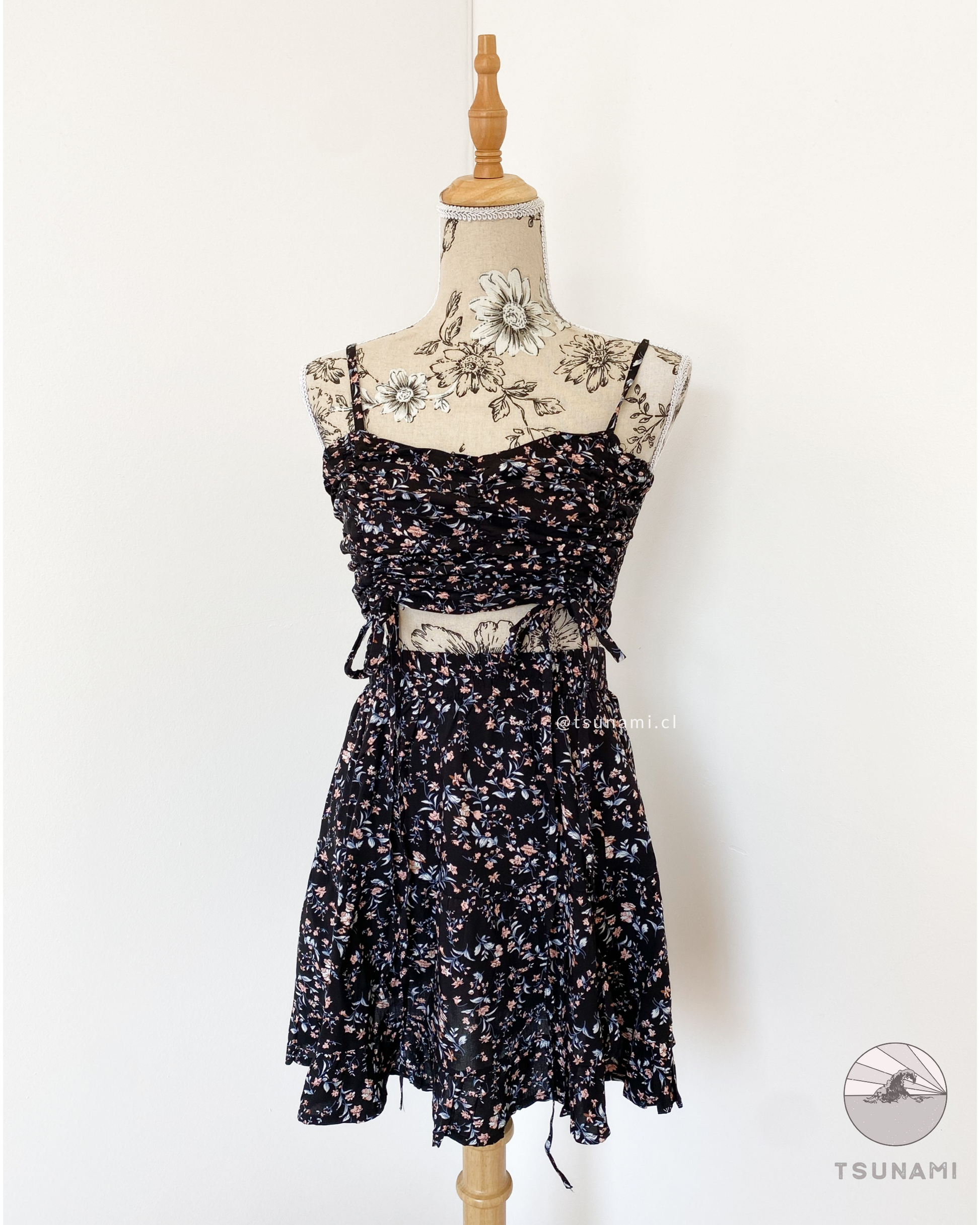 Set cómodo y fresco. La falda posee cintura elástico y tiene una caída super fluida, especial para los días calurosos. El top posee tiritas para recogerlo y ajustar los tirantes.