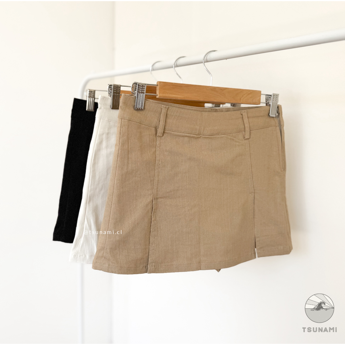 Mini falda short perfecta para los días soleados en donde quieres usar falda pero con la seguridad que te entrega un short!! Es elasticada y tiene cierre al costado.