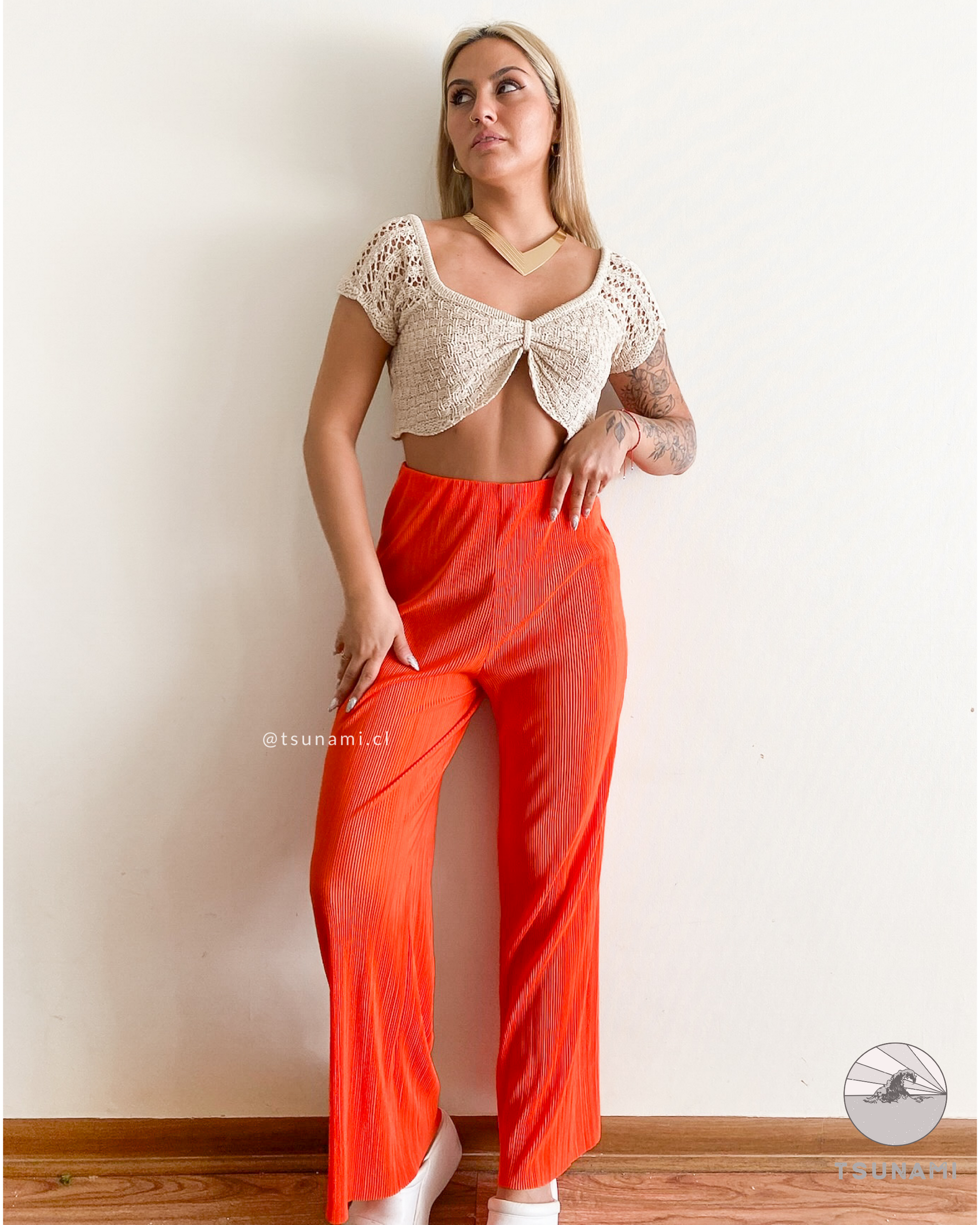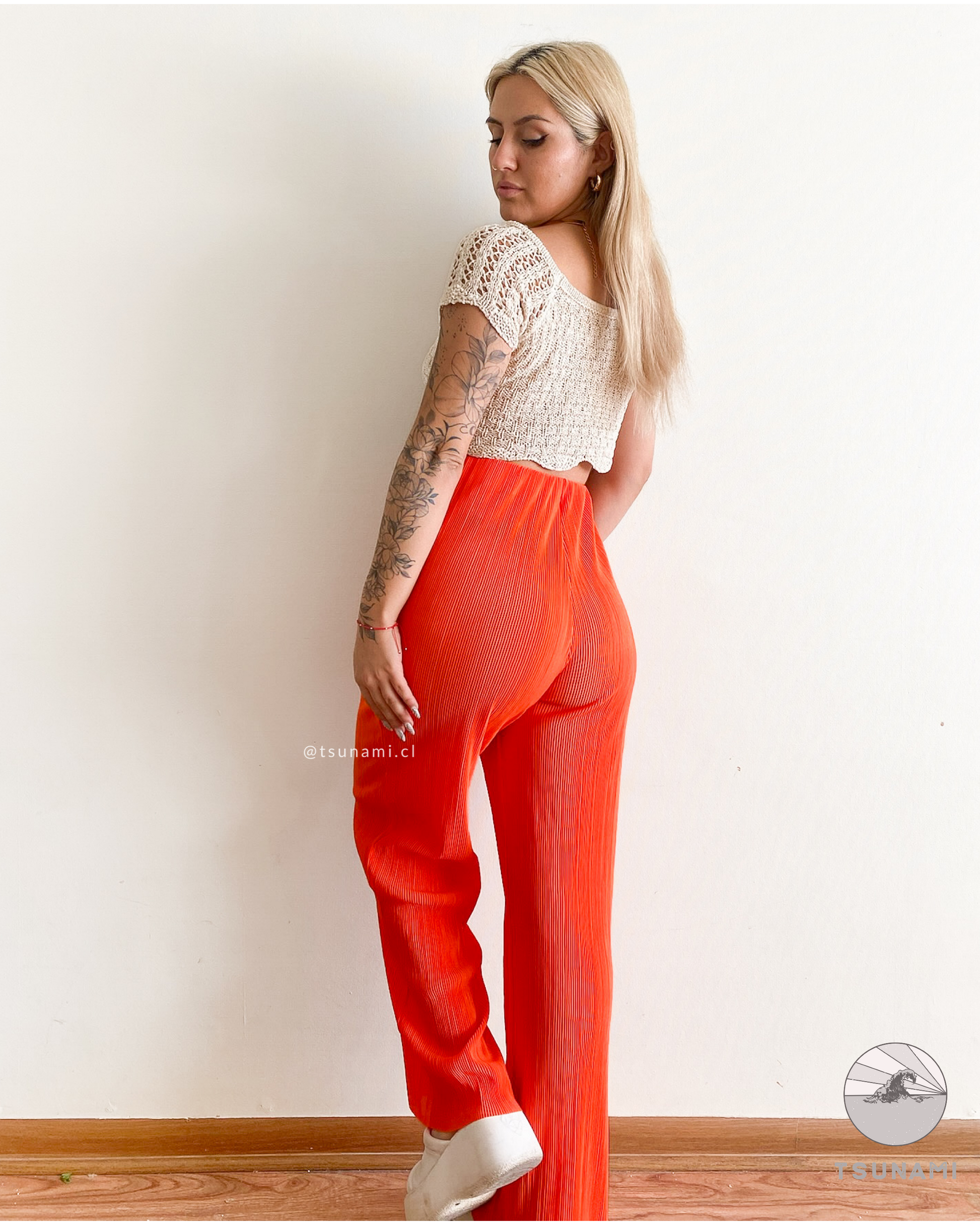 La prenda ideal en tu closet de verano!! Lucirás a la moda, fresca y muy cómoda. Este pantalón tiene pretina elástica y un cordón interior por si quieres ajustar tu cintura. El plisado fresco y liviano destaca por si solo, y ayuda a lucir una figura mas alargada y estilizada.