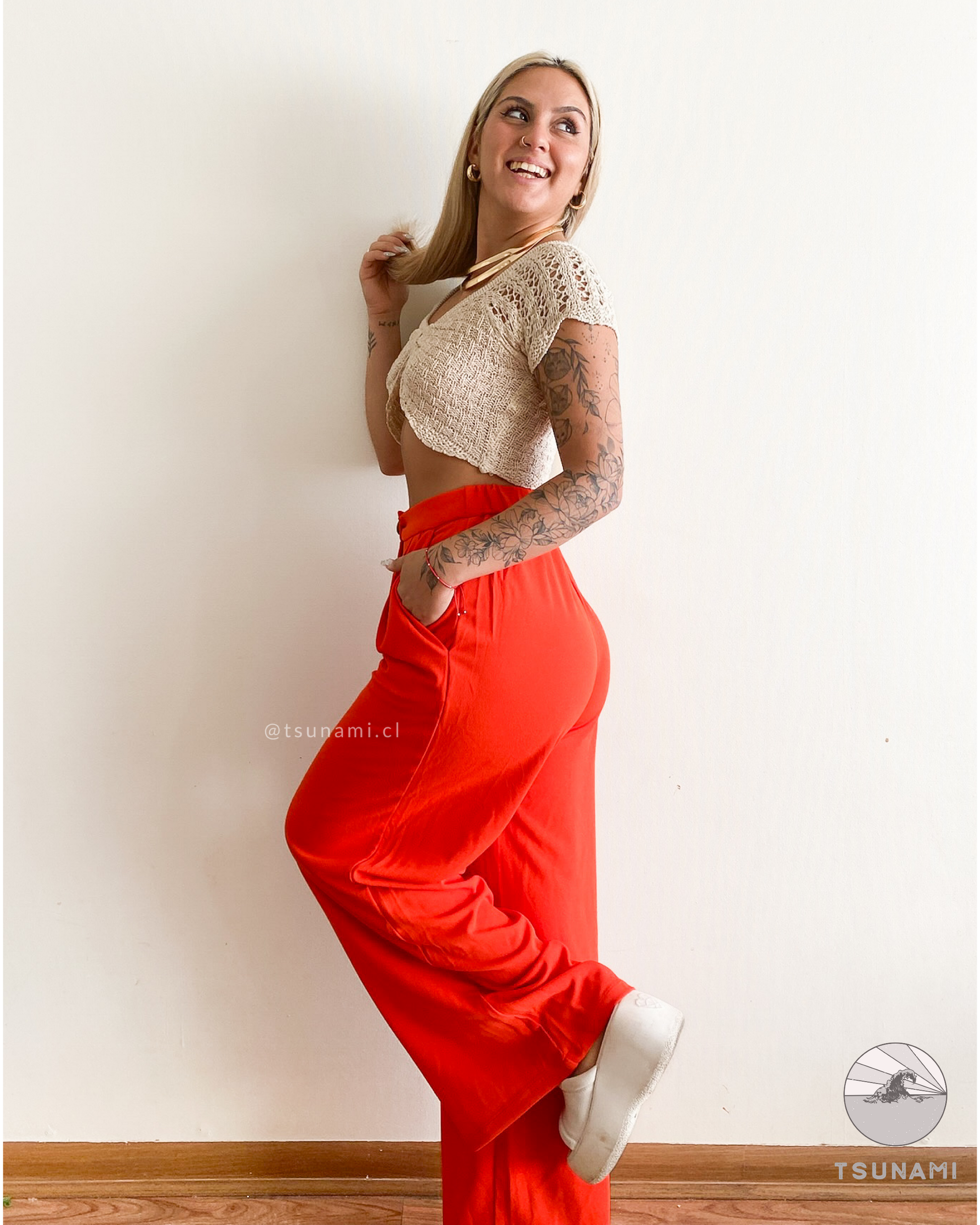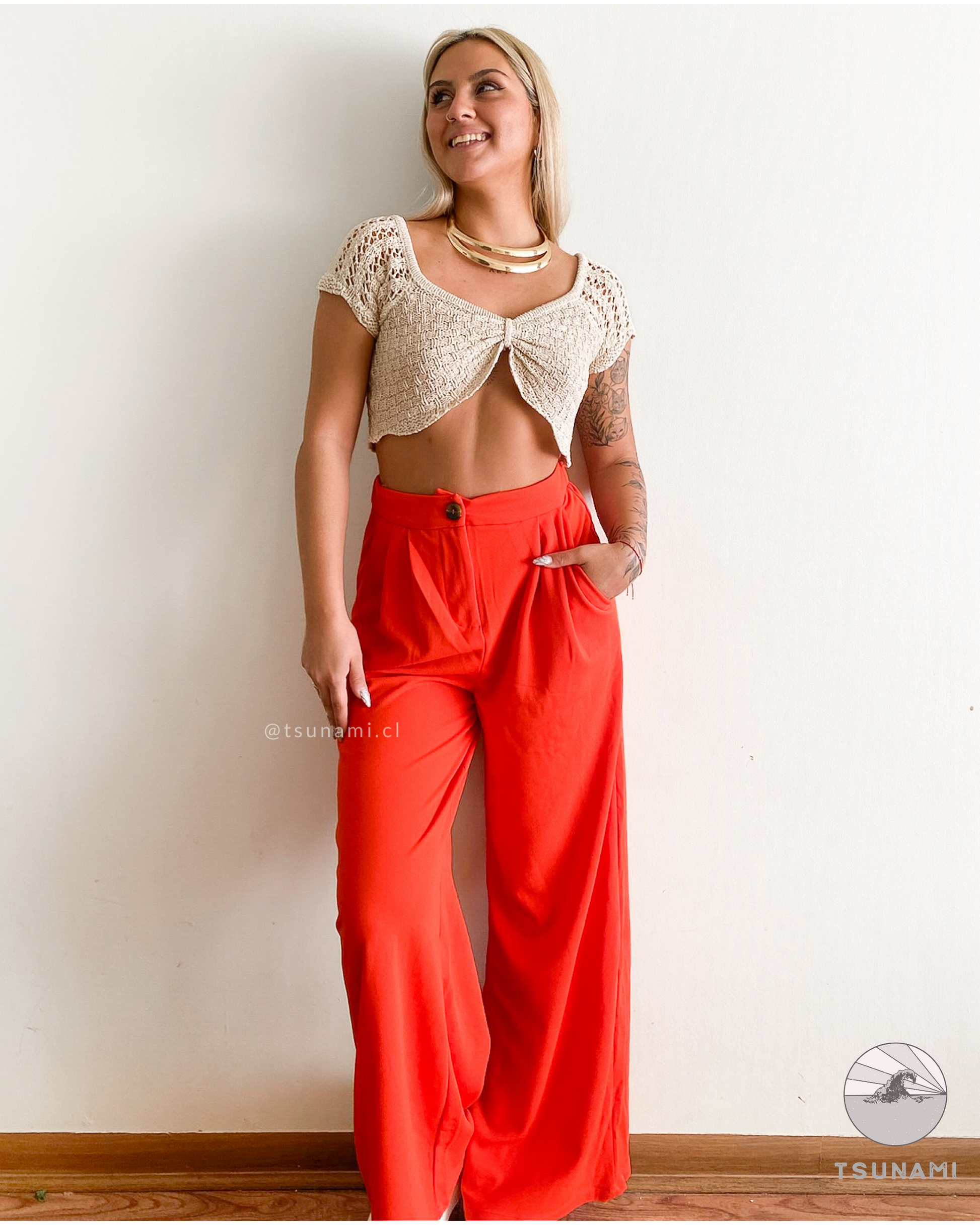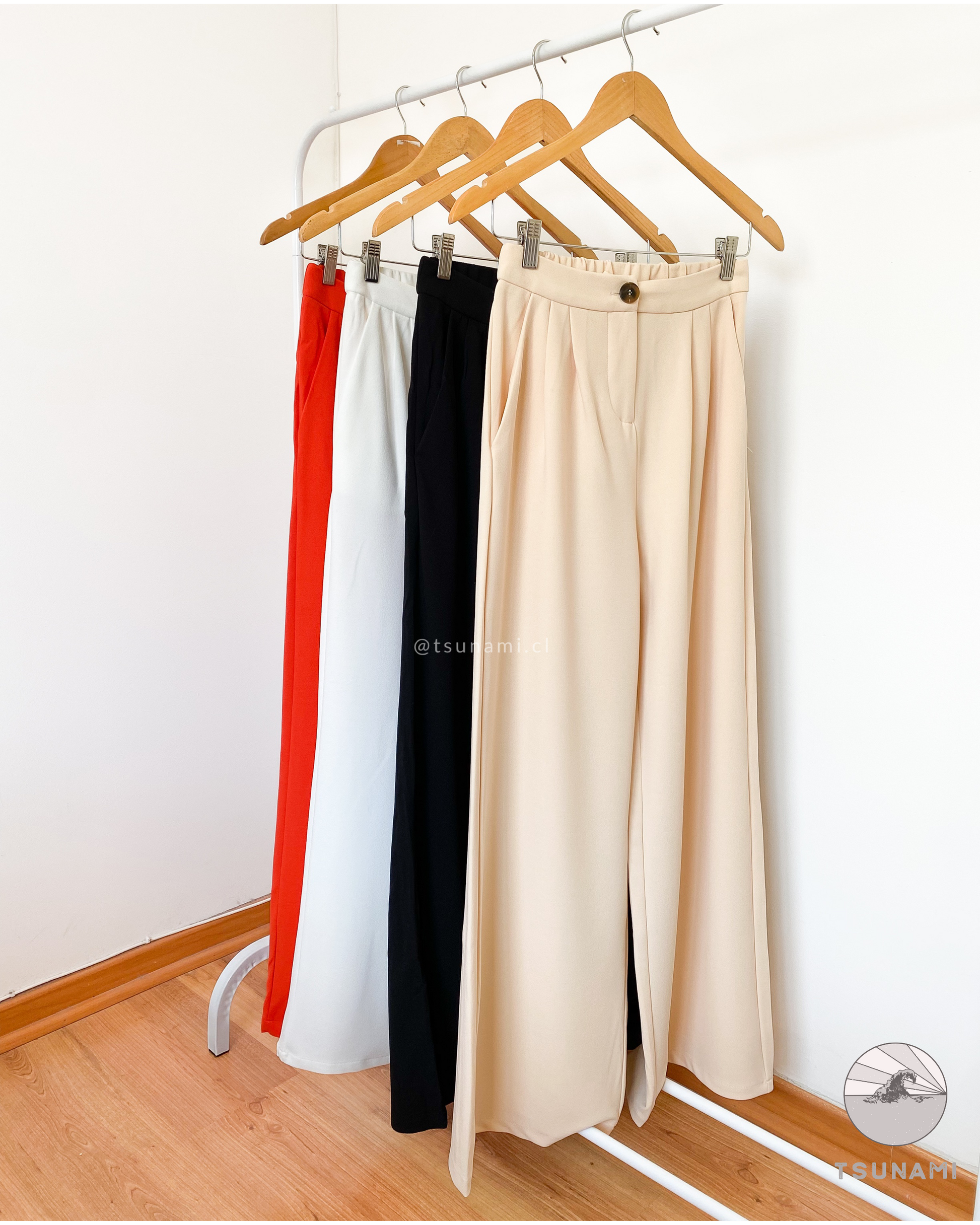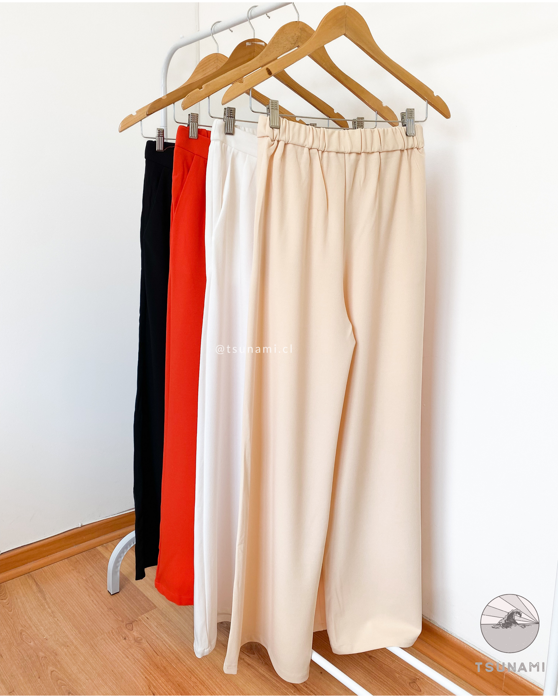 Hecho de una tela más pesada con mucho movimiento, lo que permite que tenga una caída muy fluida y sea una prenda muy fresca. Además es muy elasticado, por lo que se ajusta a tu cuerpo perfectamente, además es de tiro alto, lo que resalta tu cintura y alarga tus piernas.