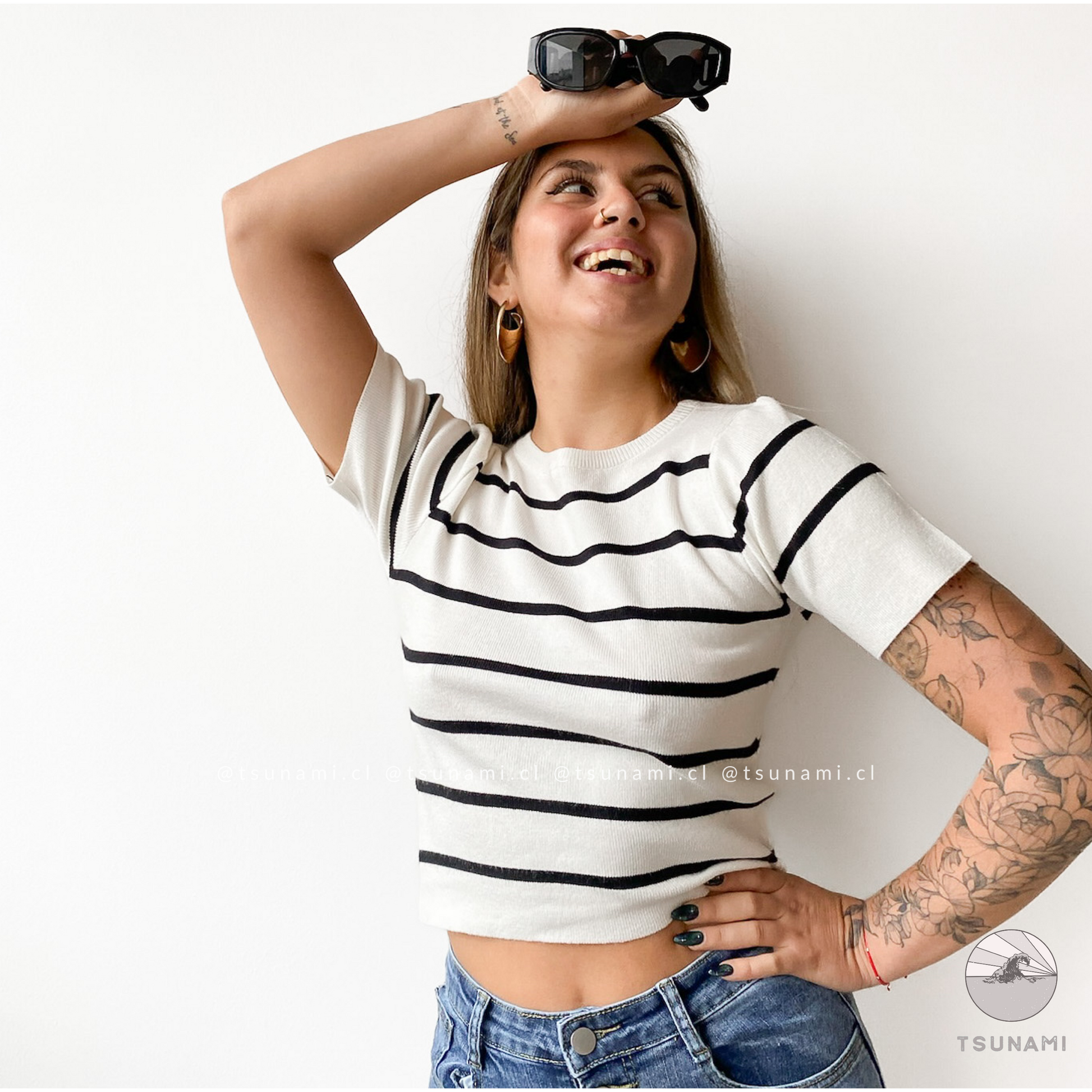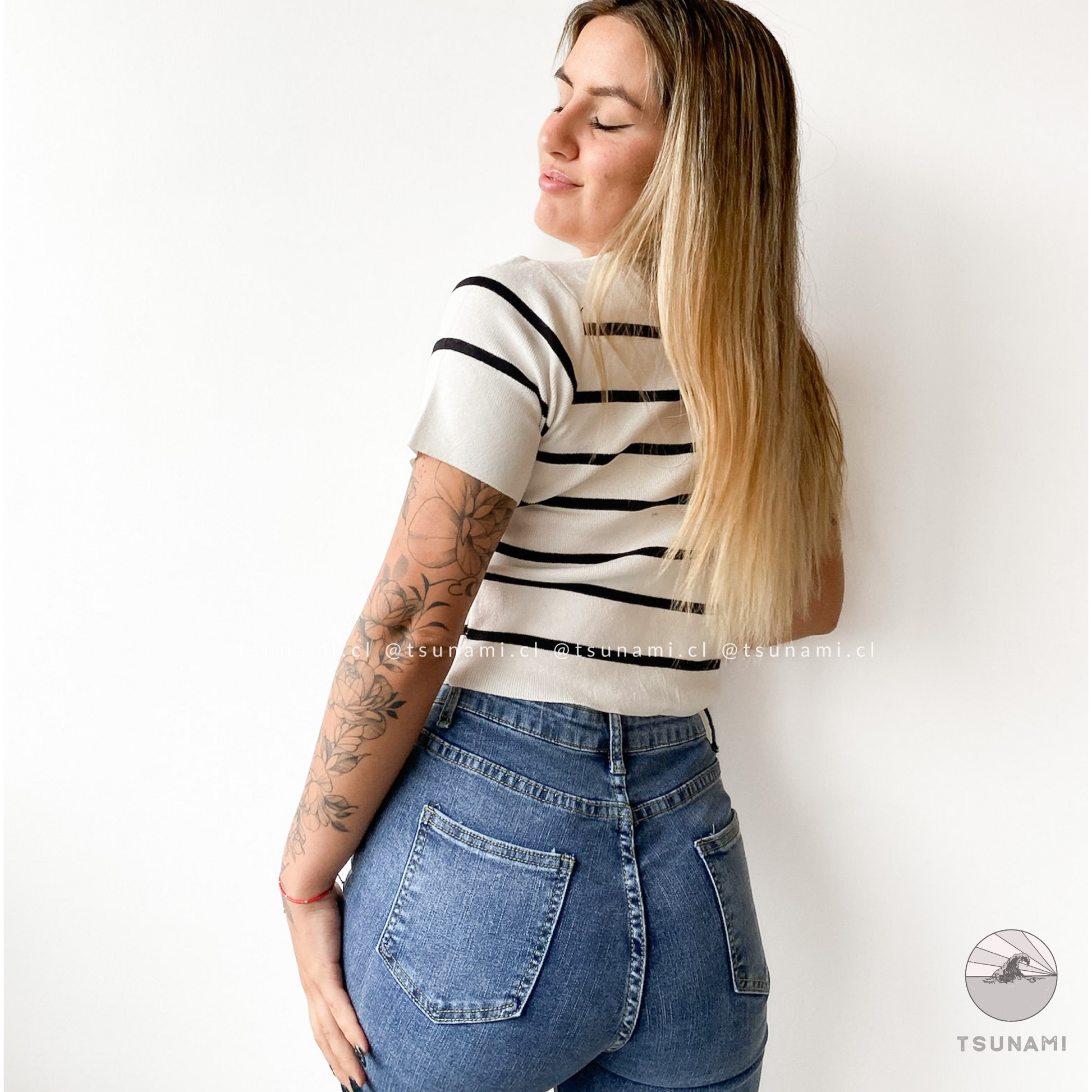 Polera muy elastizada, hecha de un tejido de hilo muy fino de viscosa y poliester, tremendamente suavecita, de grosor medio, muy fresca y cómoda.