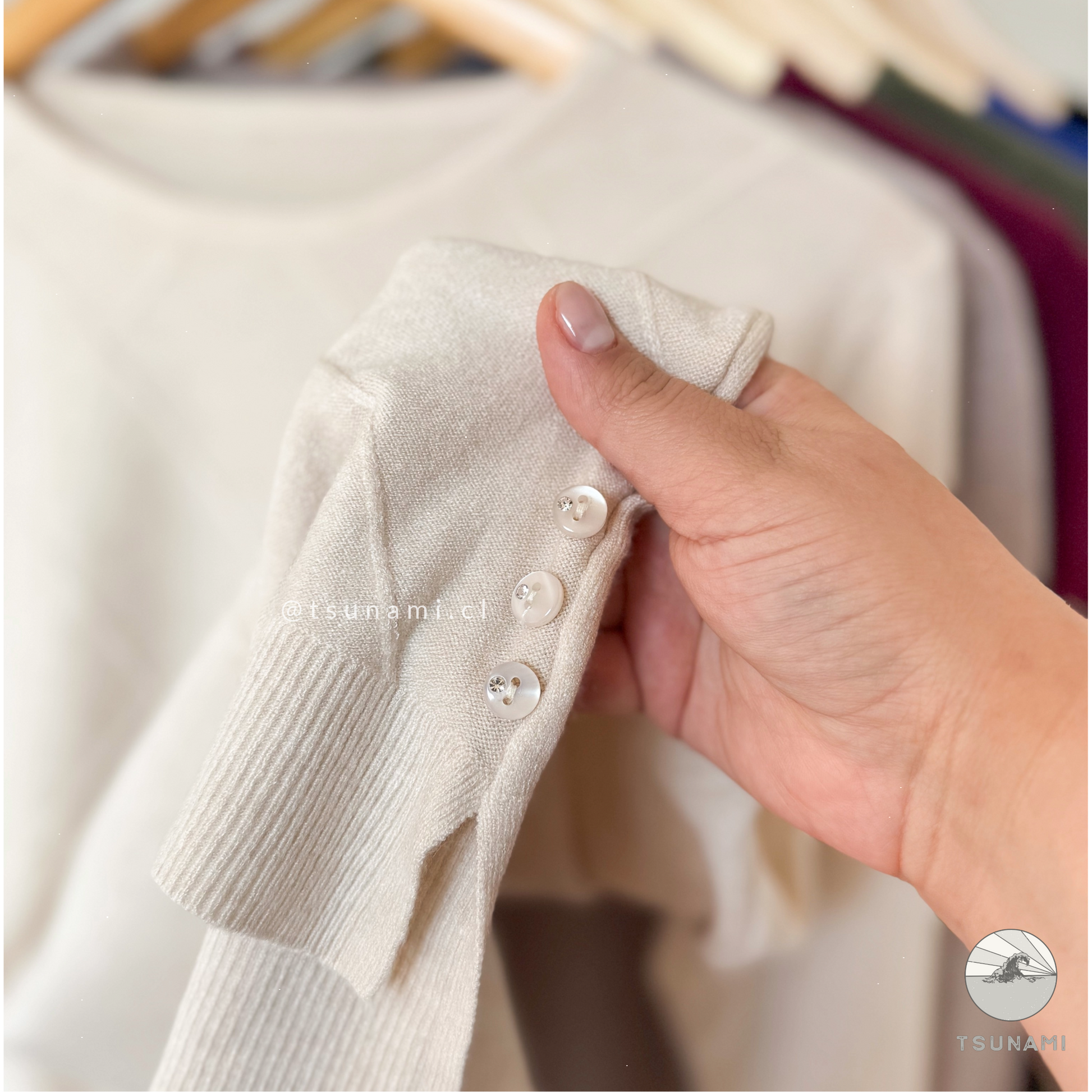 Los botones decorativos en los costados son un detalle sutil que marca la diferencia, dándole un aire más femenino y pulido sin esfuerzo. Y con su gama de colores neutros y clásicos, se adapta a todo: desde un look relajado para el día a día hasta uno más sofisticado para la oficina.