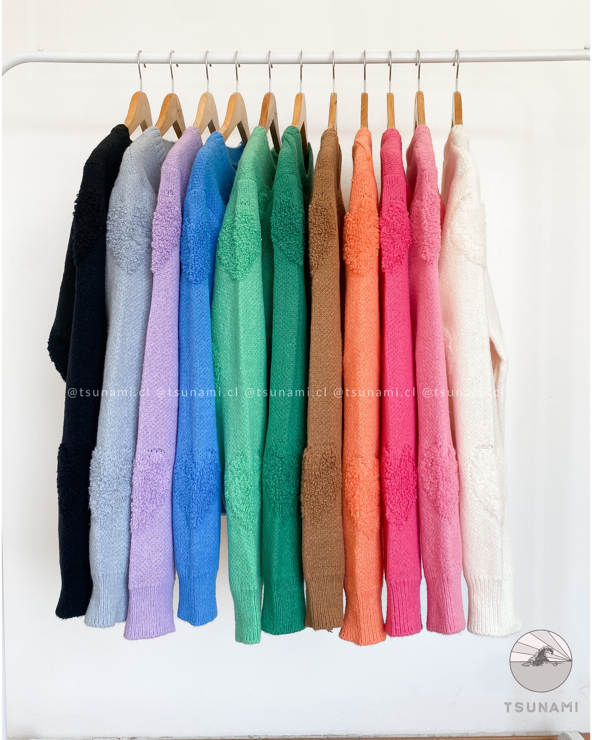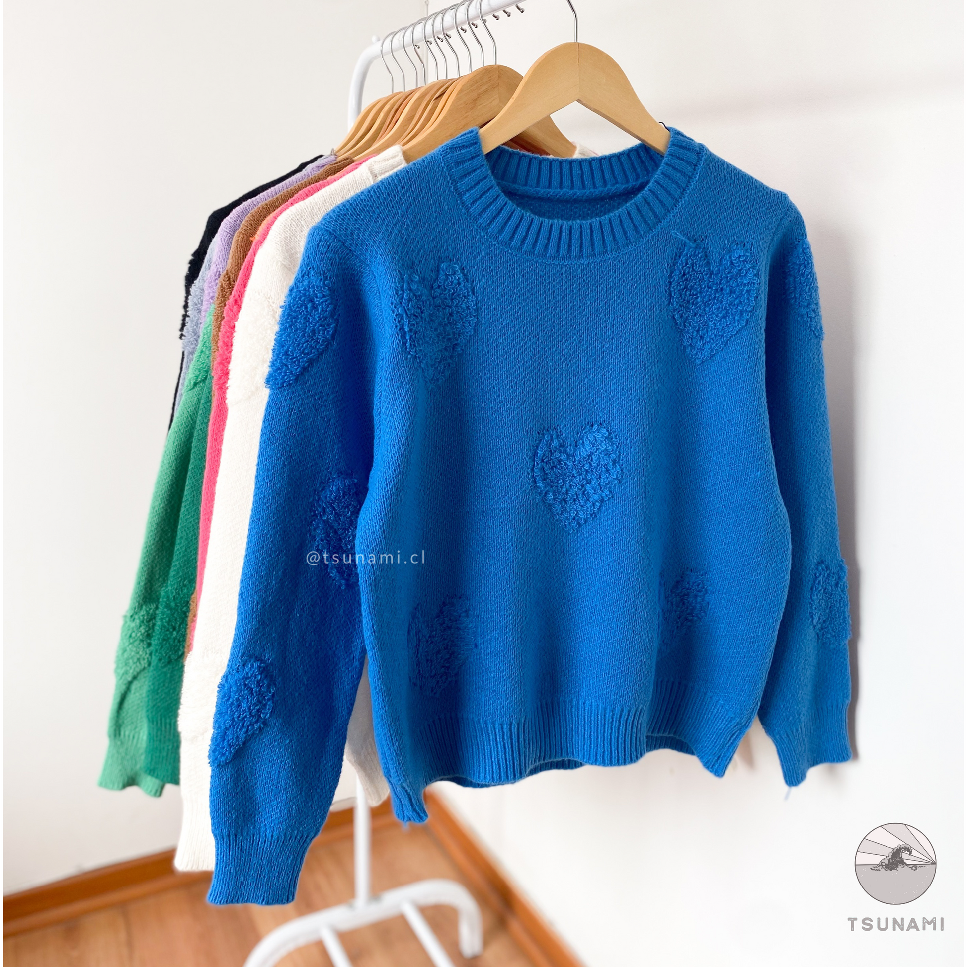 Suavecito, calientito, suavecito y super tierno con los corazones. Cuello redondo súper cómodo que no aprieta, en colores vivos para darle vida a los días nublados.