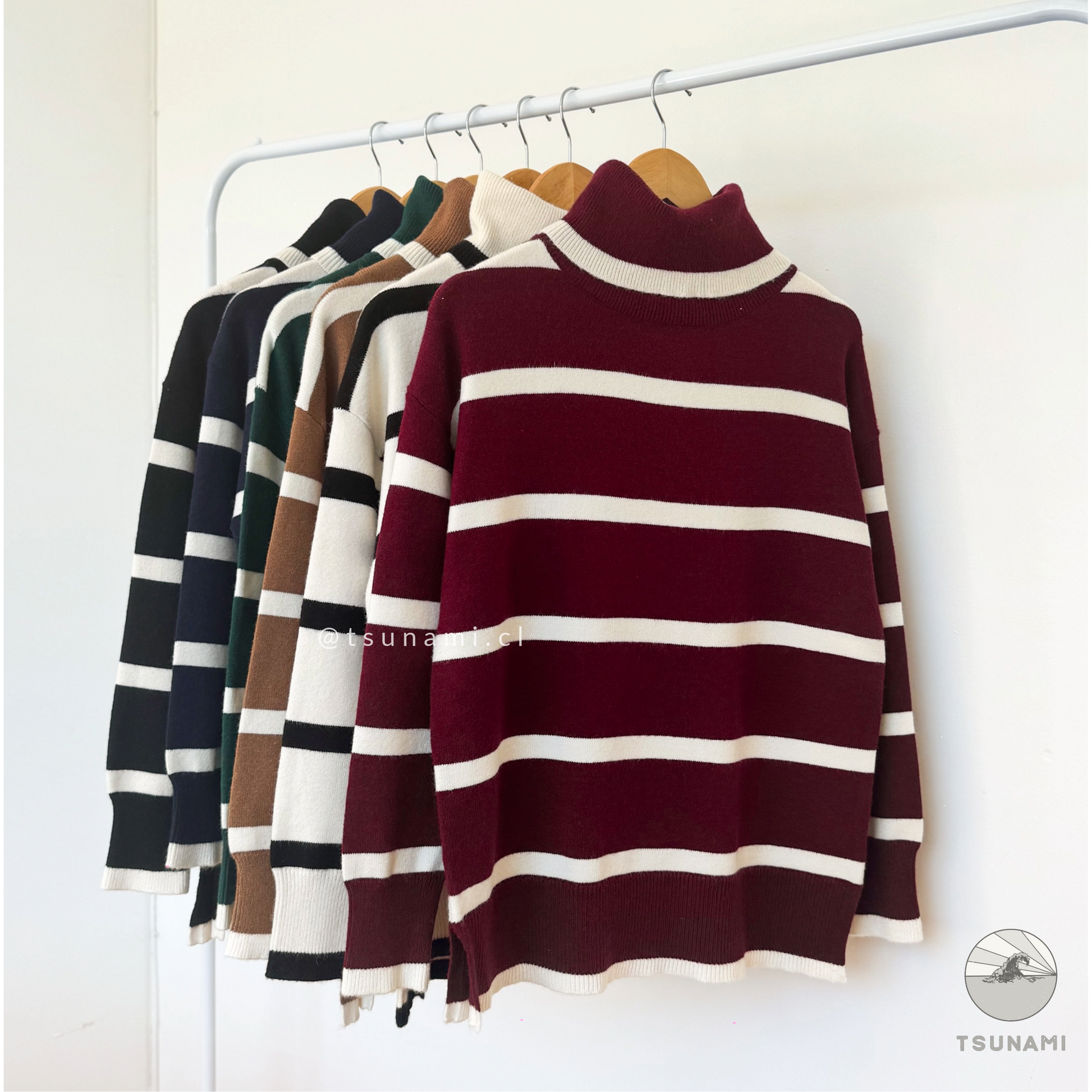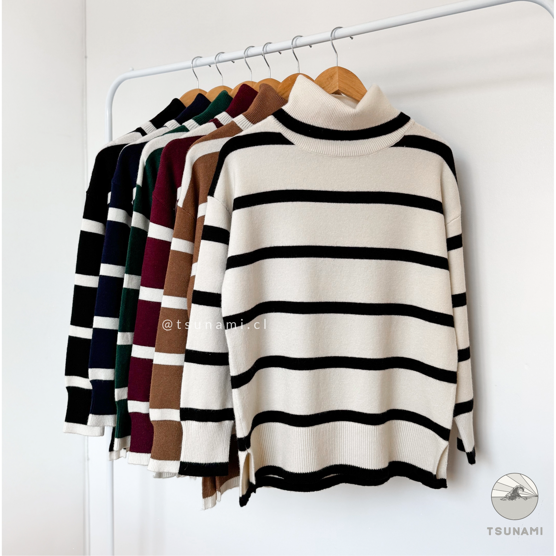 Este suéter de rayas es el mix perfecto entre lo clásico y lo relajado 😍. Es holgado y un poquito más largo, ideal para usar con leggins o jeans y lograr un look cómodo pero con mucha onda. Su cuello holgado es cómodo y estiloso: no aprieta y le da ese toque casual que amamos.