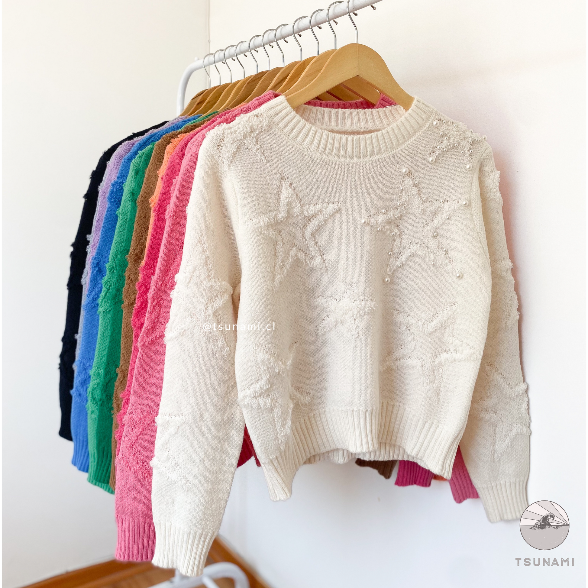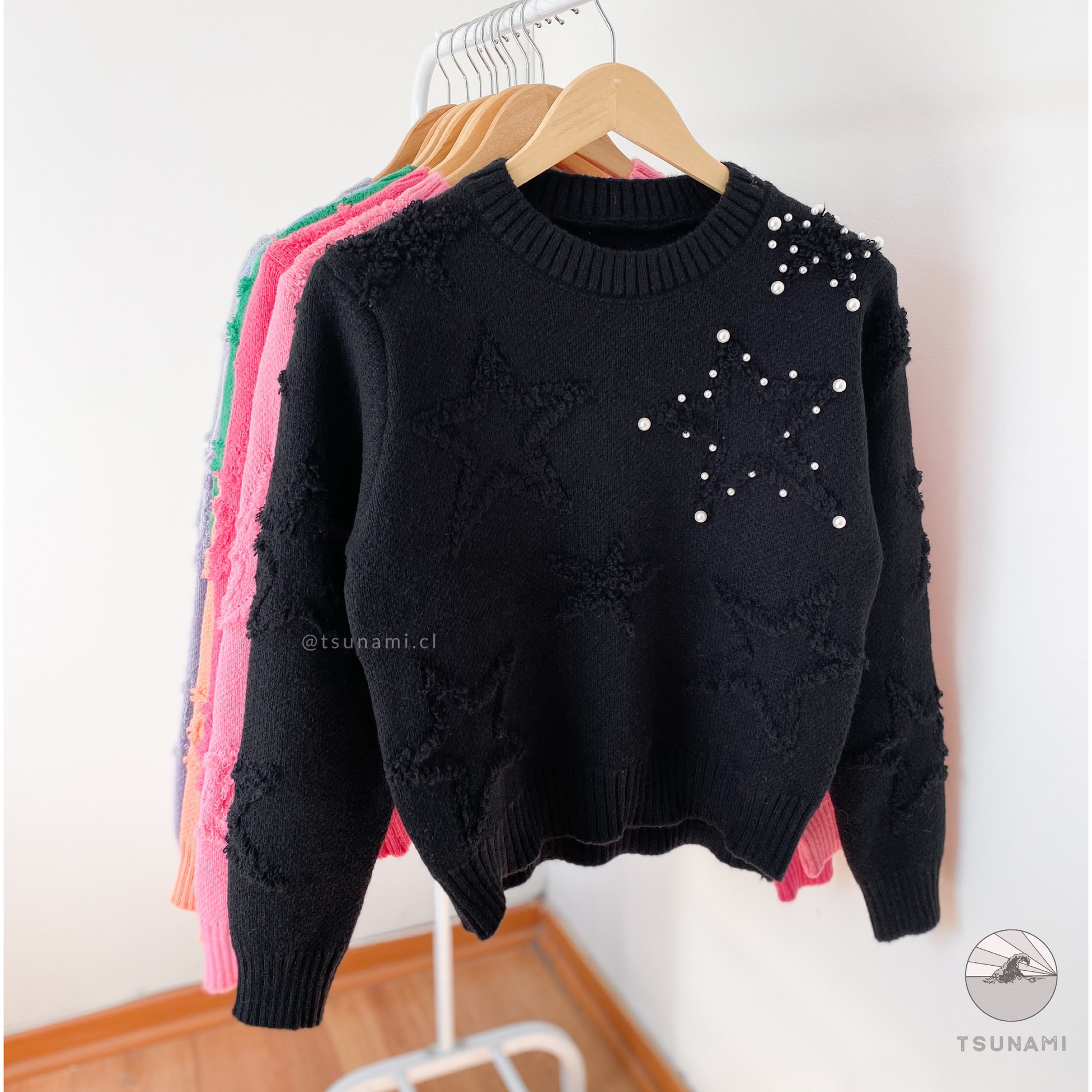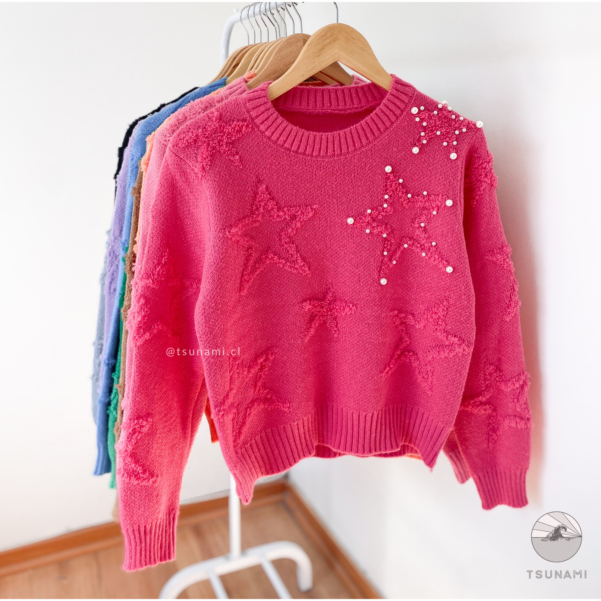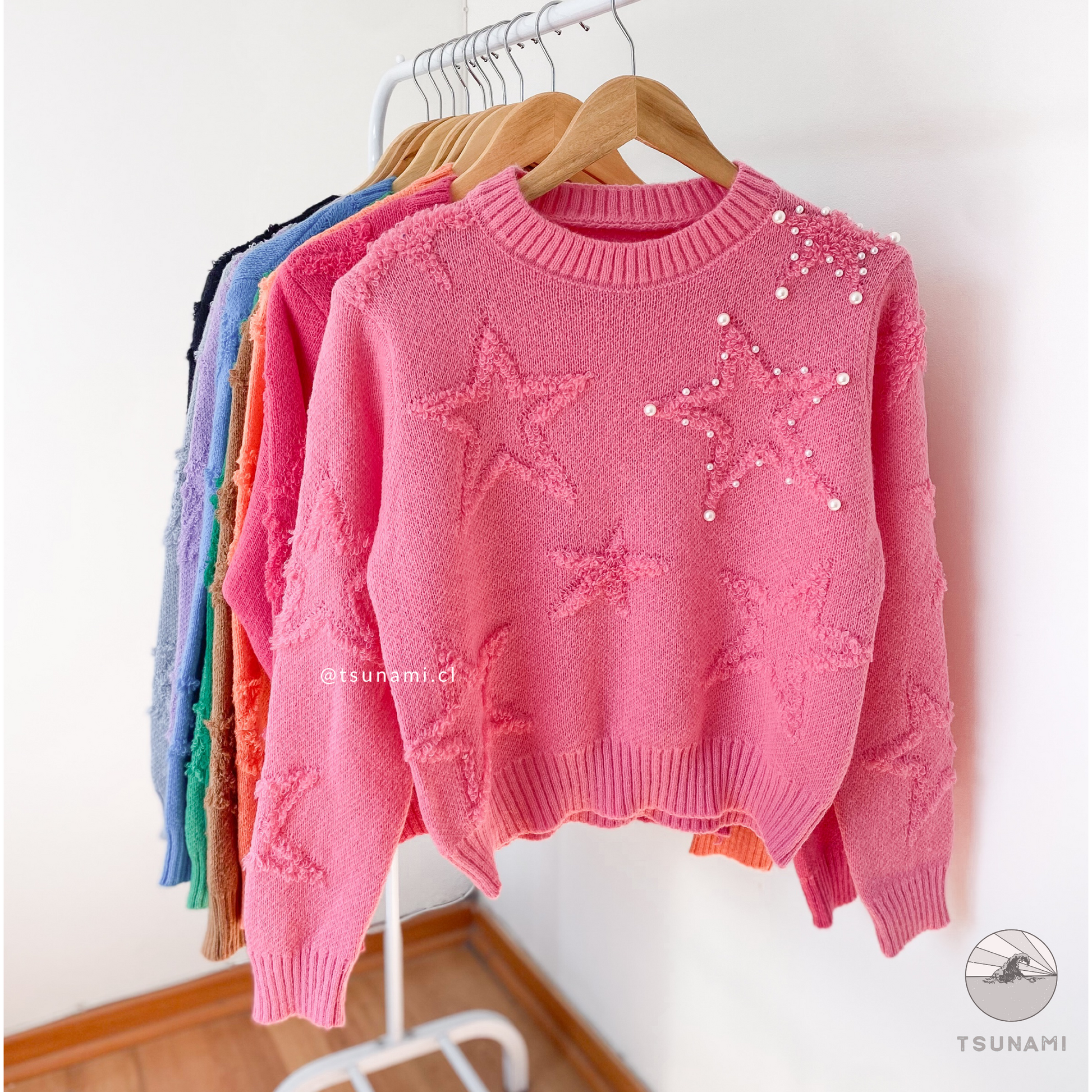 Llegan los días fríos y con ellos los chalecos!! Este suéter es suavecito, de grosor medio y calientito, el detalle de las estrellas y las perlas lo hacen especial. Desde colores básicos y neutros hasta el pop del color de tu outfit.