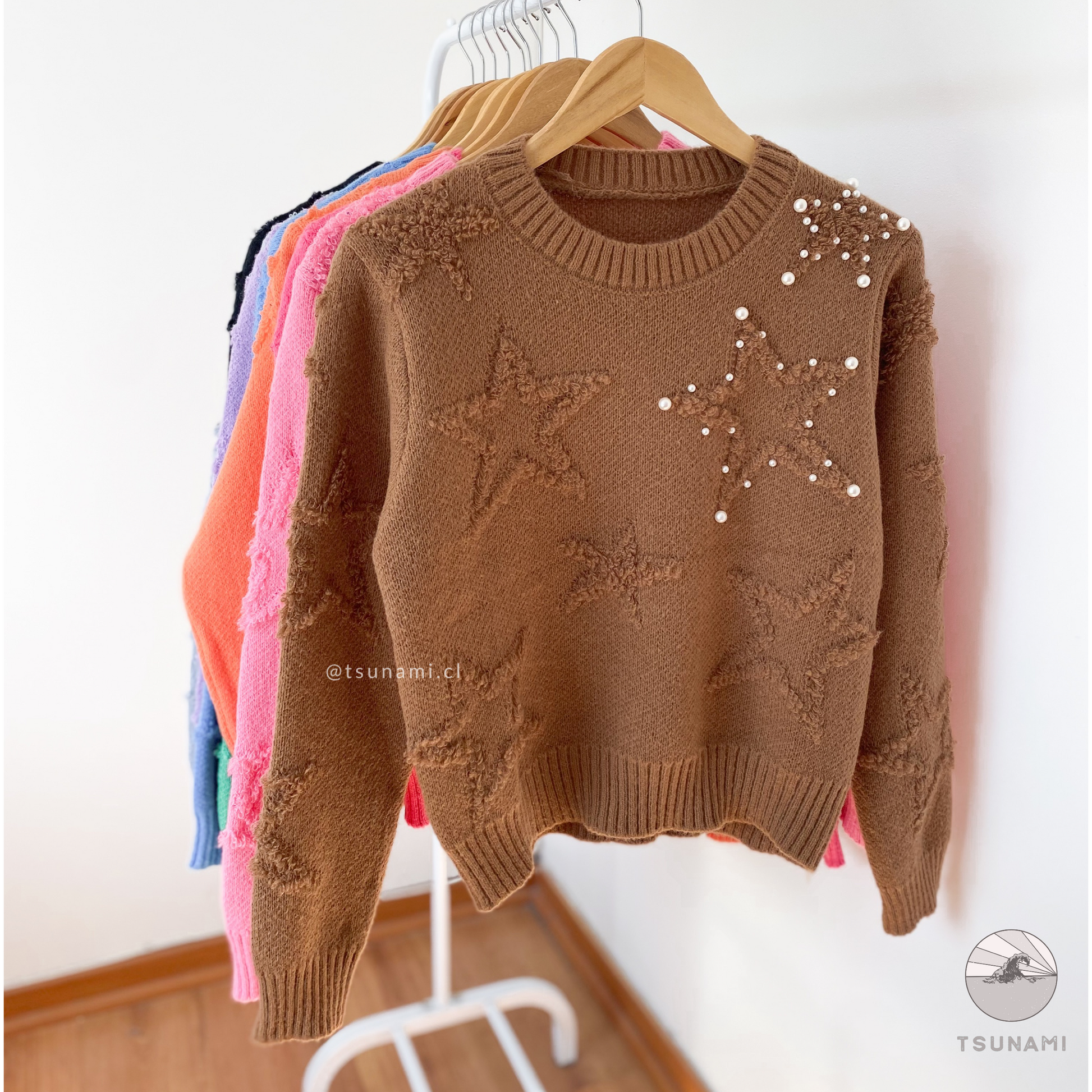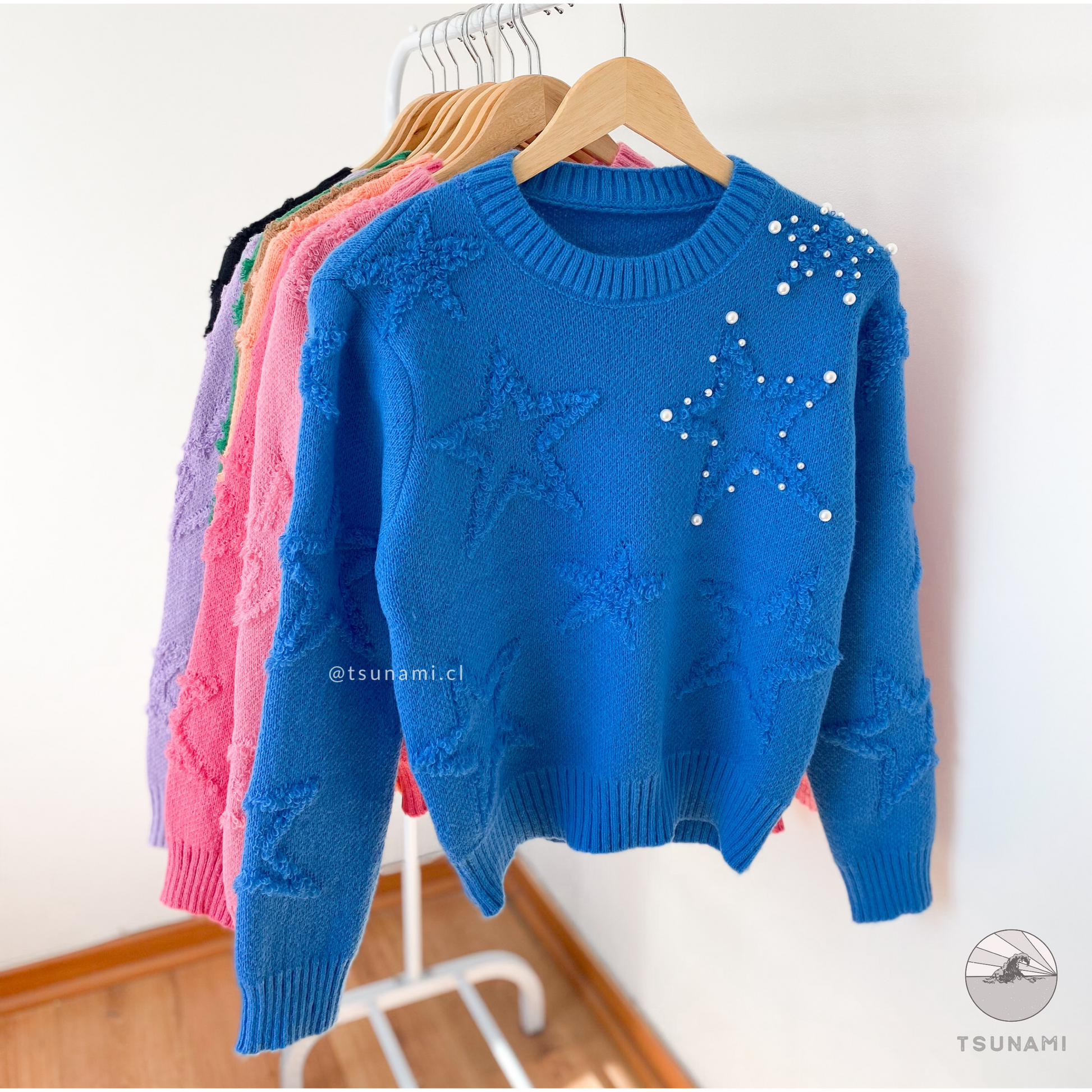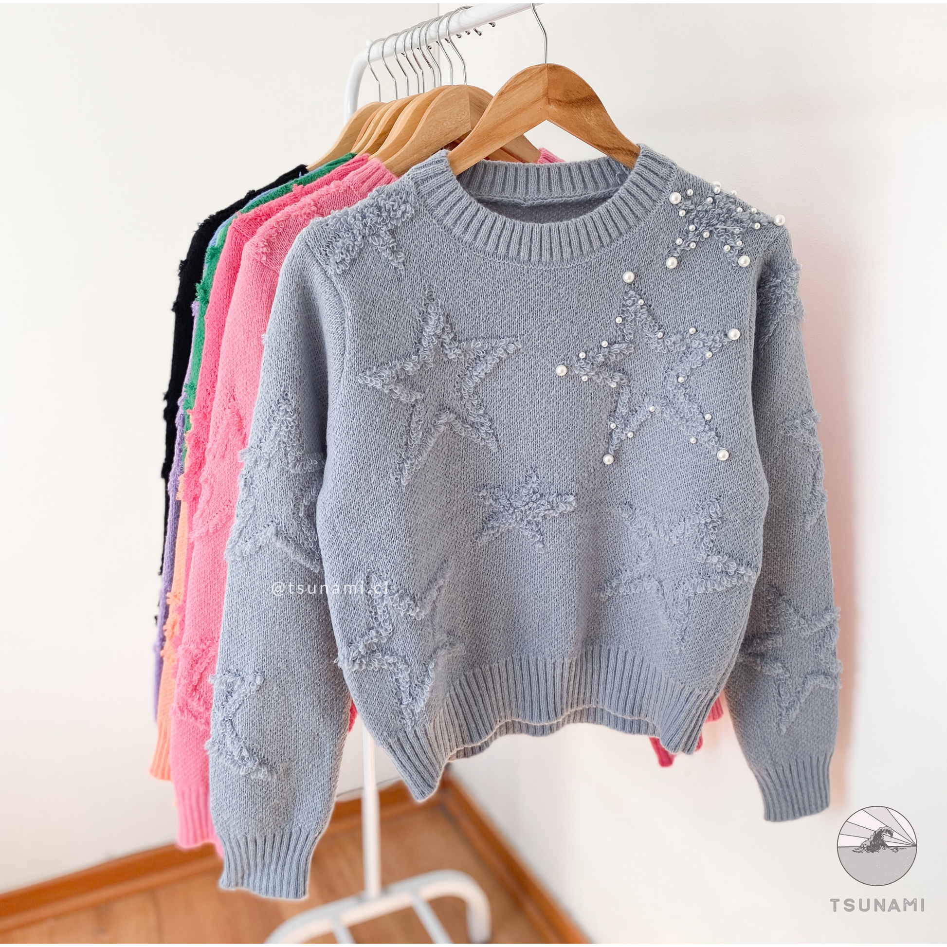 Llegan los días fríos y con ellos los chalecos!! Este suéter es suavecito, de grosor medio y calientito, el detalle de las estrellas y las perlas lo hacen especial. Desde colores básicos y neutros hasta el pop del color de tu outfit.
