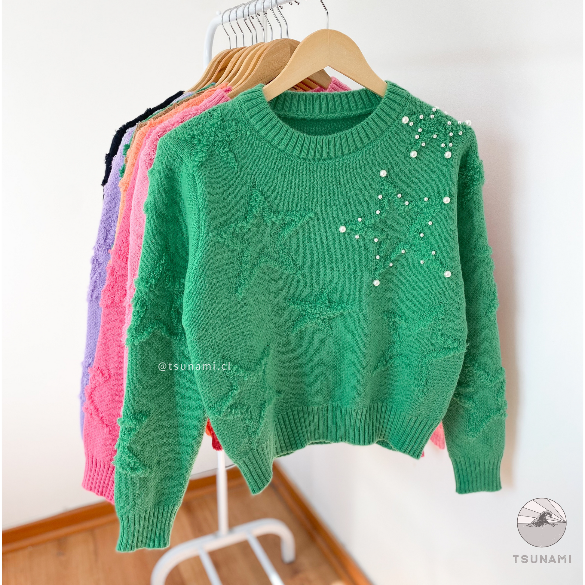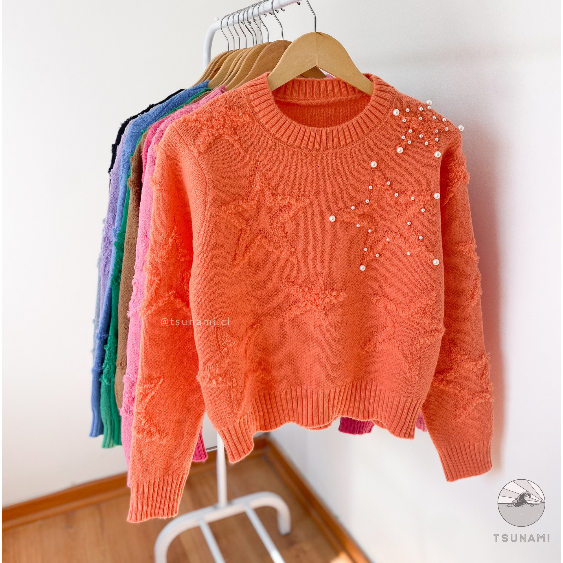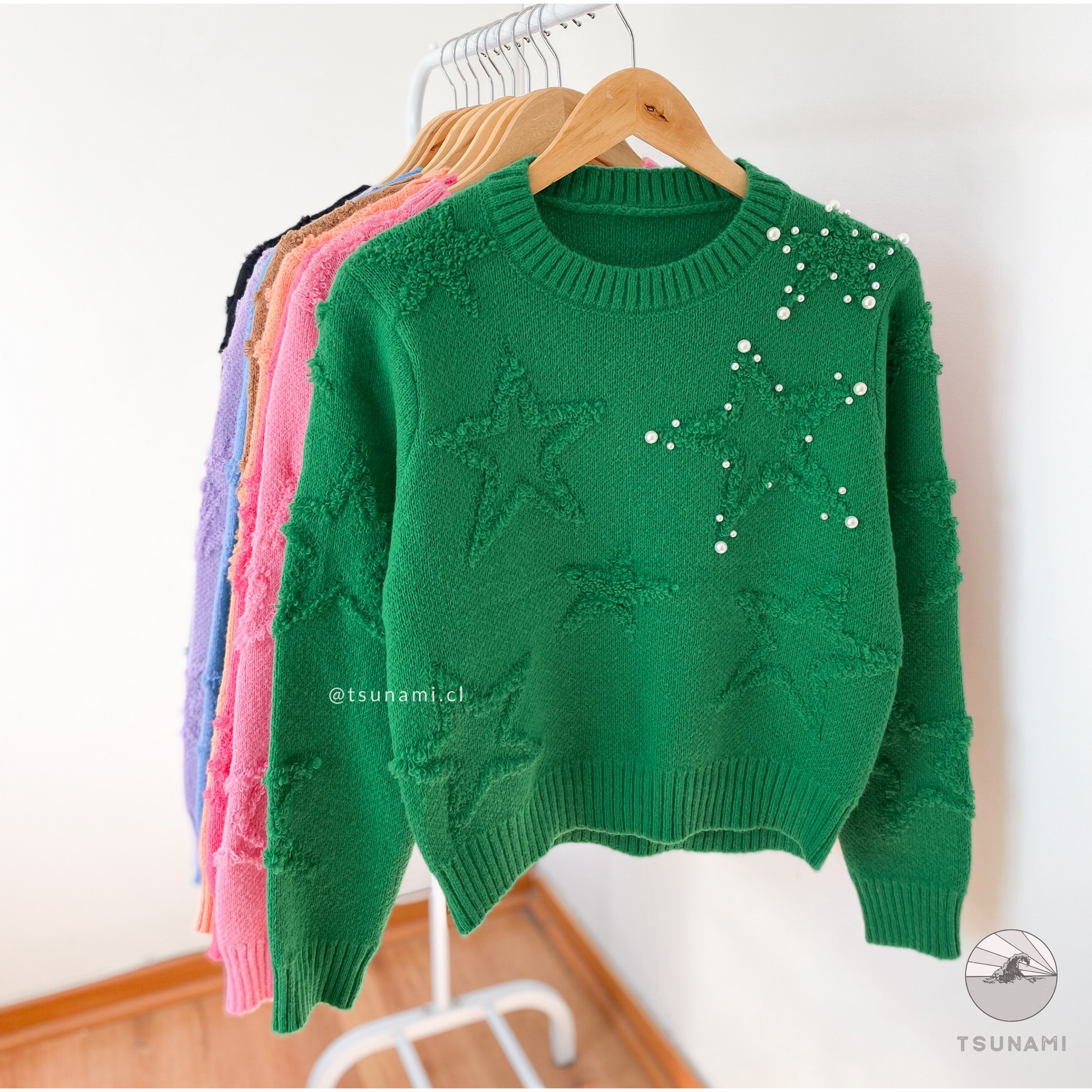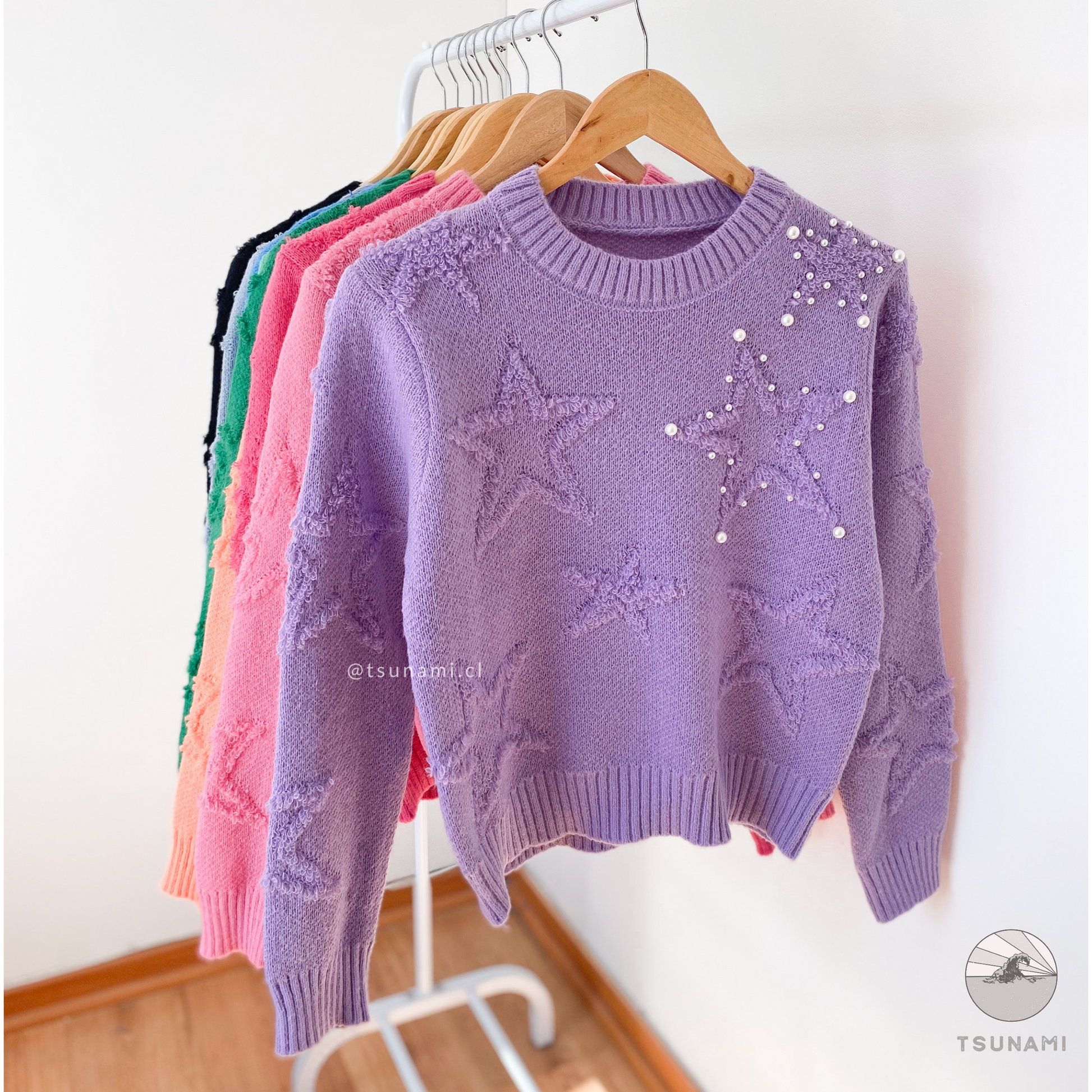 Llegan los días fríos y con ellos los chalecos!! Este suéter es suavecito, de grosor medio y calientito, el detalle de las estrellas y las perlas lo hacen especial. Desde colores básicos y neutros hasta el pop del color de tu outfit.