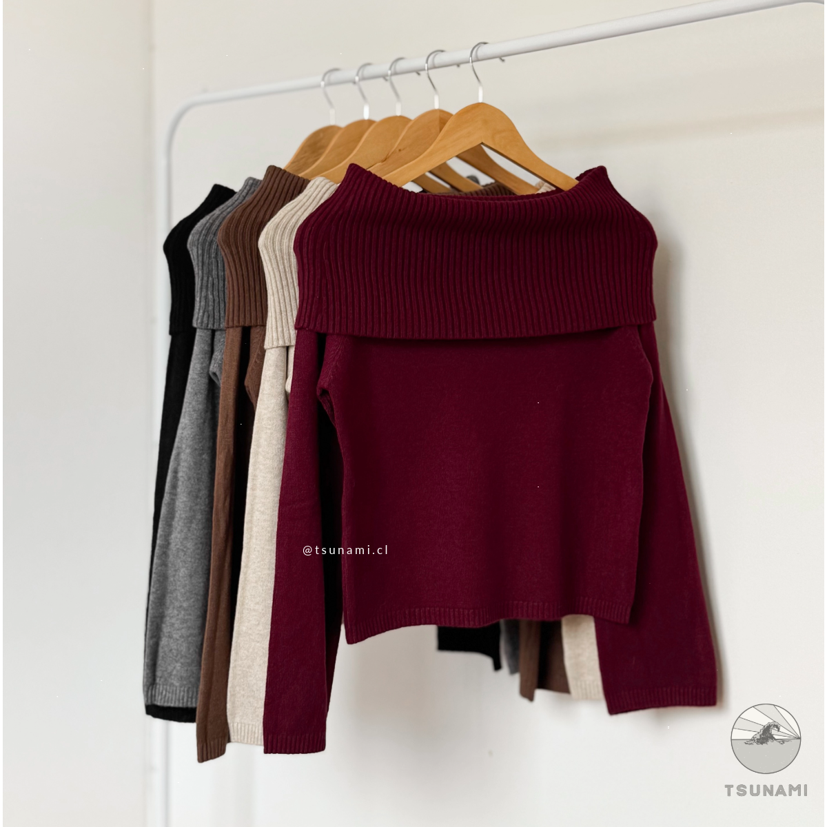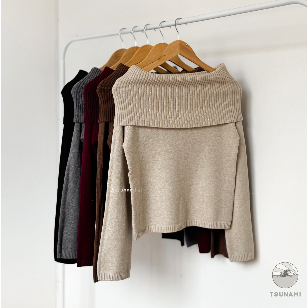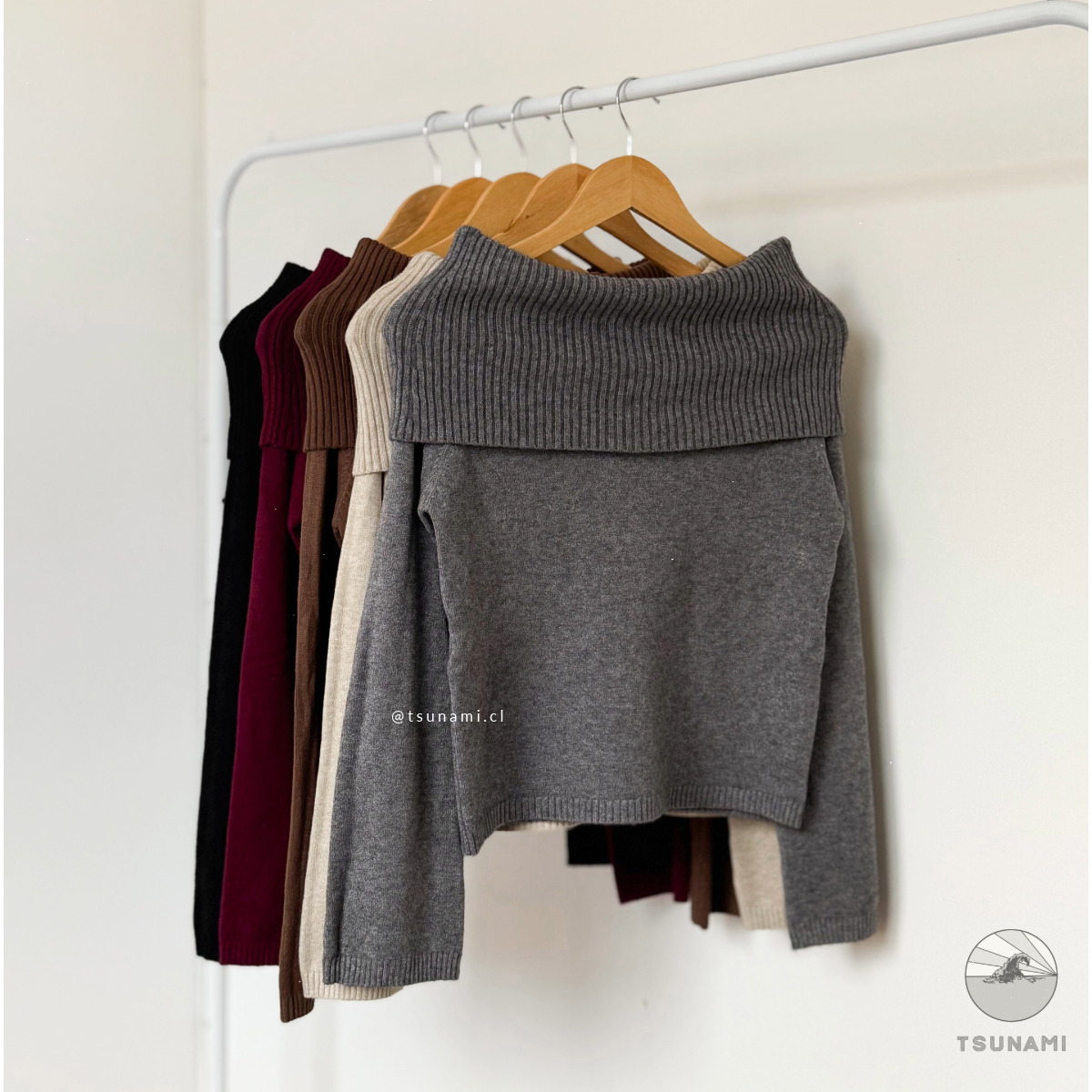 Este suéter es un dos en uno que vas a amar ♥ Su cuello ancho se puede usar doblado tipo cuello alto para un resultado abrigadito y clásico, o estirado dejando los hombros descubiertos para darle ese toque tan femenino que te hará ver preciosa!!