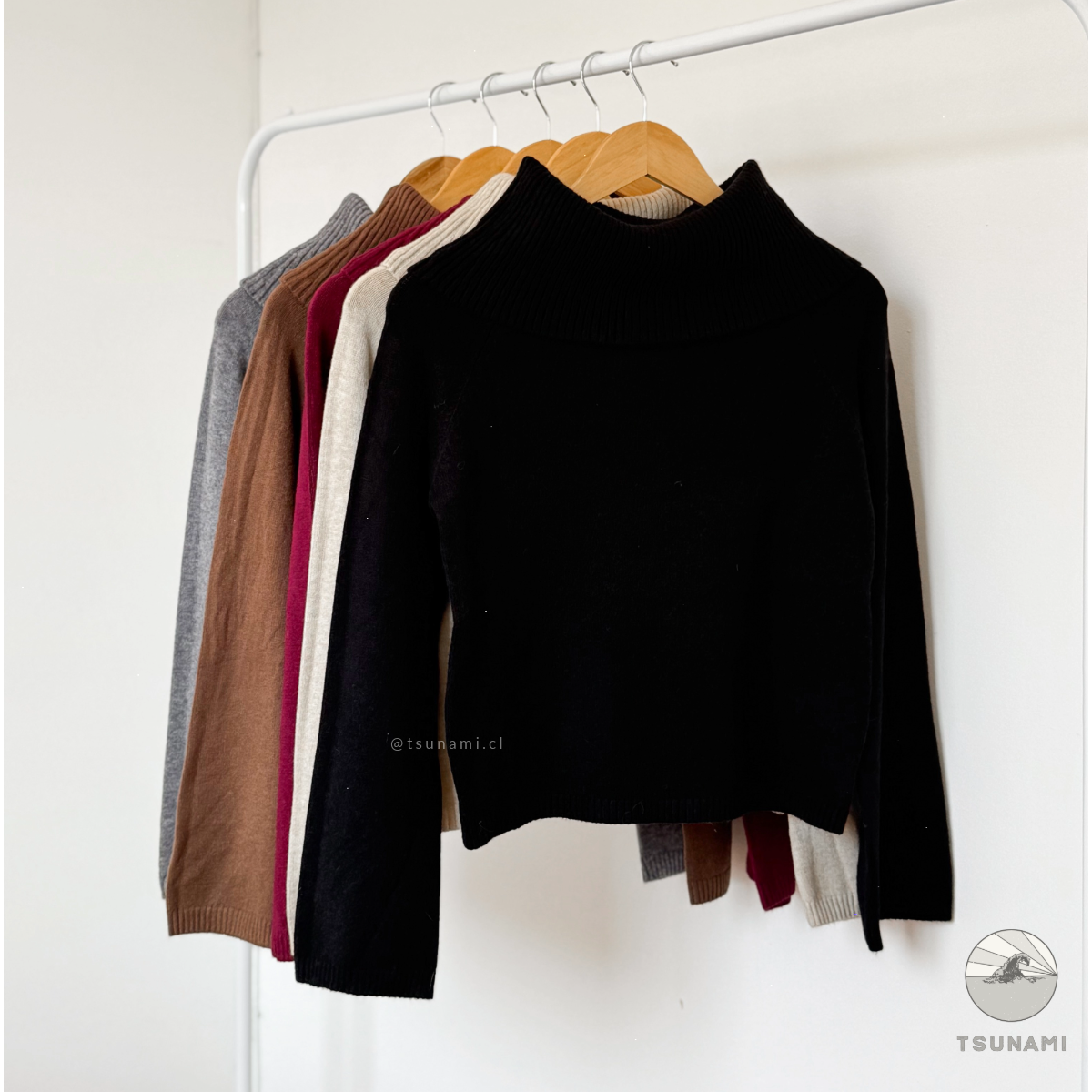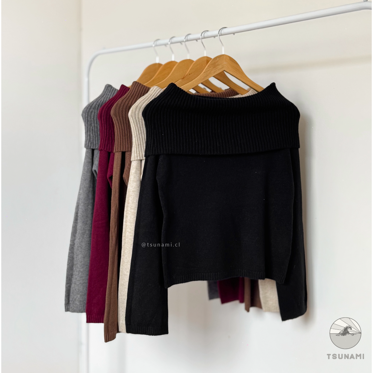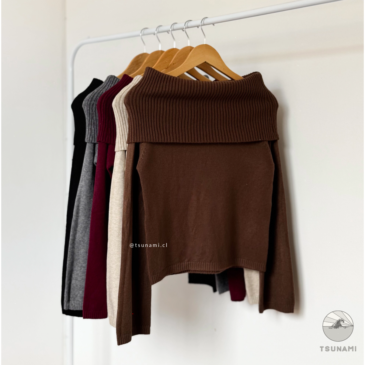 Este suéter es un dos en uno que vas a amar ♥ Su cuello ancho se puede usar doblado tipo cuello alto para un resultado abrigadito y clásico, o estirado dejando los hombros descubiertos para darle ese toque tan femenino que te hará ver preciosa!!