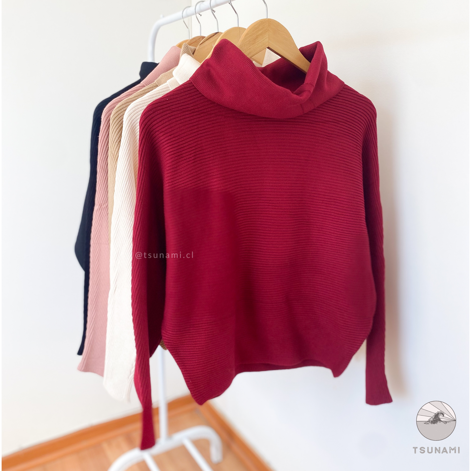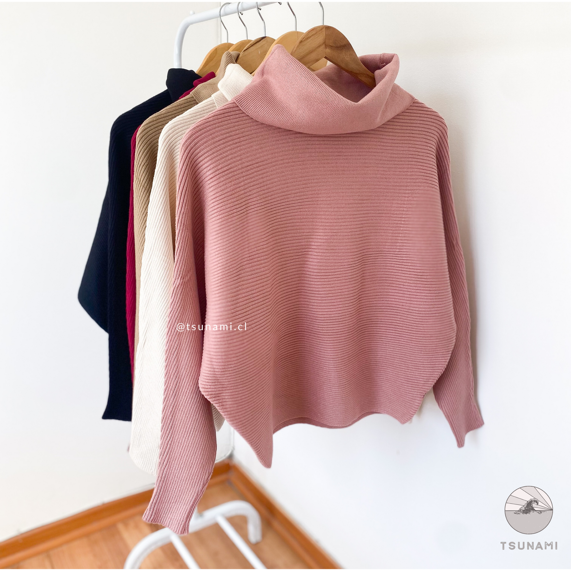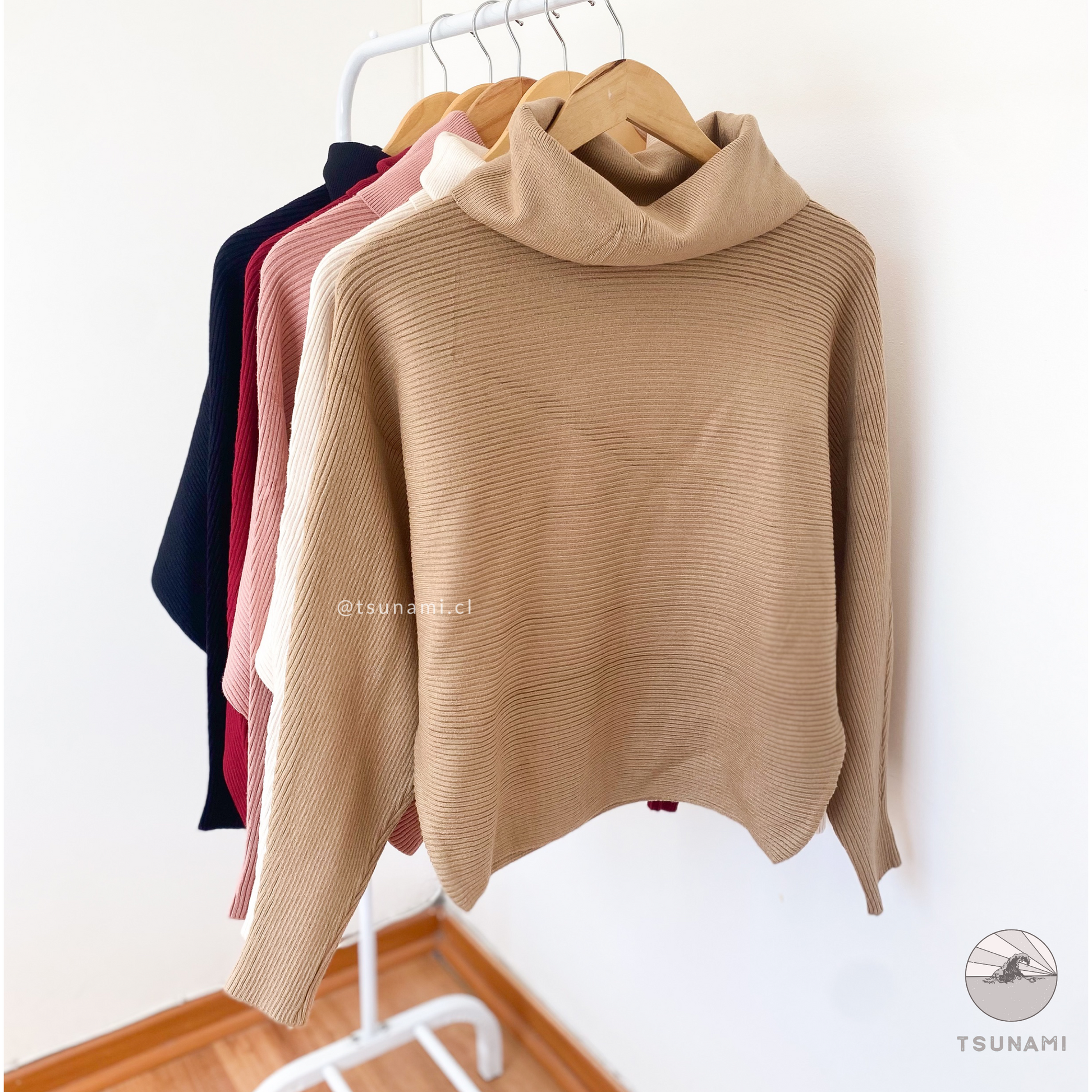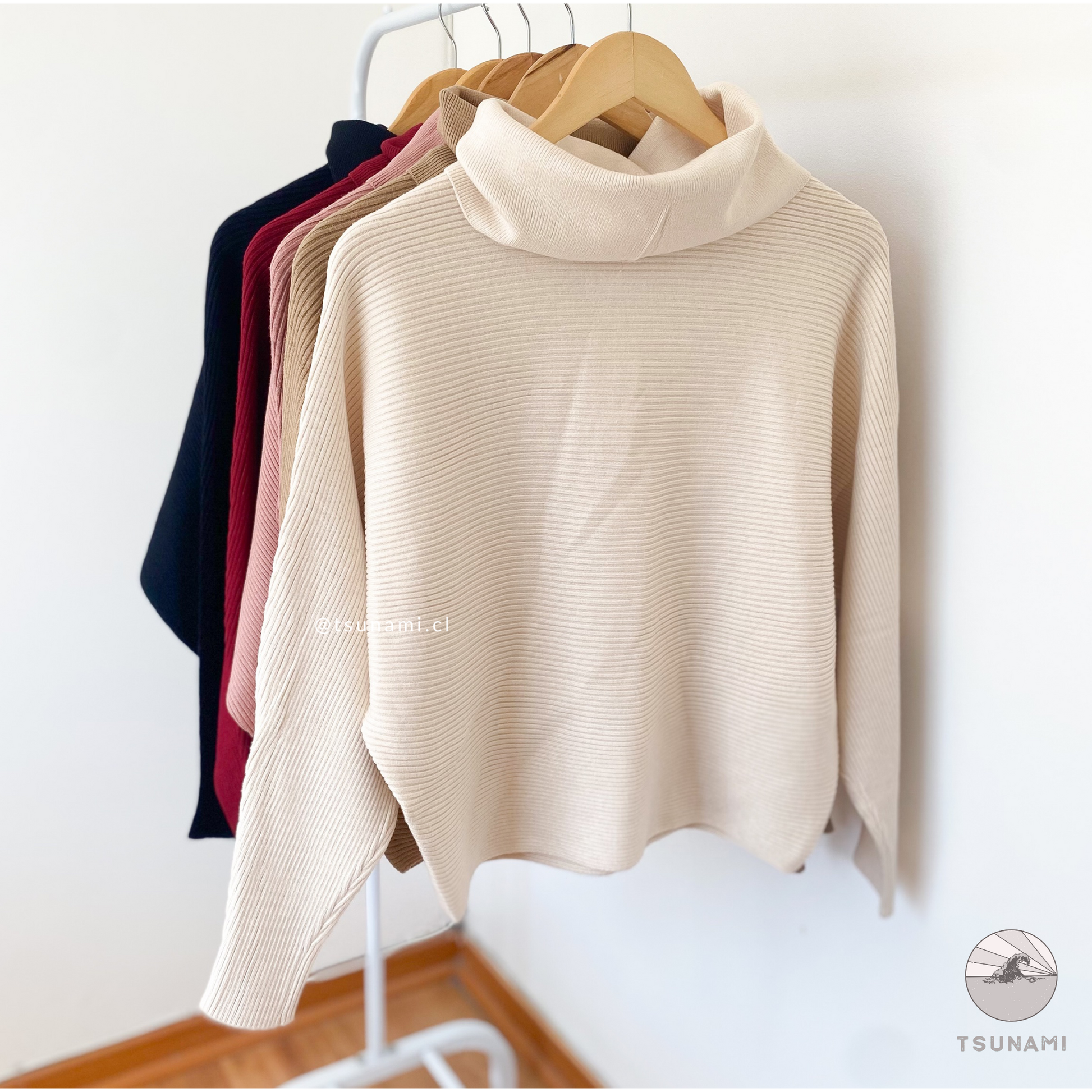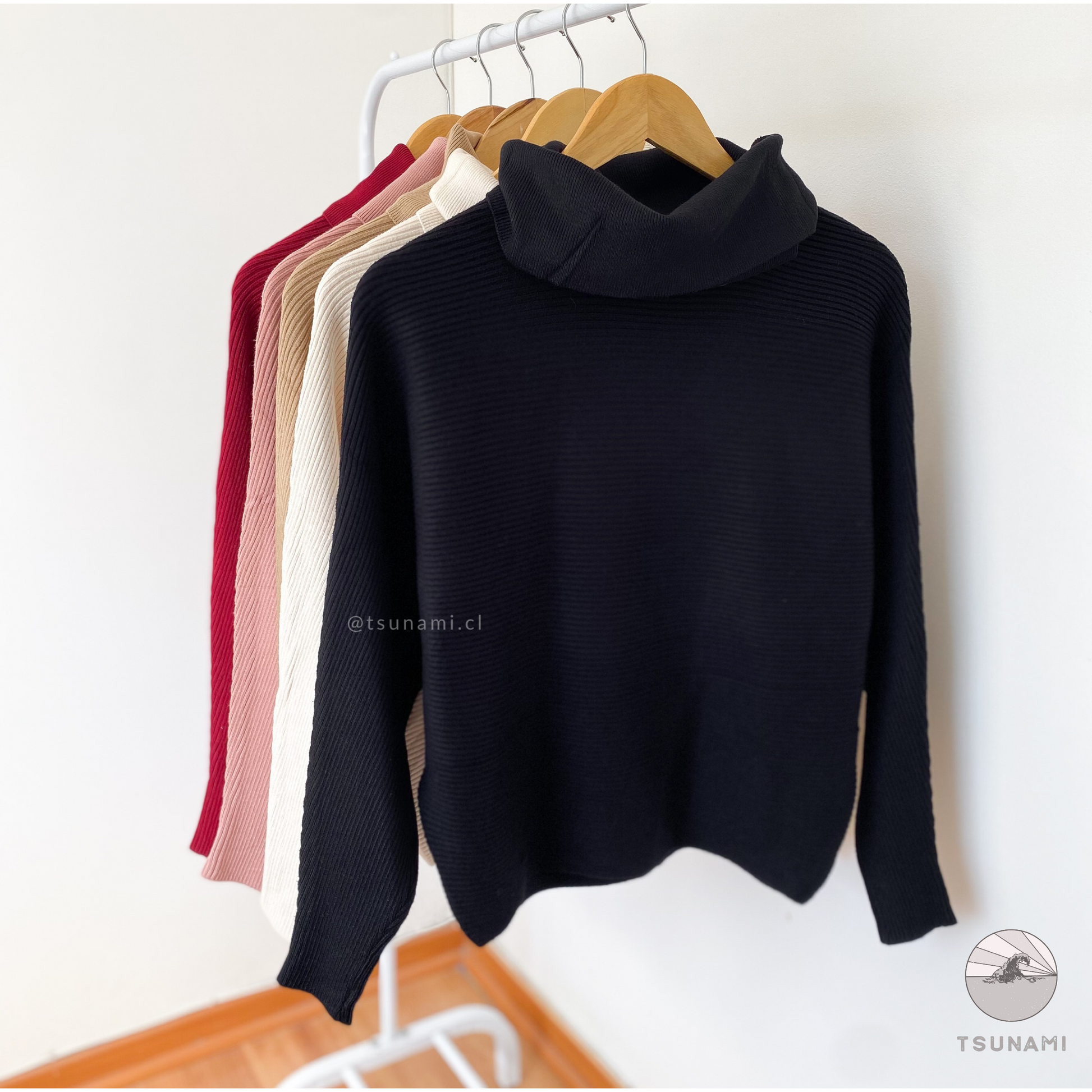 Con diseño en líneas horizontales, ultra suavecito y con una caída única. Lo más cómodo de este suéter es el cuello alto pero suelto que no aprieta nada!! En colores básicos super combinables.