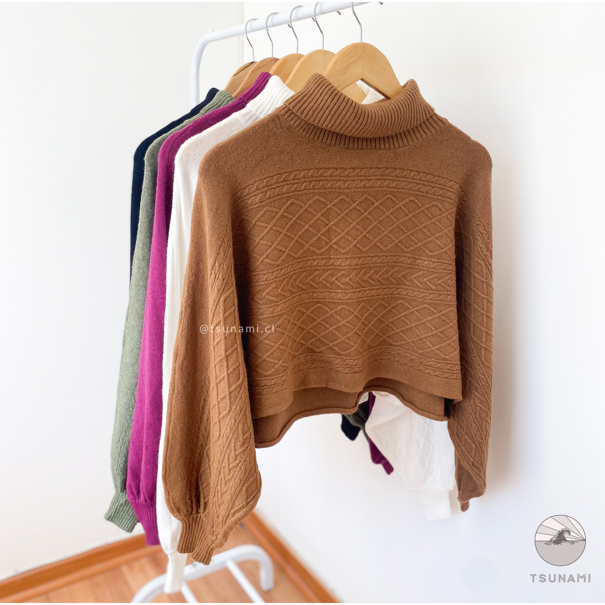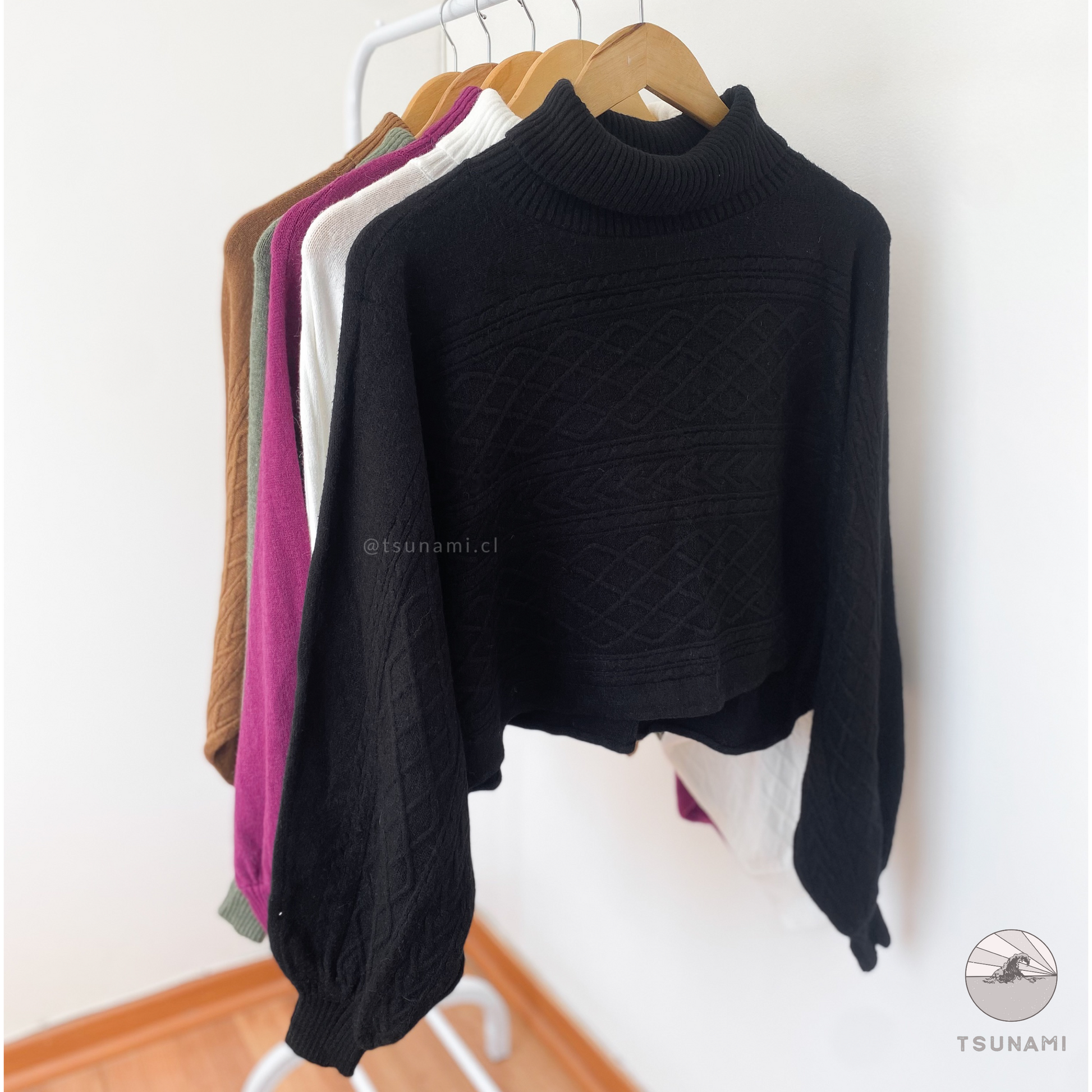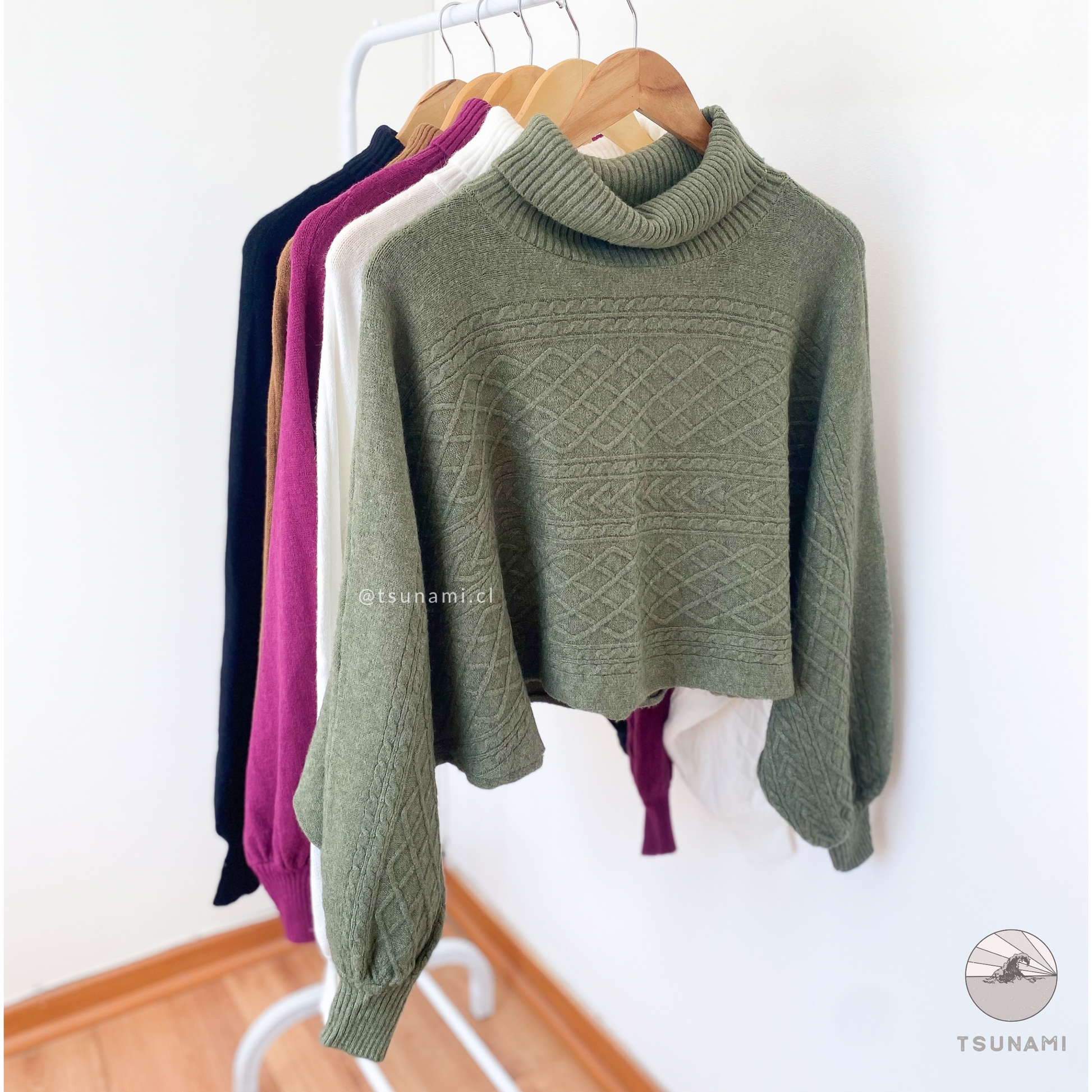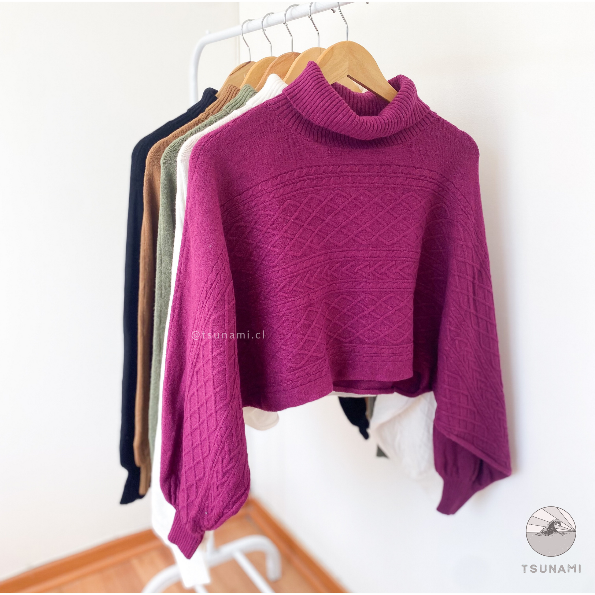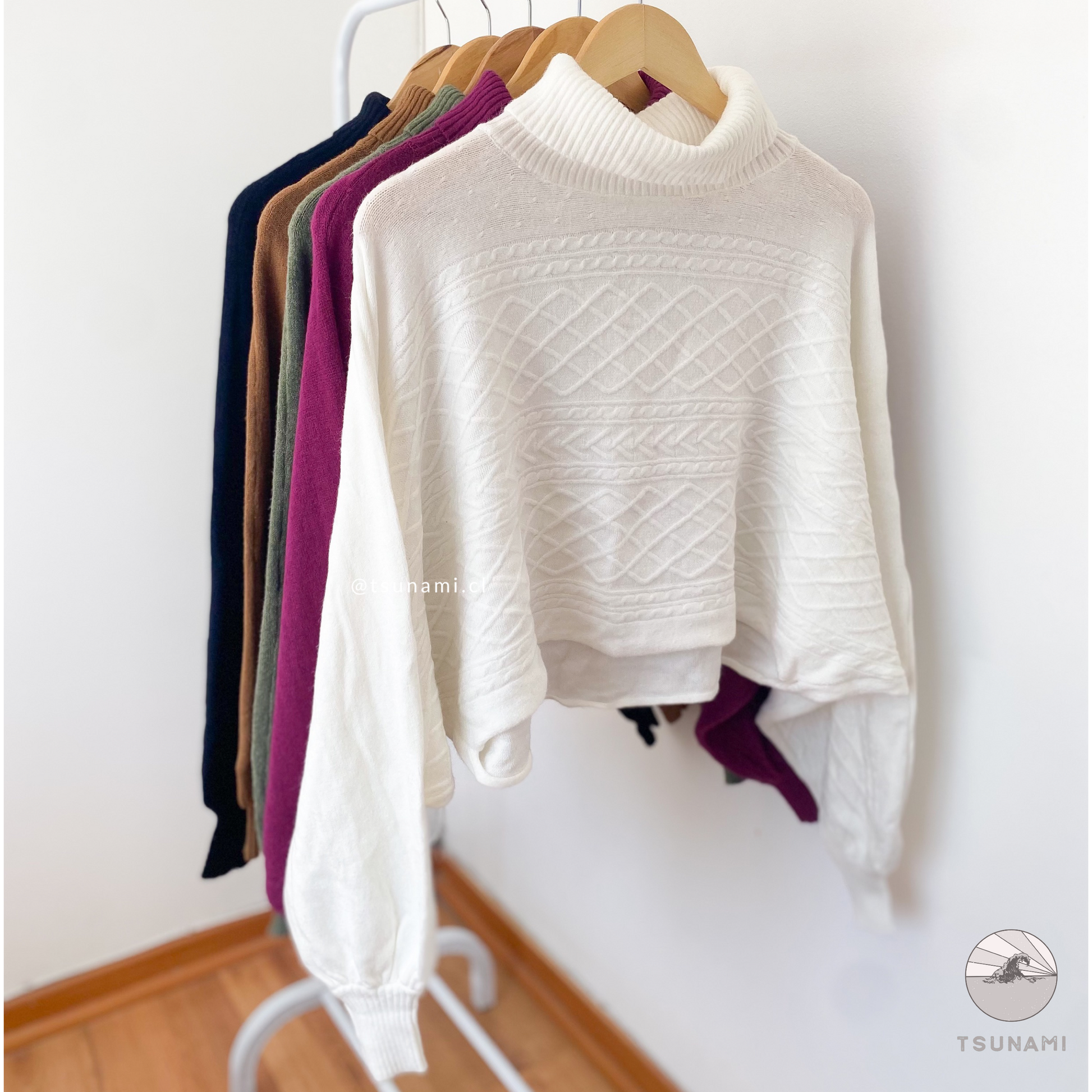 Este suéter corto se caracteriza por lo suavecito y liviano que es, además de muy calientito. Posee manga murciélago, diseño de rombos, manga aglobada y un cuello tortuga súper cómodo que no aprieta nada.