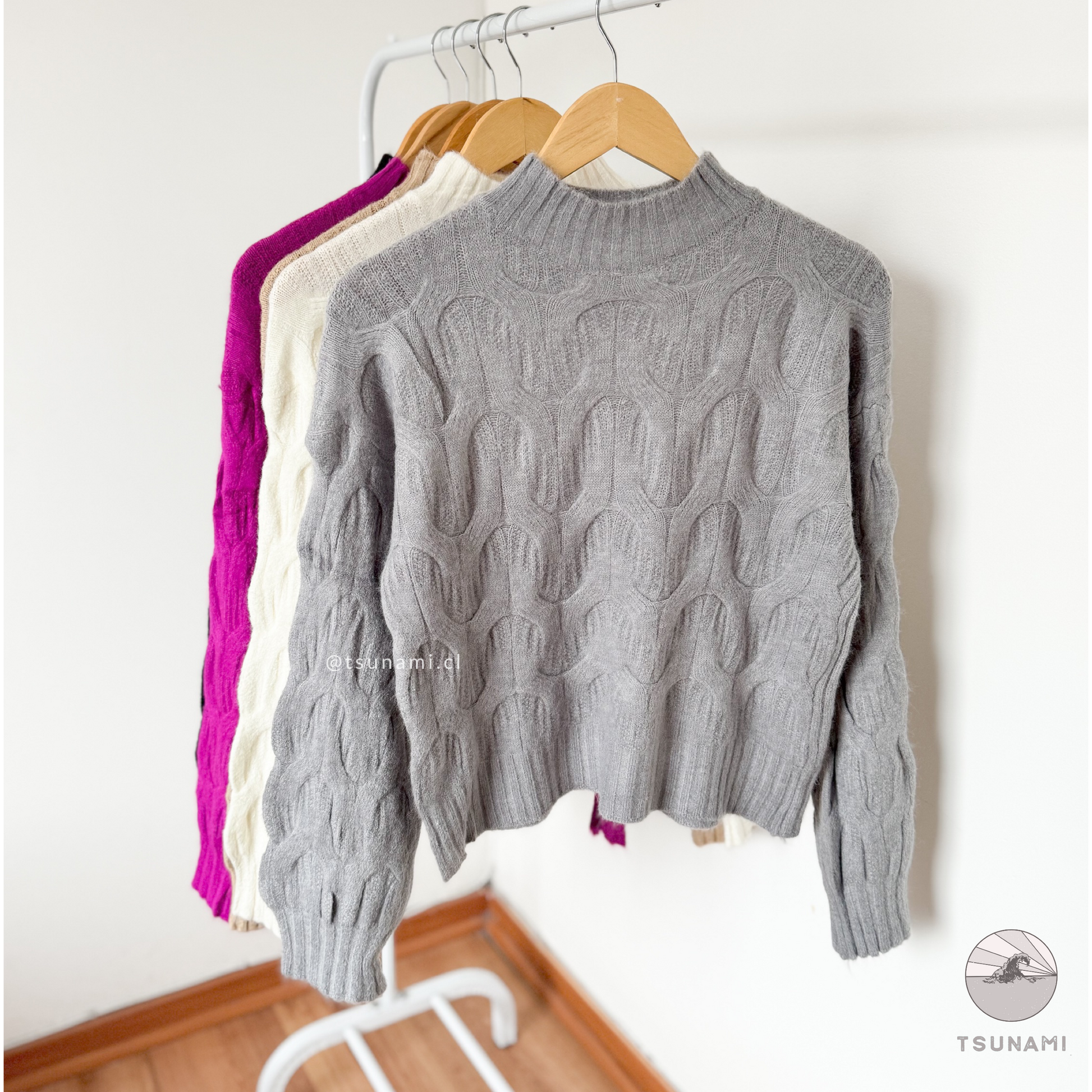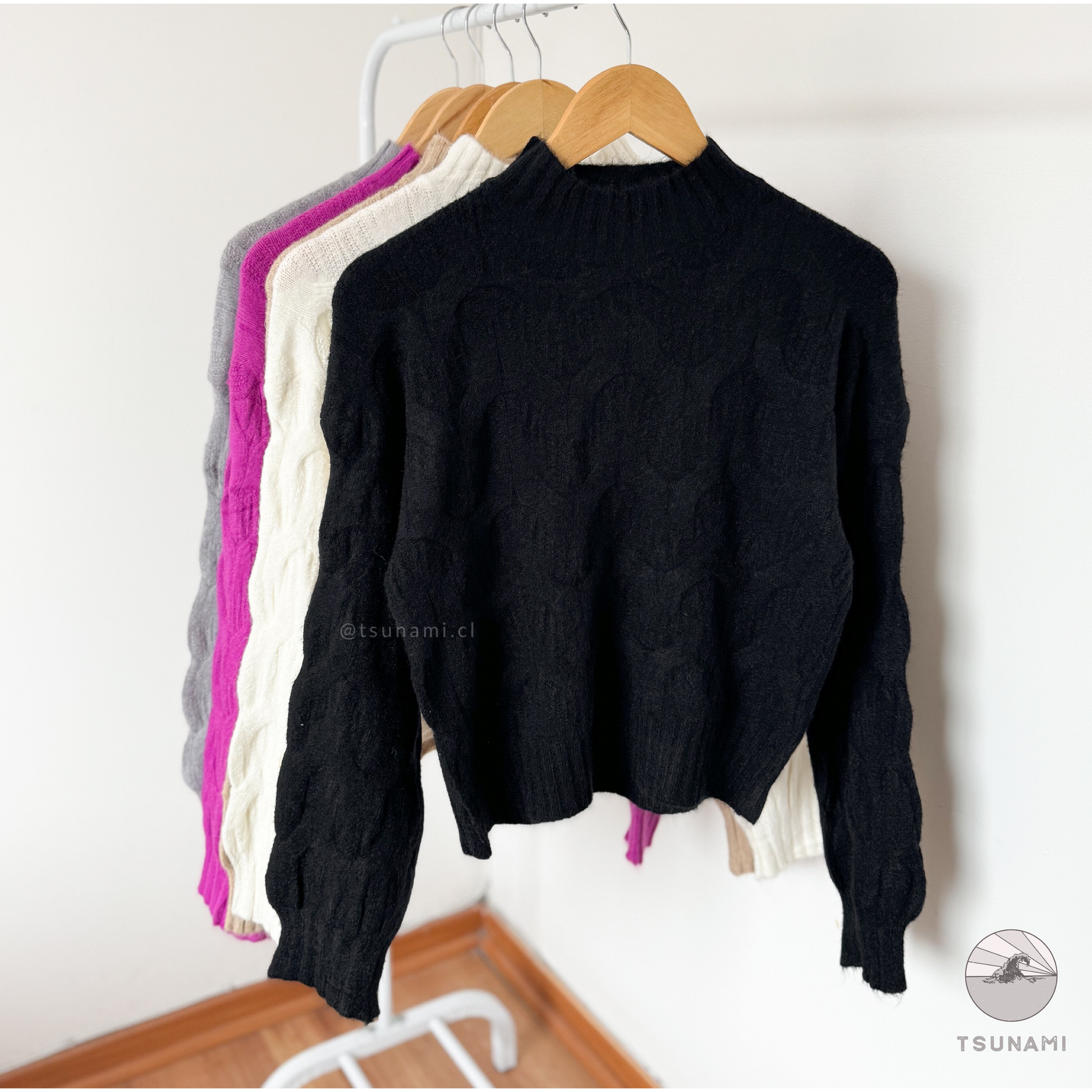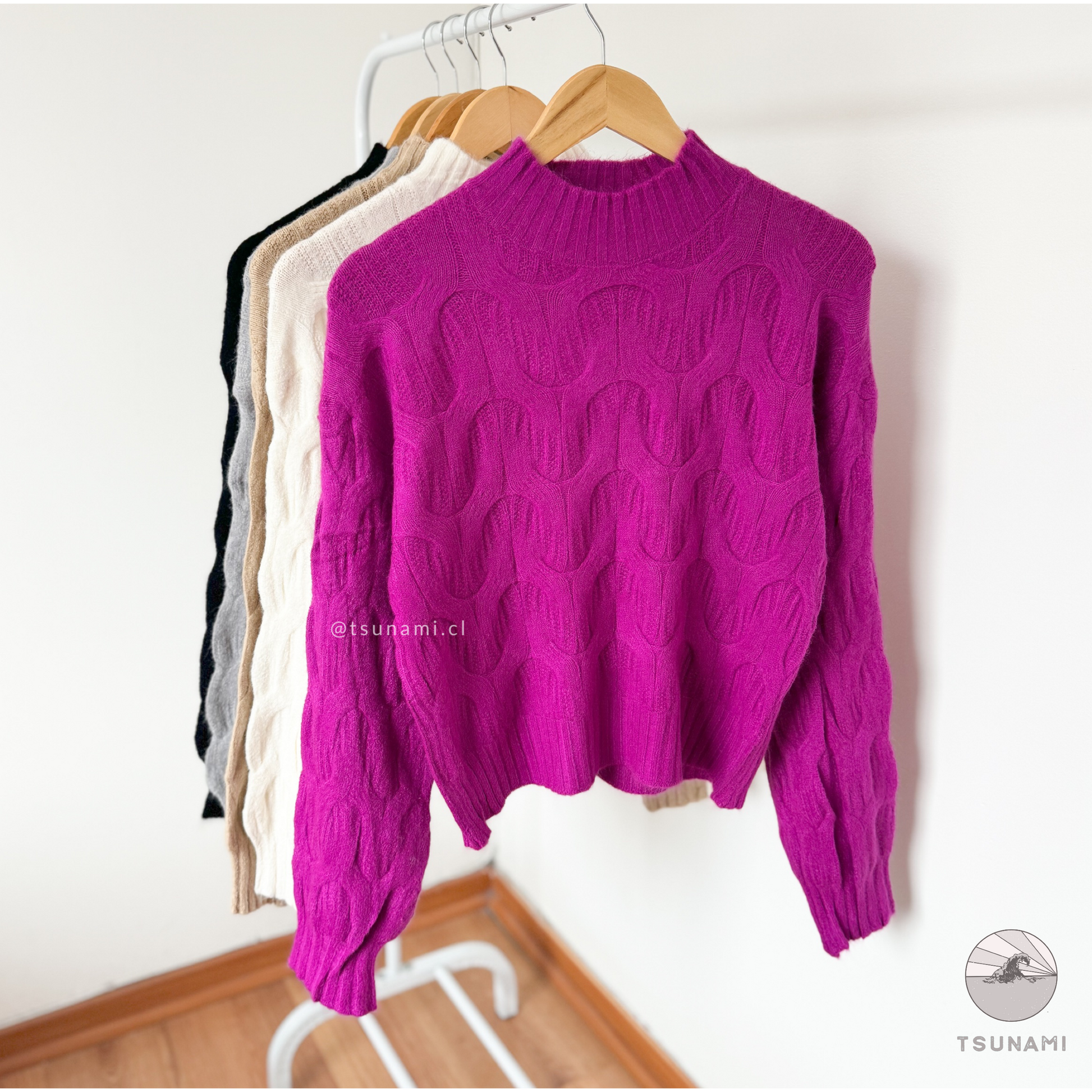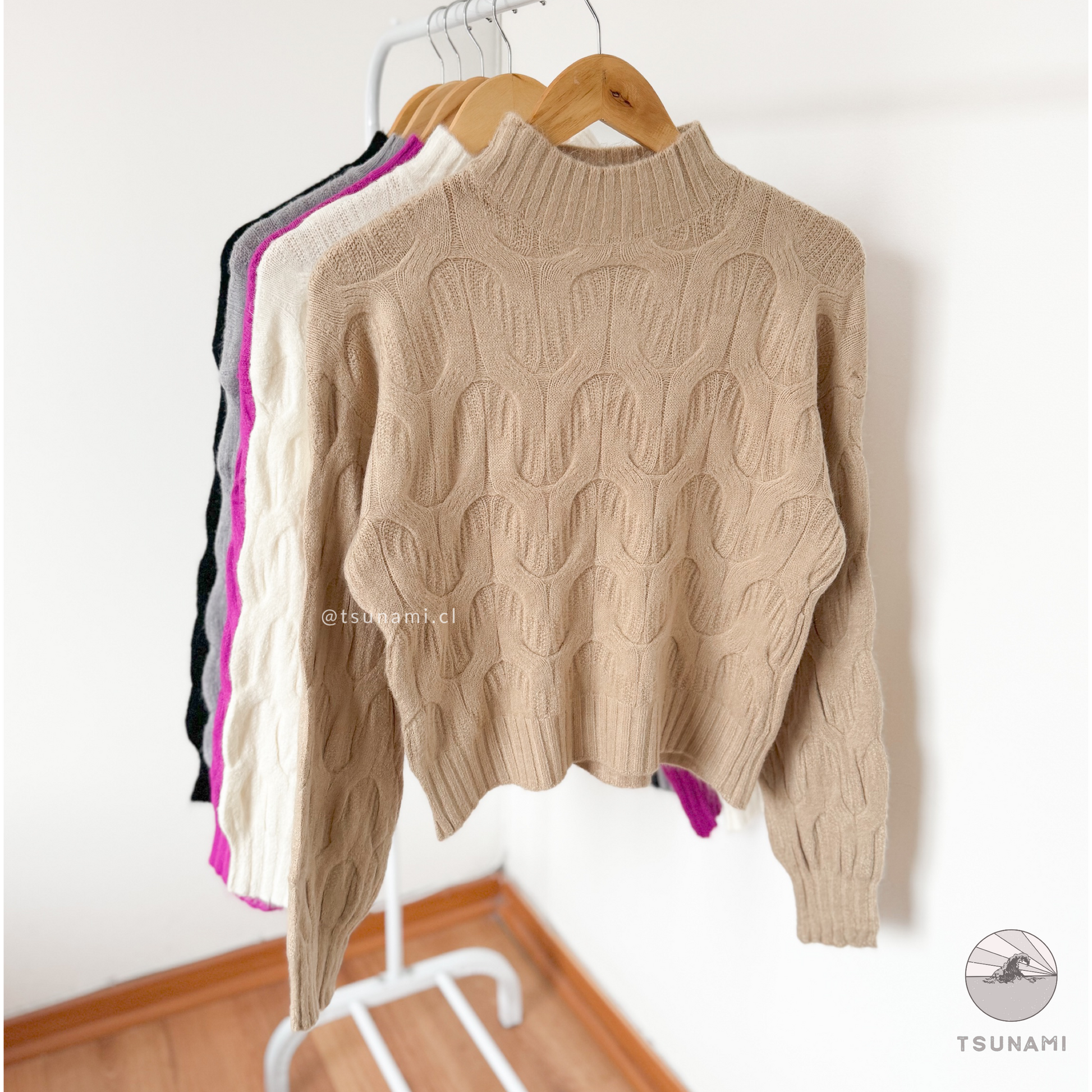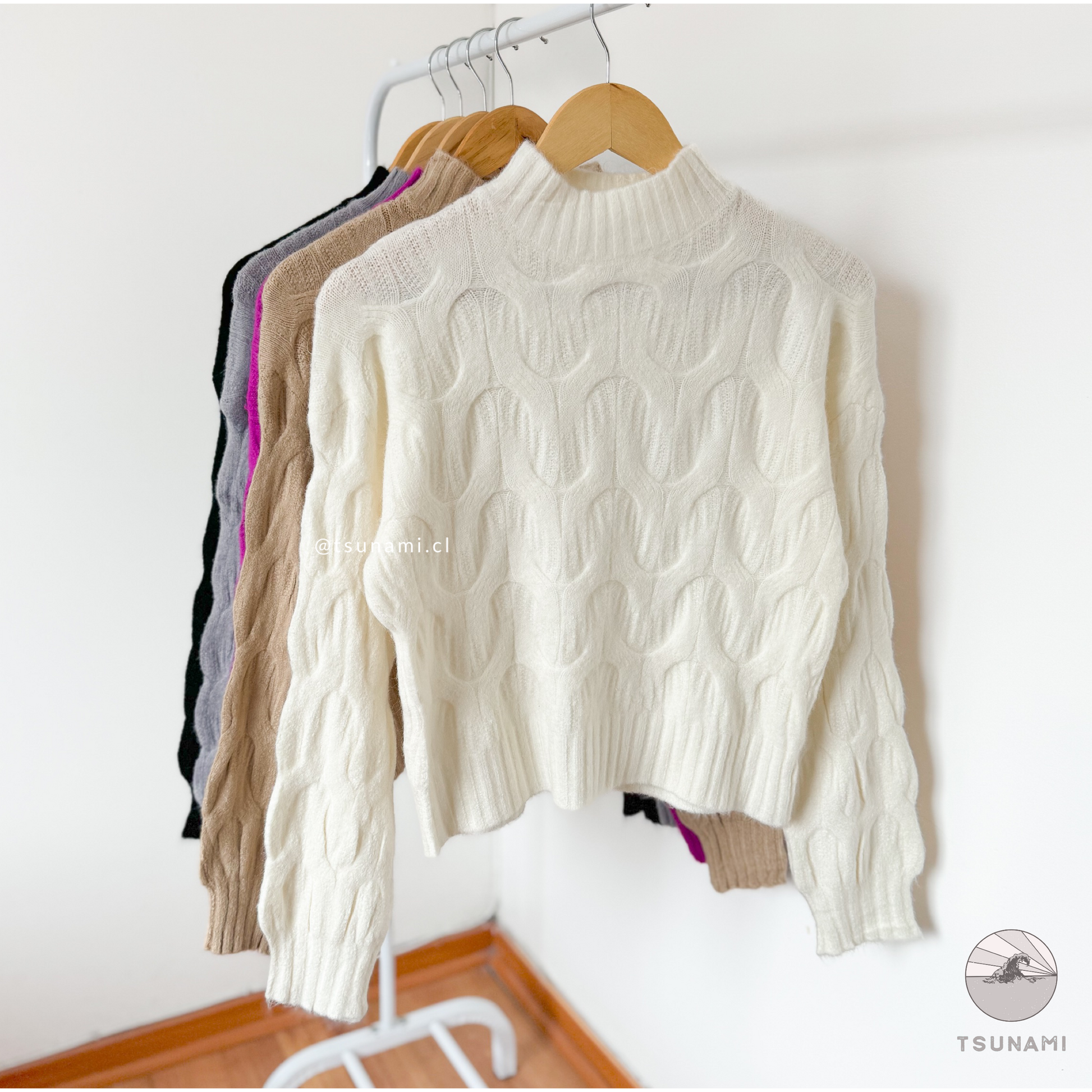 Suéter holgado con diseño de curvas, el cuello medio tiene el alto perfecto para abrigarte sin apretar.