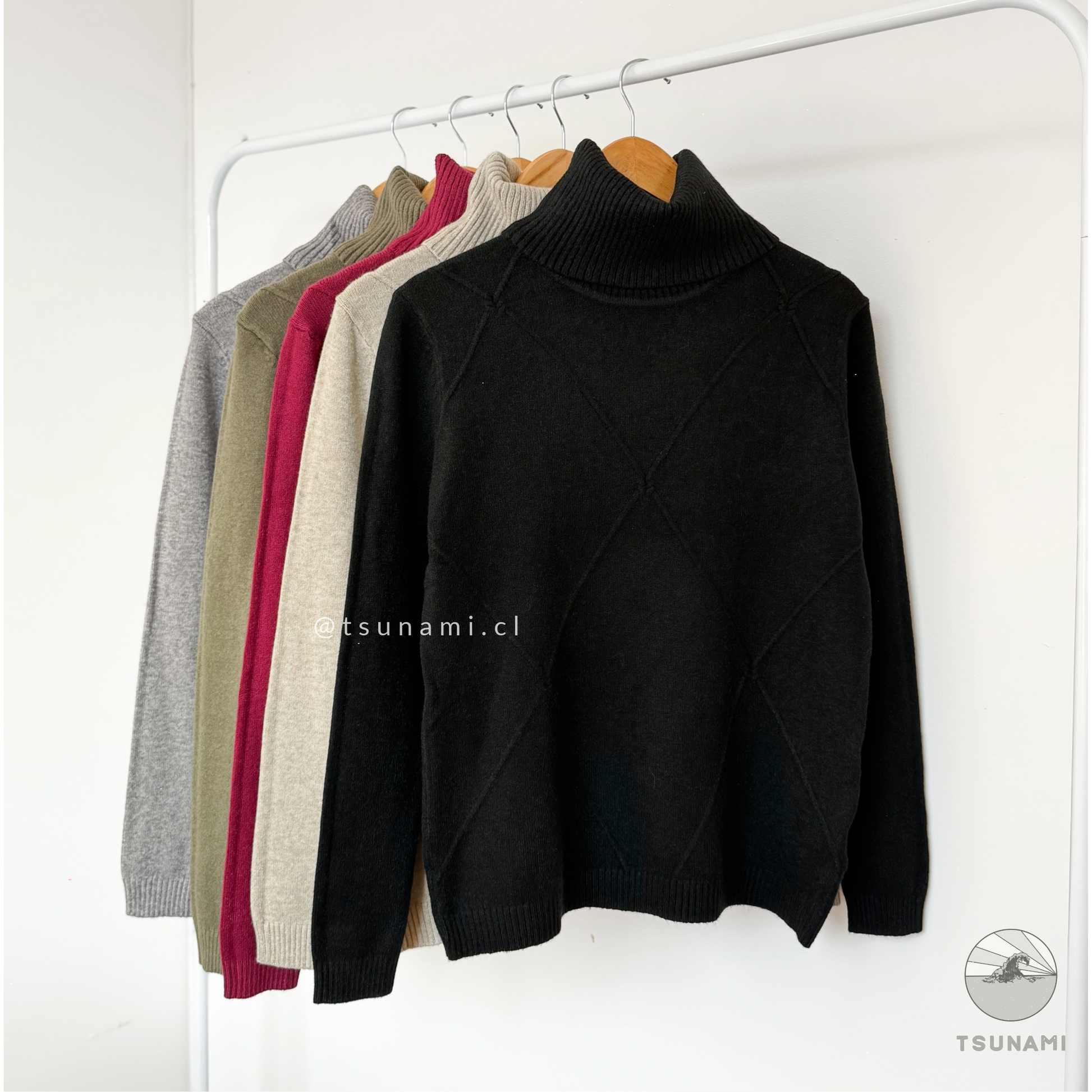 Su diseño de rombos aporta un toque clásico y femenino que nunca falla. ¿Lo mejor? Es súper versátil: úsalo con tu denim favorito, un pantalón de corte recto o incluso bajo un abrigo para esos días helados. Disponible en colores súper clásicos, atemporales y fáciles de combinar para que armes looks desde el día a día hasta uno más arreglado.