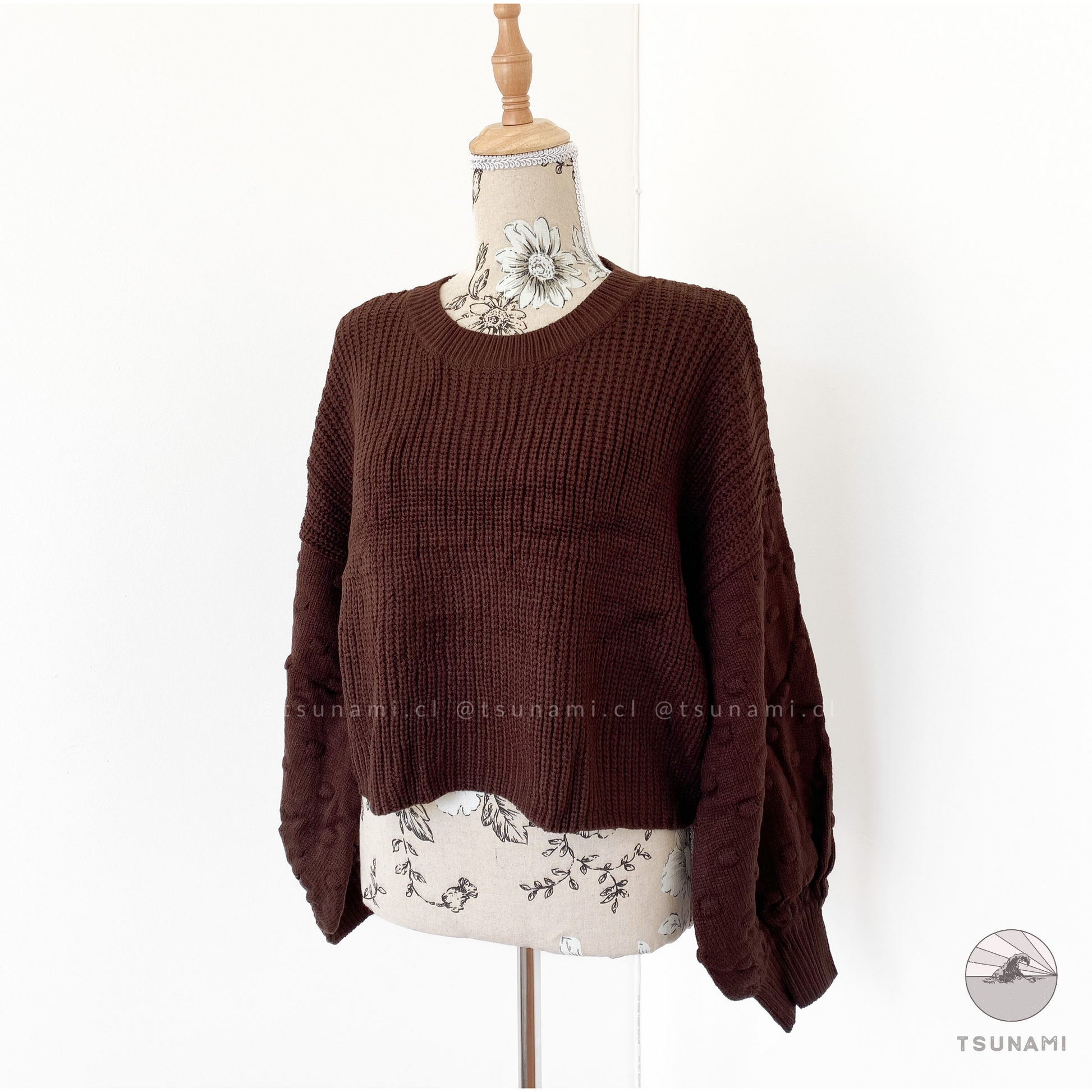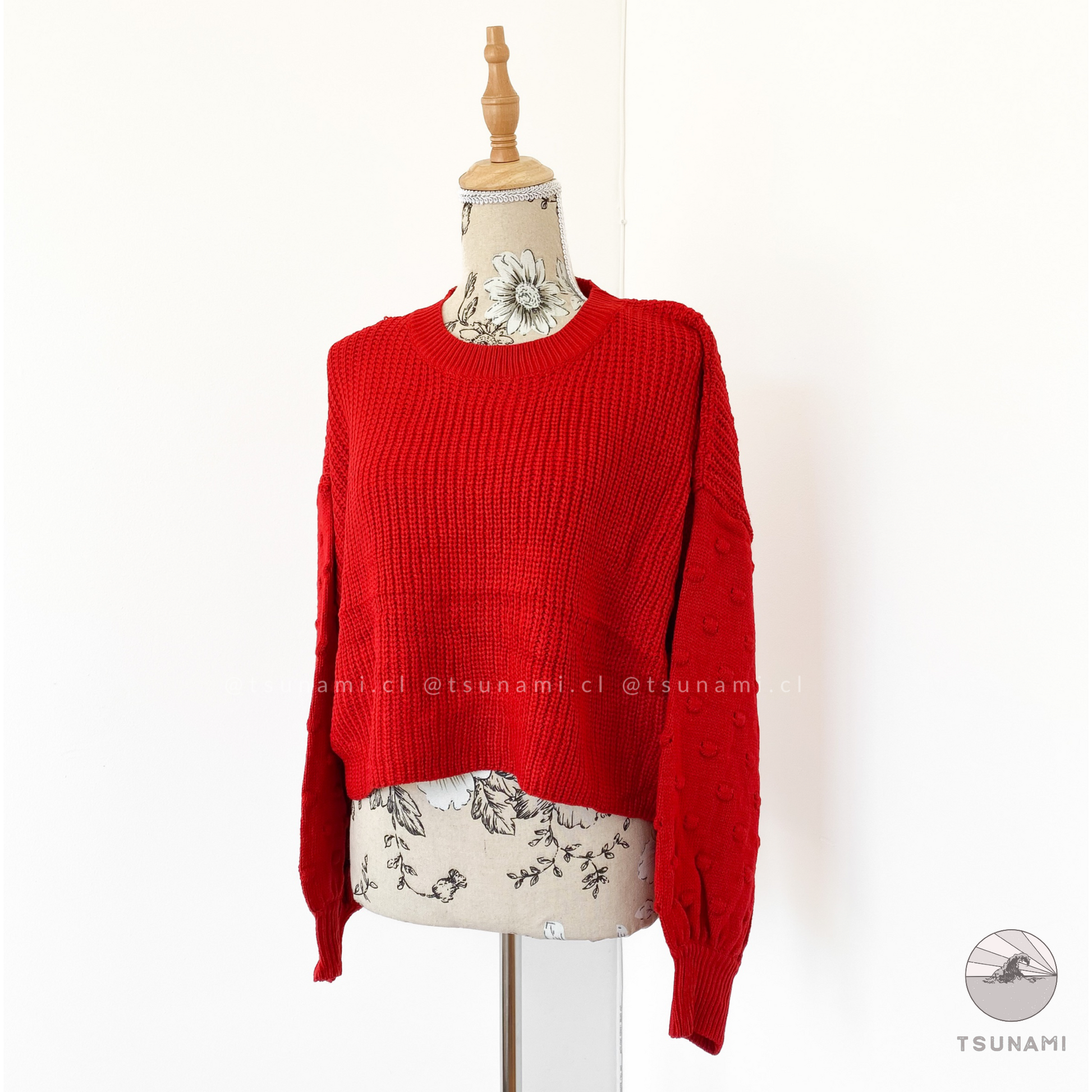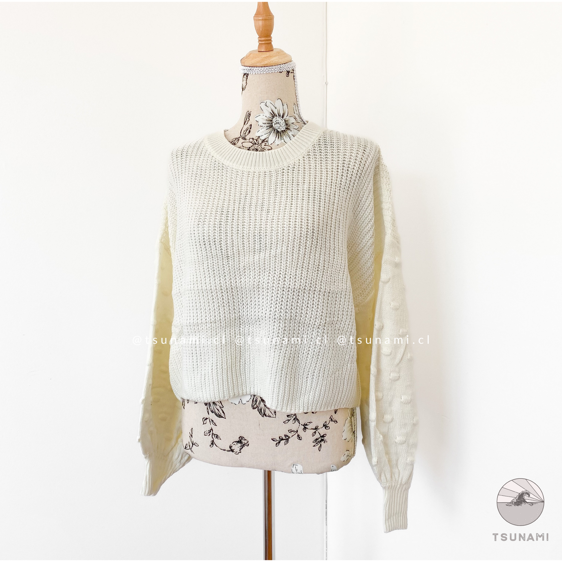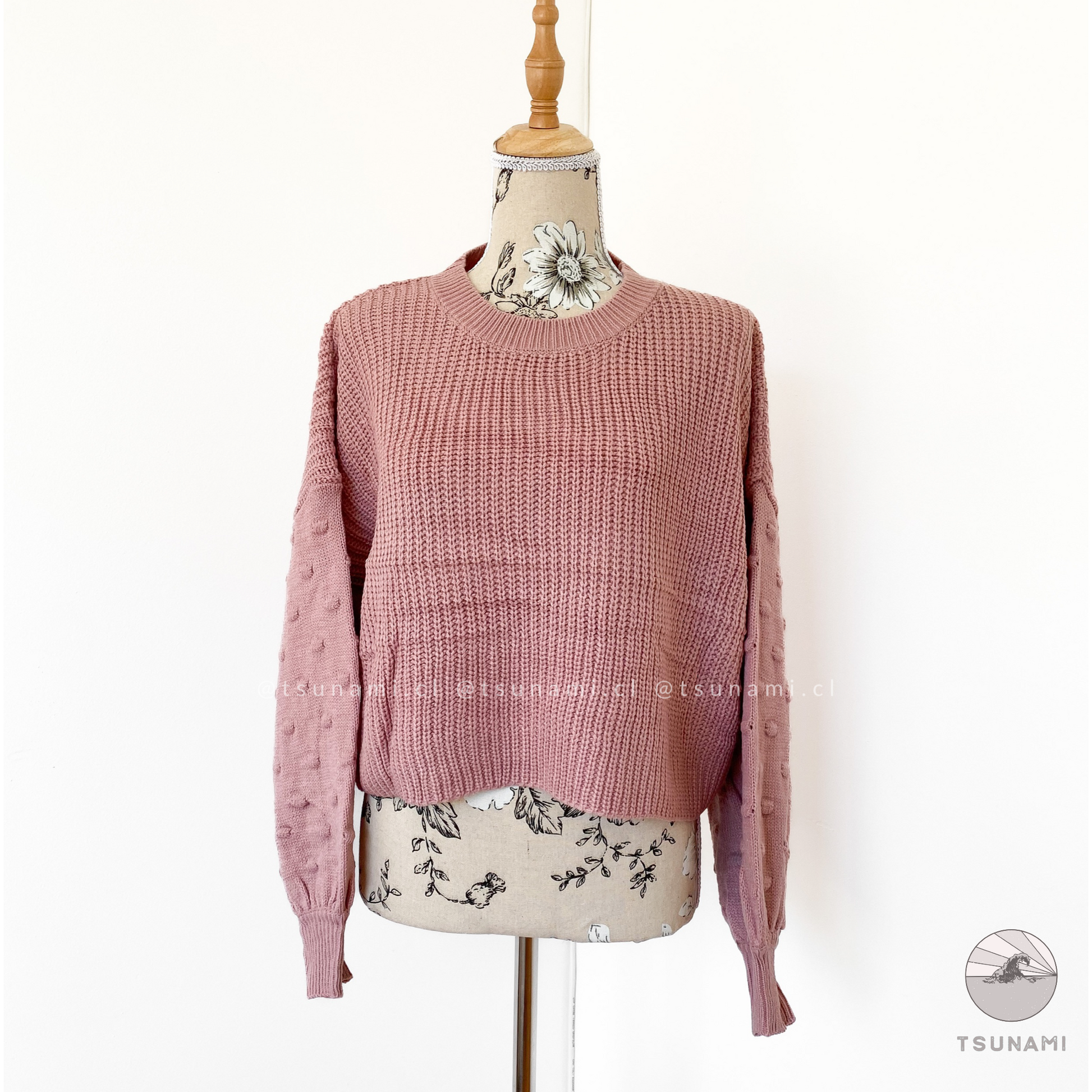 Suéter de lana acrílica, delgado, con diseño en las mangas.