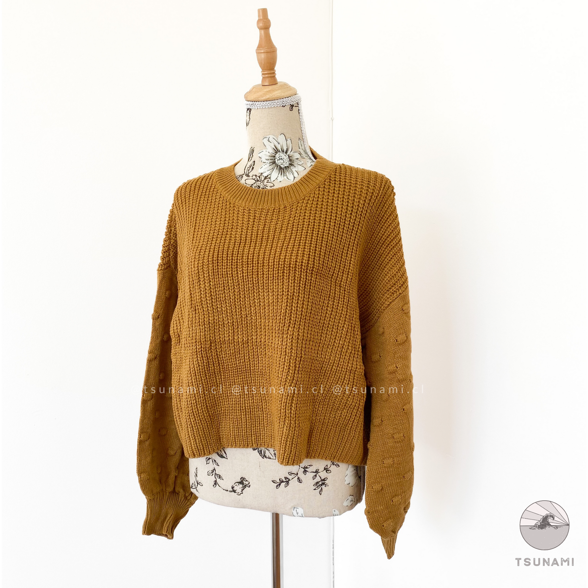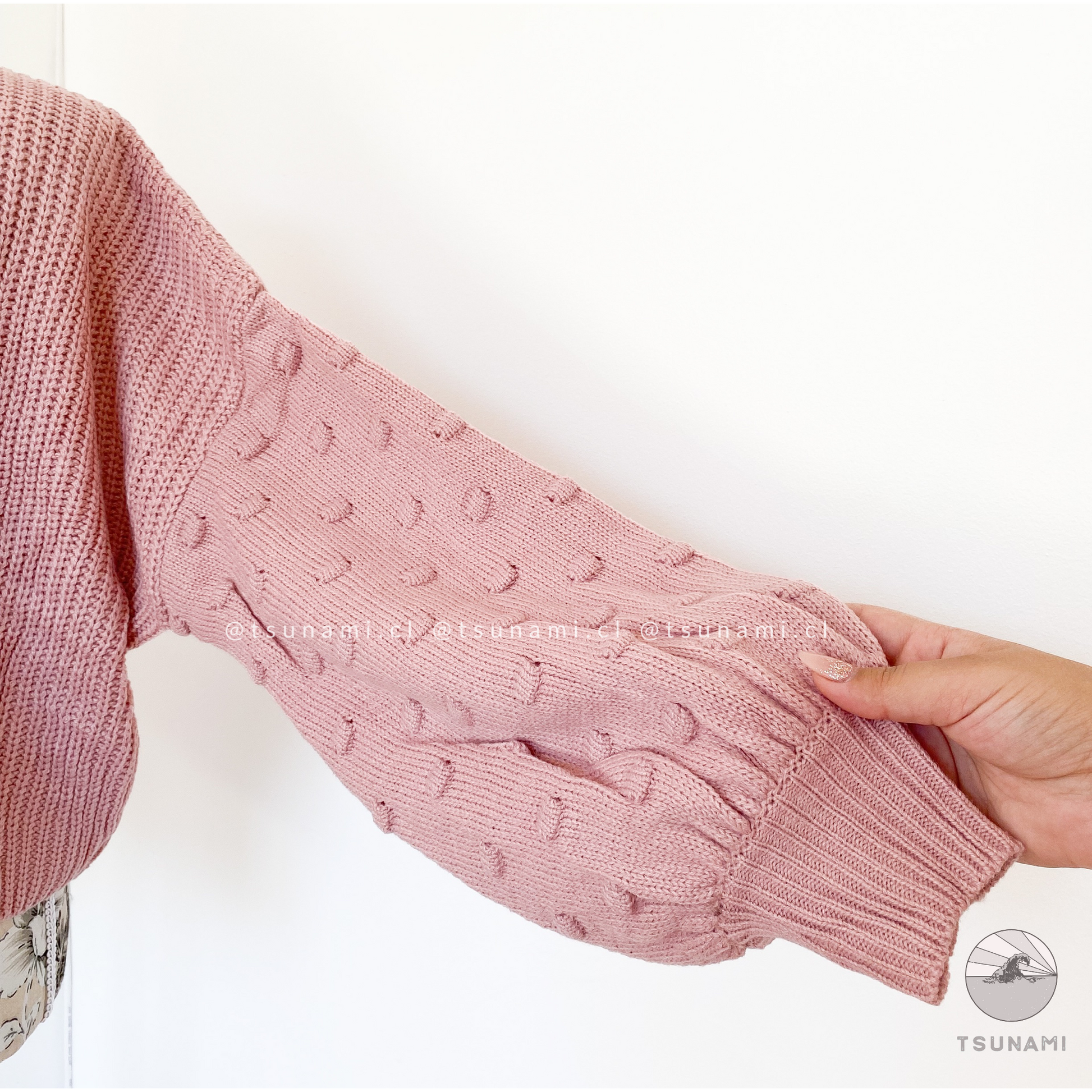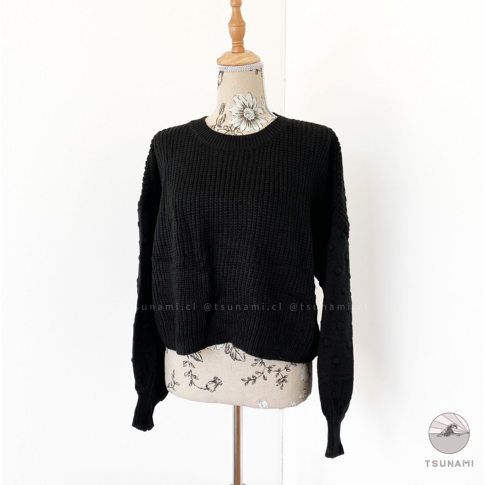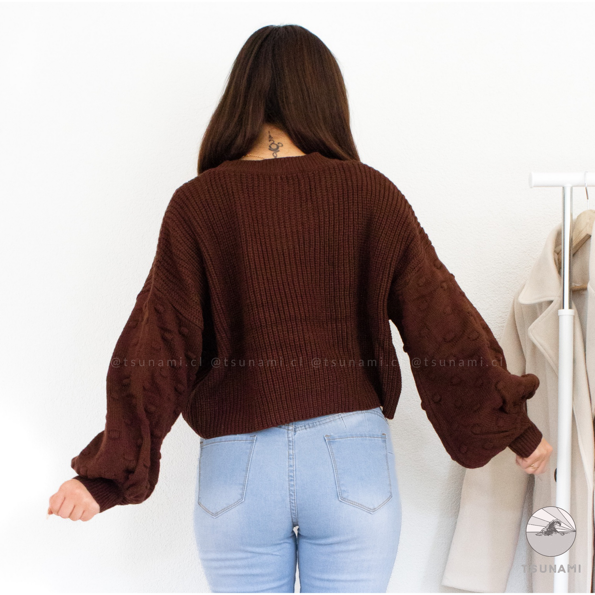 Suéter de lana acrílica, delgado, con diseño en las mangas.