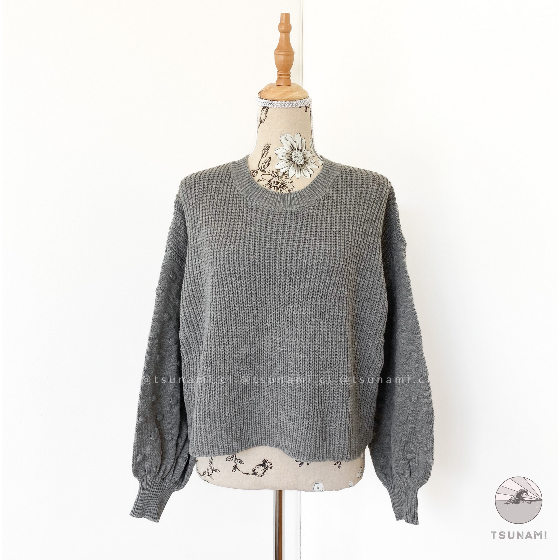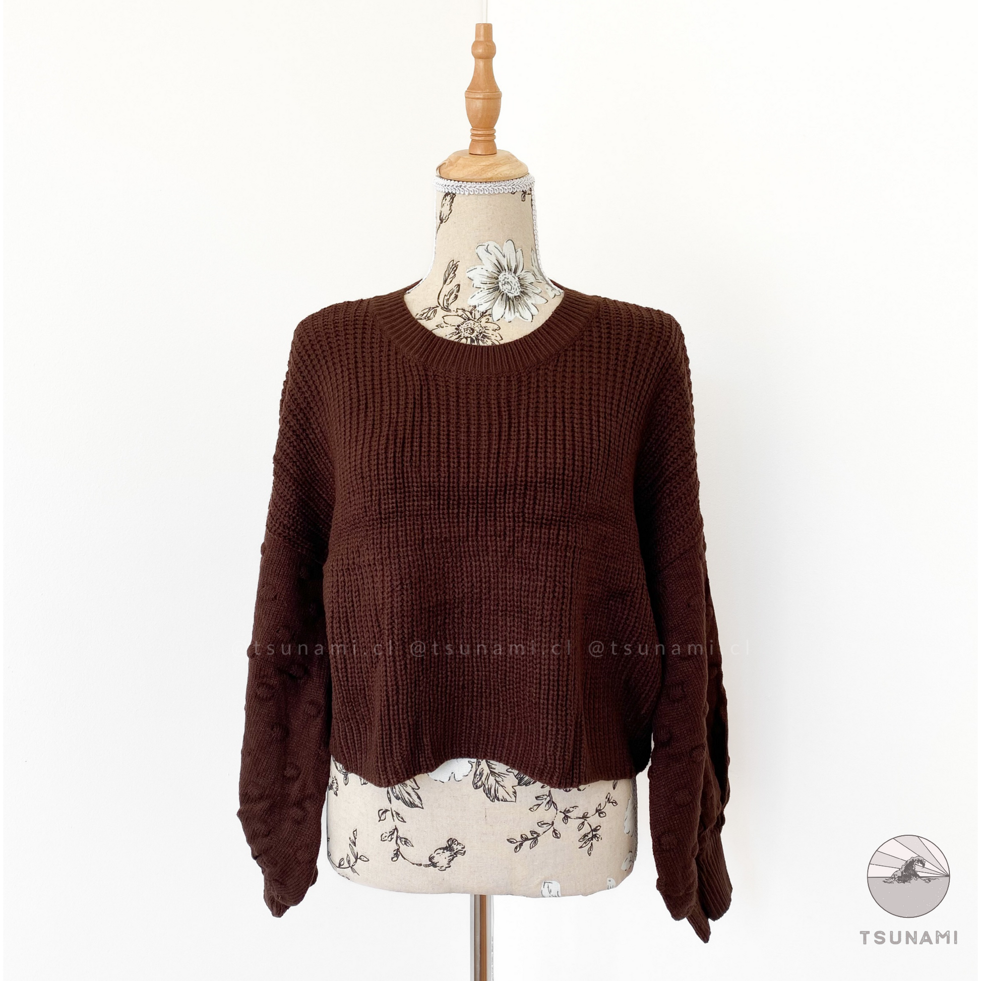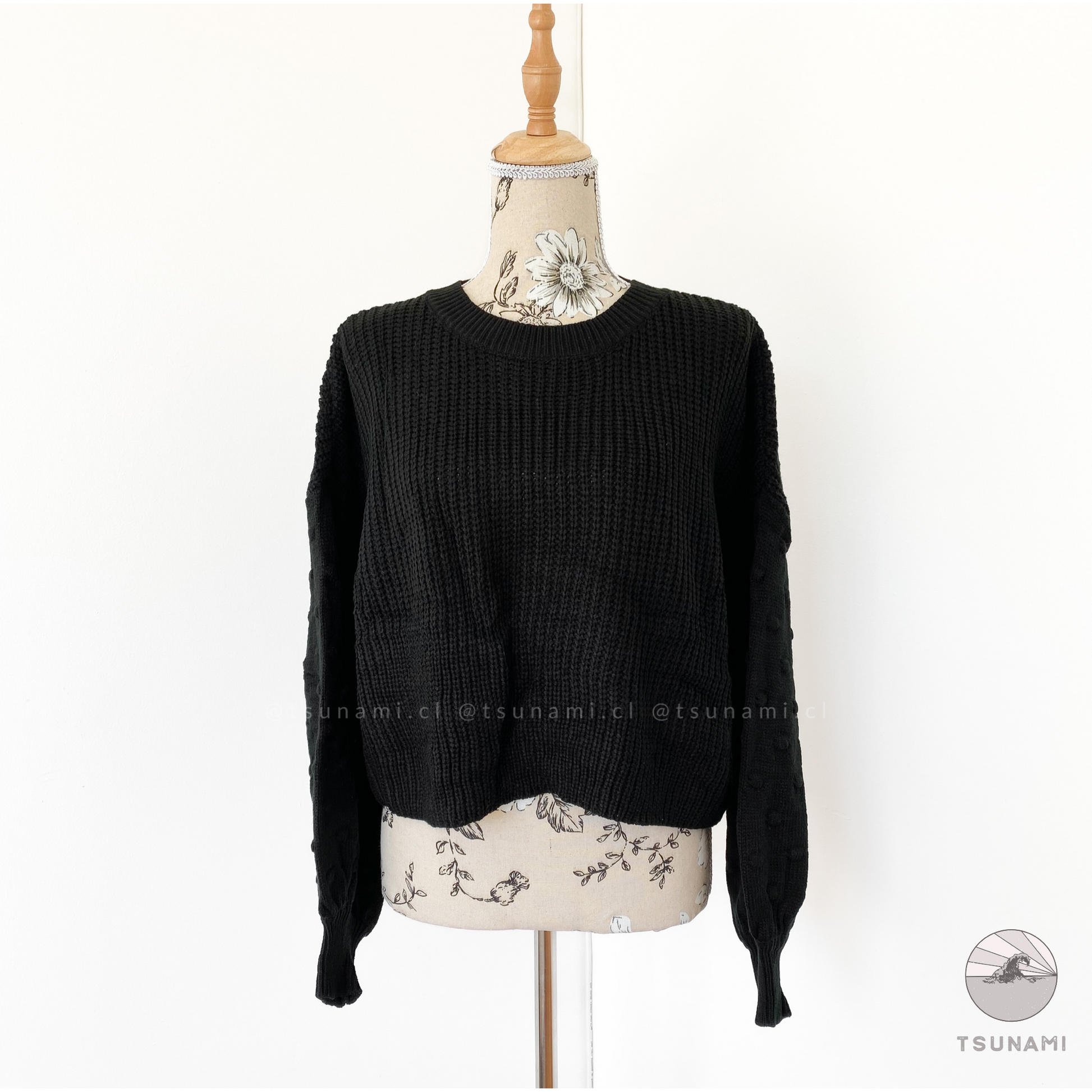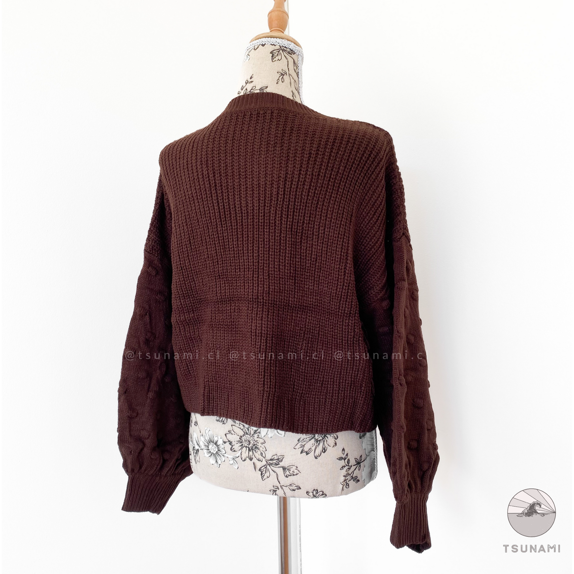 Suéter de lana acrílica, delgado, con diseño en las mangas.