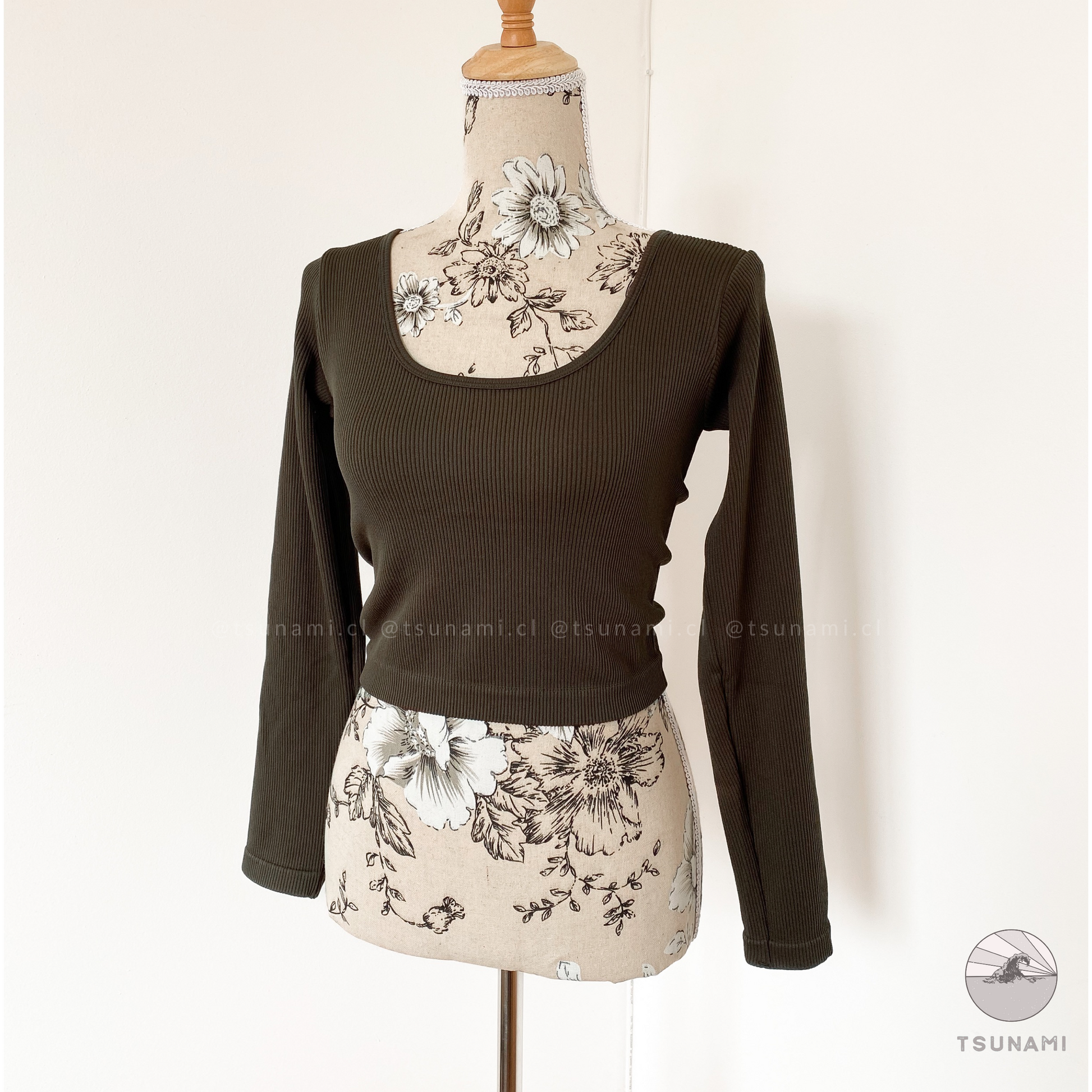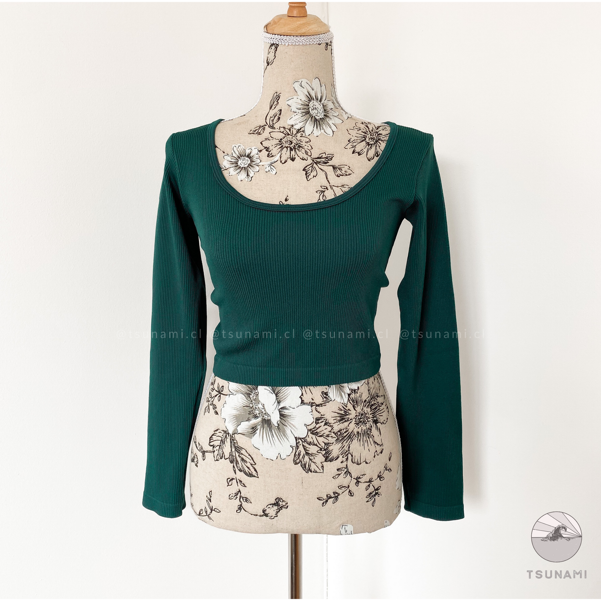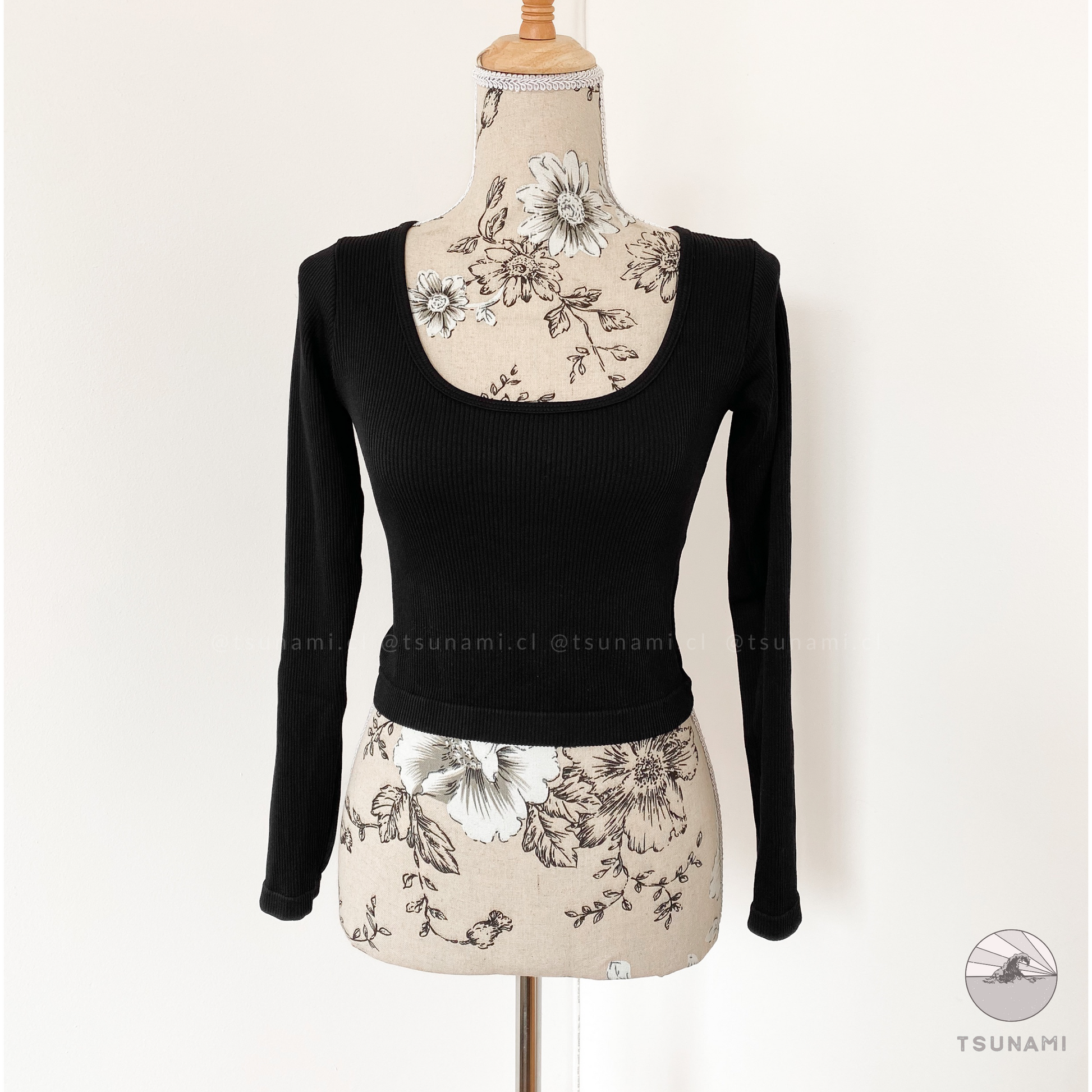Top super elasticado, tela gruesa, manga larga, muy ajustado.
