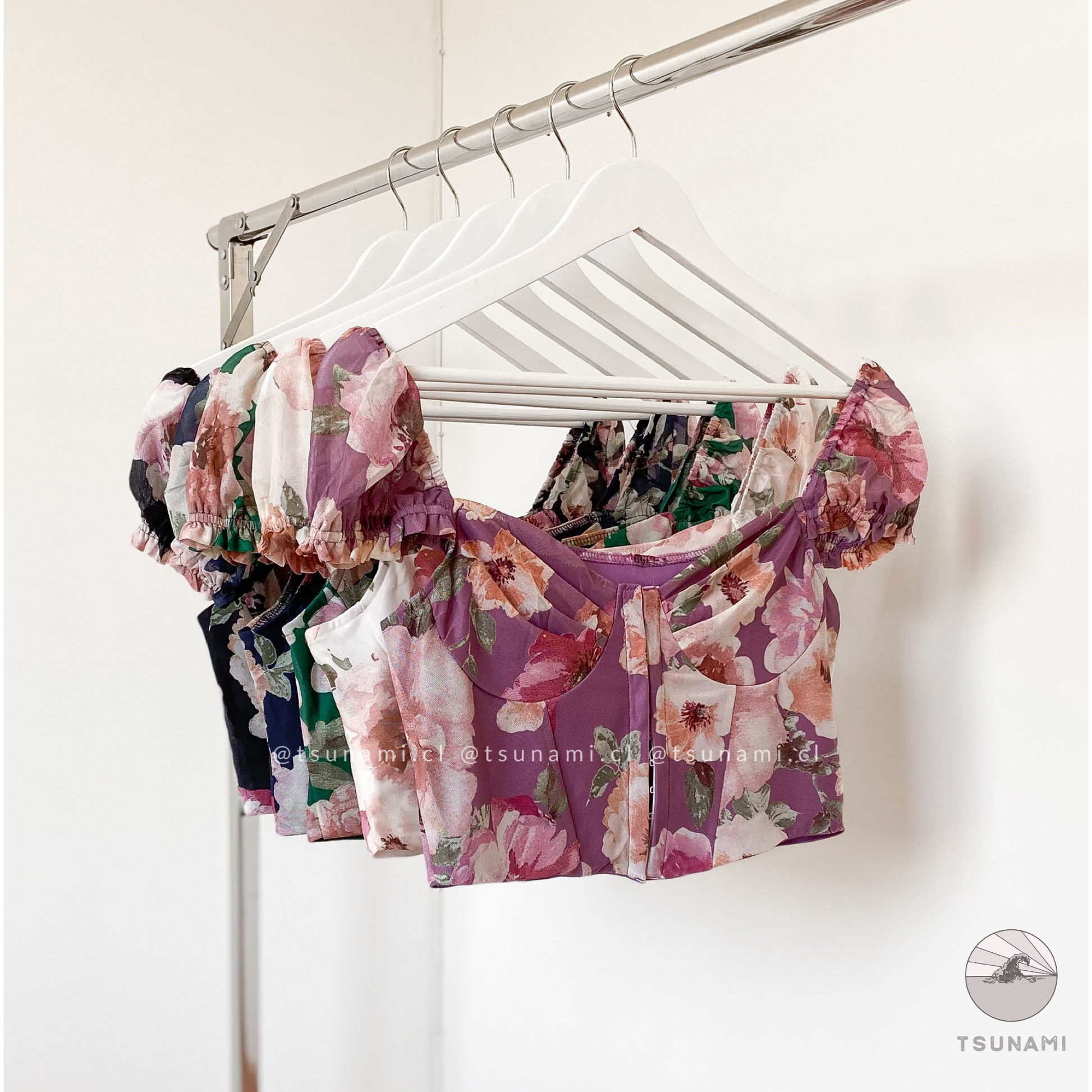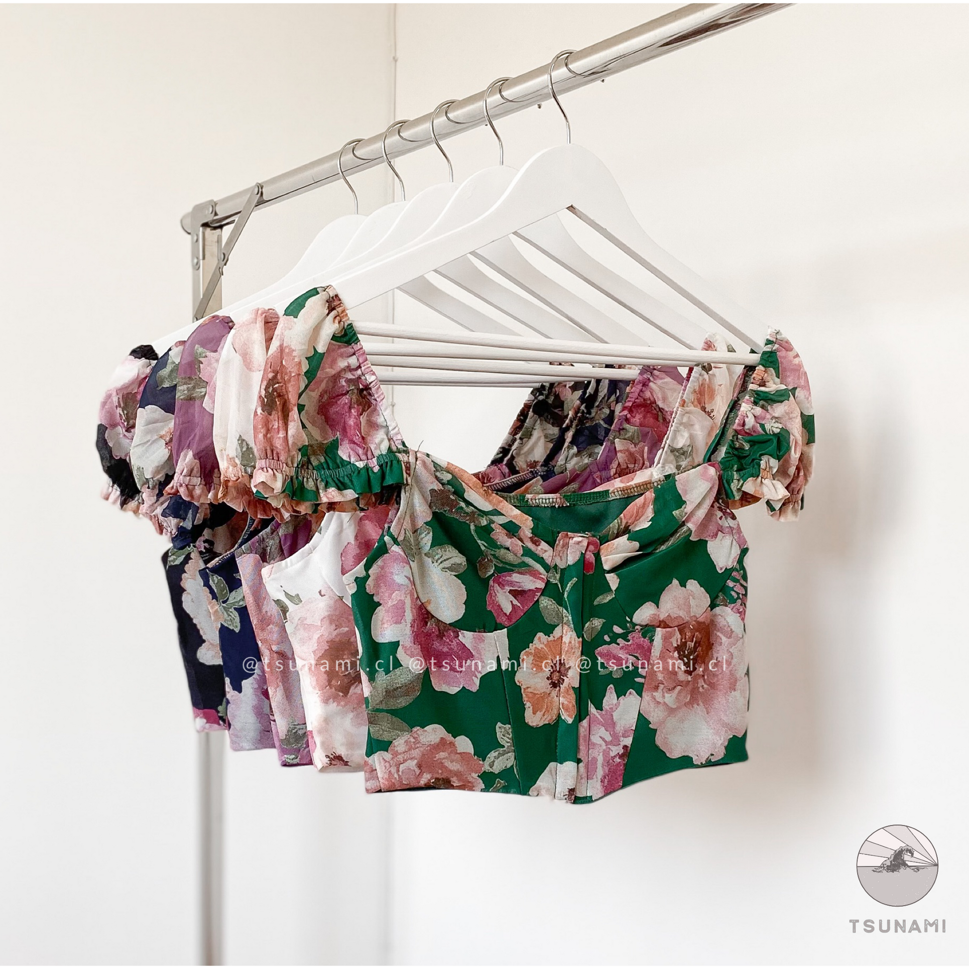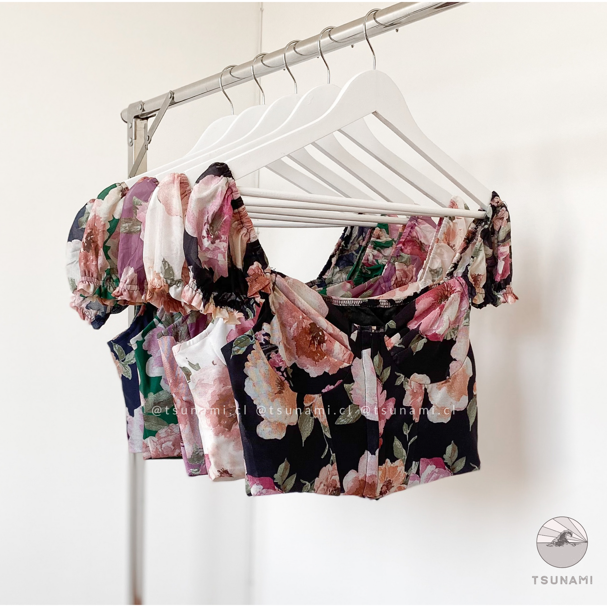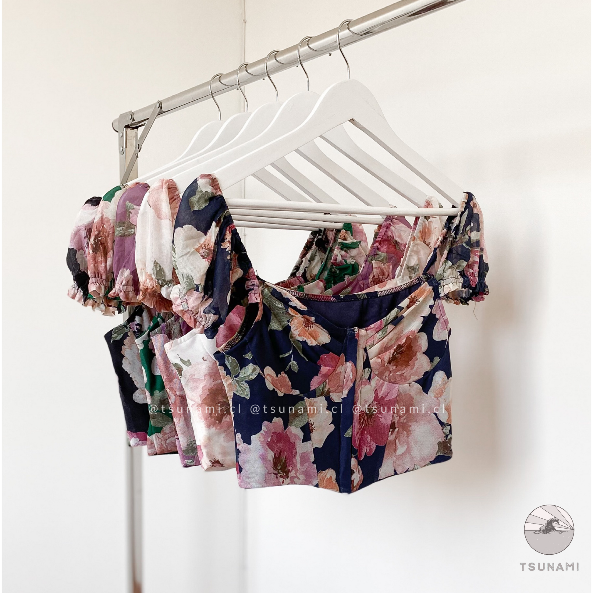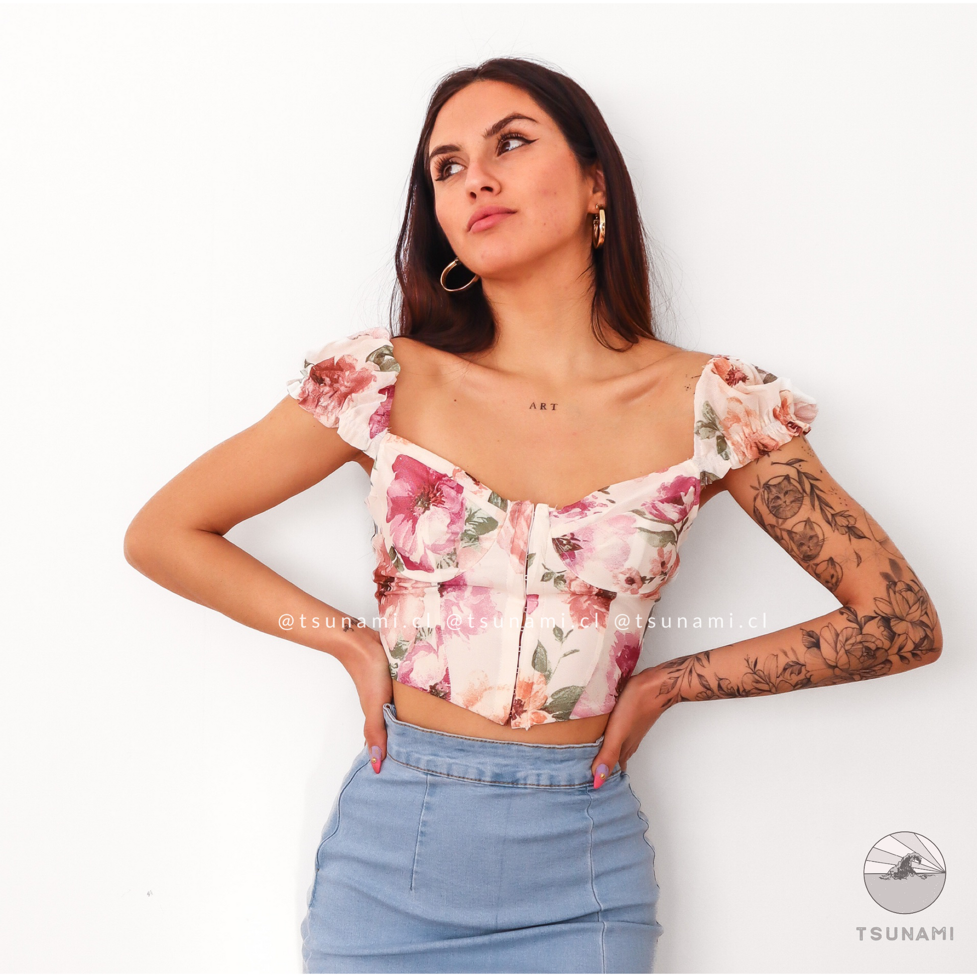 Top elasticado con broches, no trasluce ya que tiene forro interior en todo el top. El diseño floreado de este top lo convierte en una prenda representativa de la época primaveral.