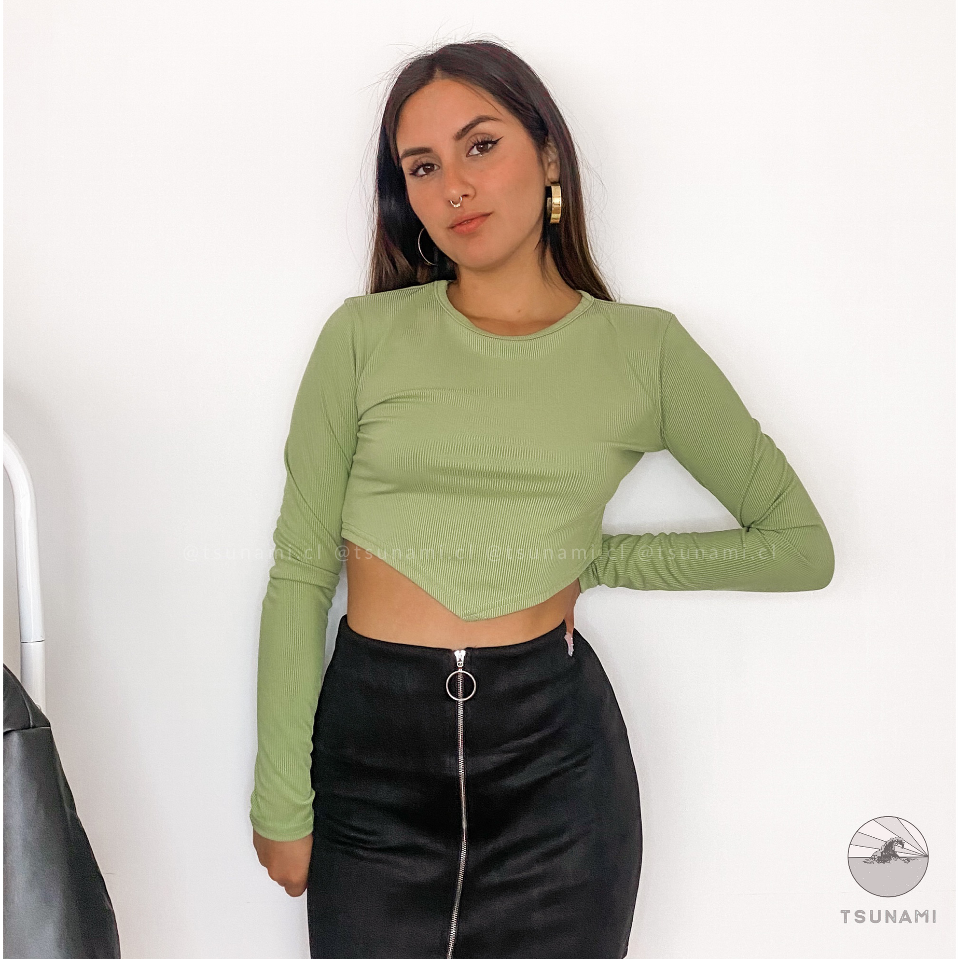 Top con terminación frontal en punta, es delgadito y se ajusta a tu cuerpo perfectamente. Es una prenda básica disponible en colores súper otoñales, ideales para la temporada.