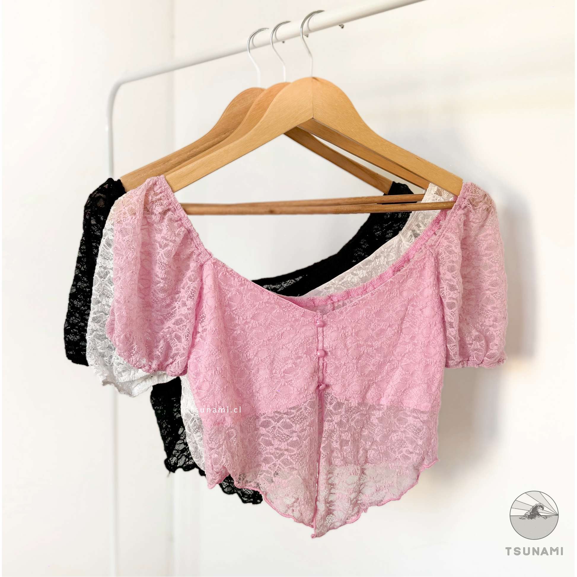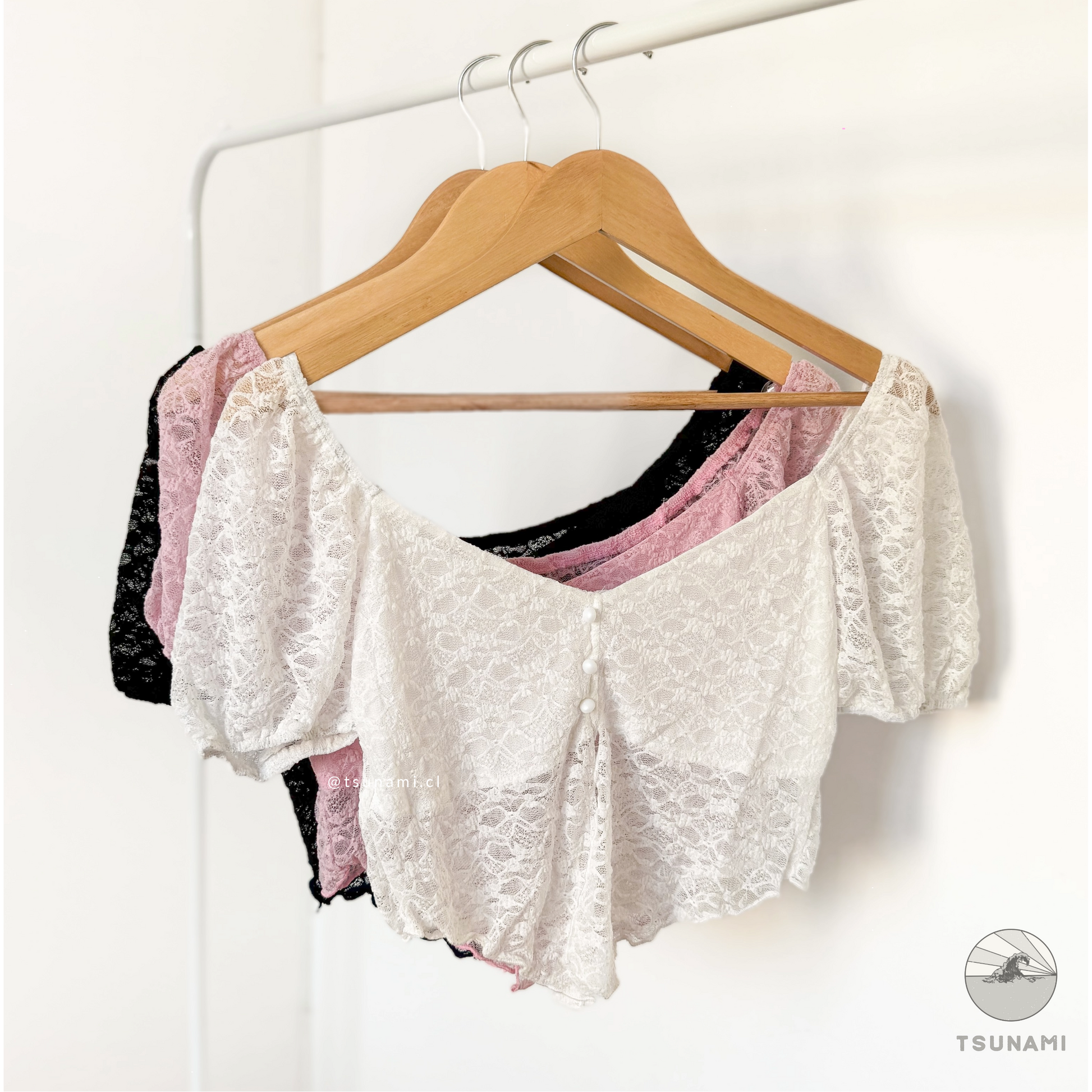 Un top muy femenino de tela y detalles delicados. Elasticado, fresco y cómodo.
