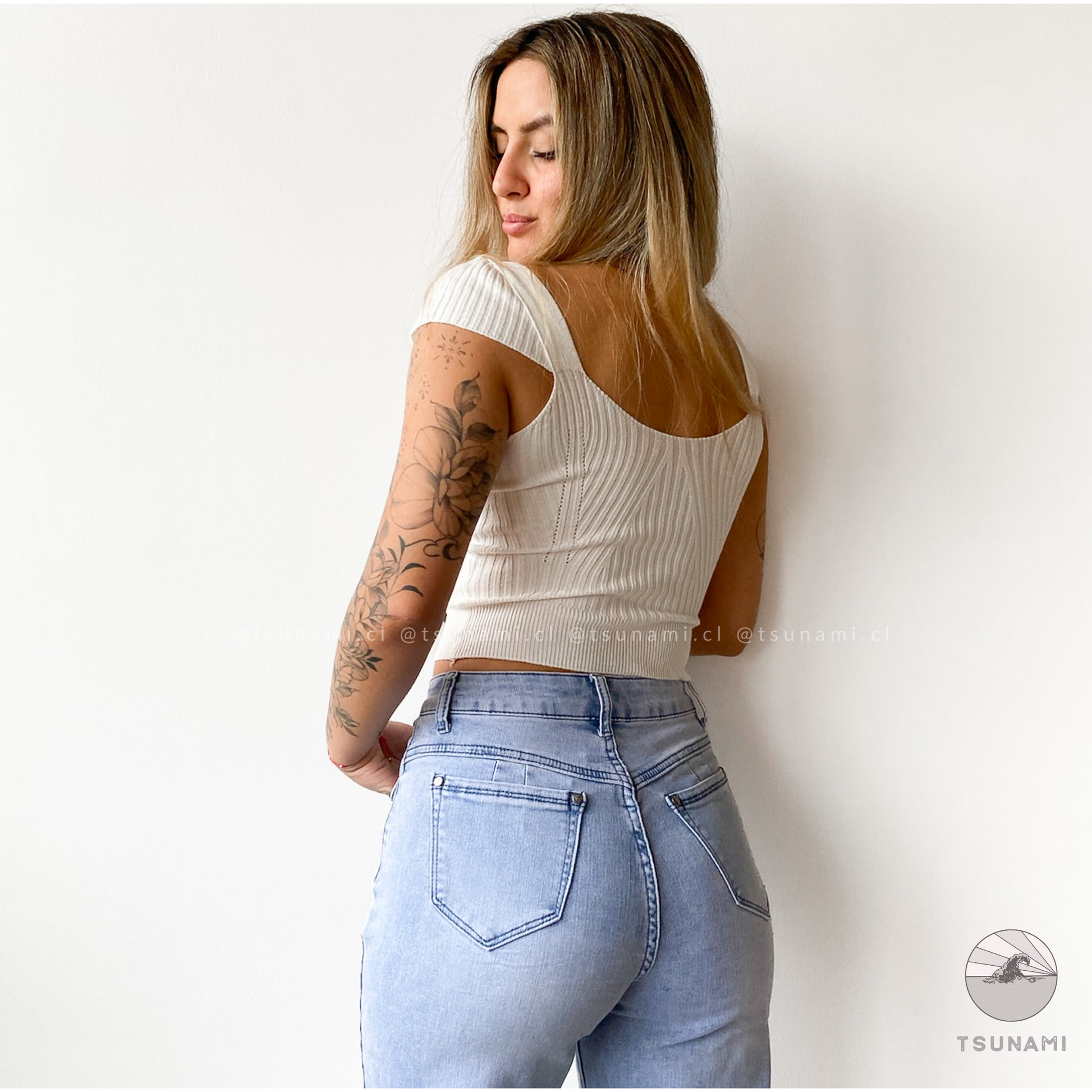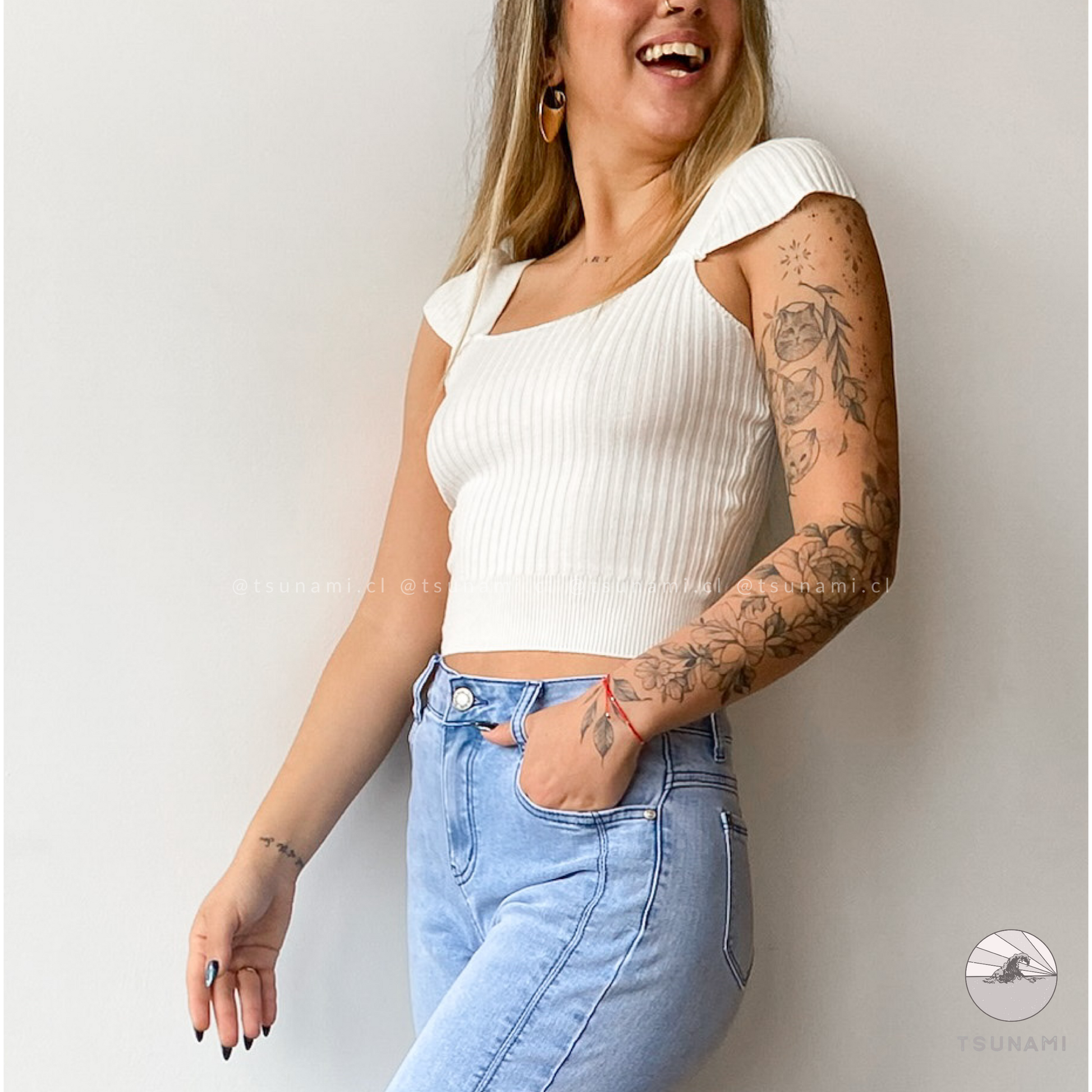 Top elasticado, tejido muy suave de viscosa, es de grosor medio, se ajusta muy bien al cuerpo, fresco y cómodo.