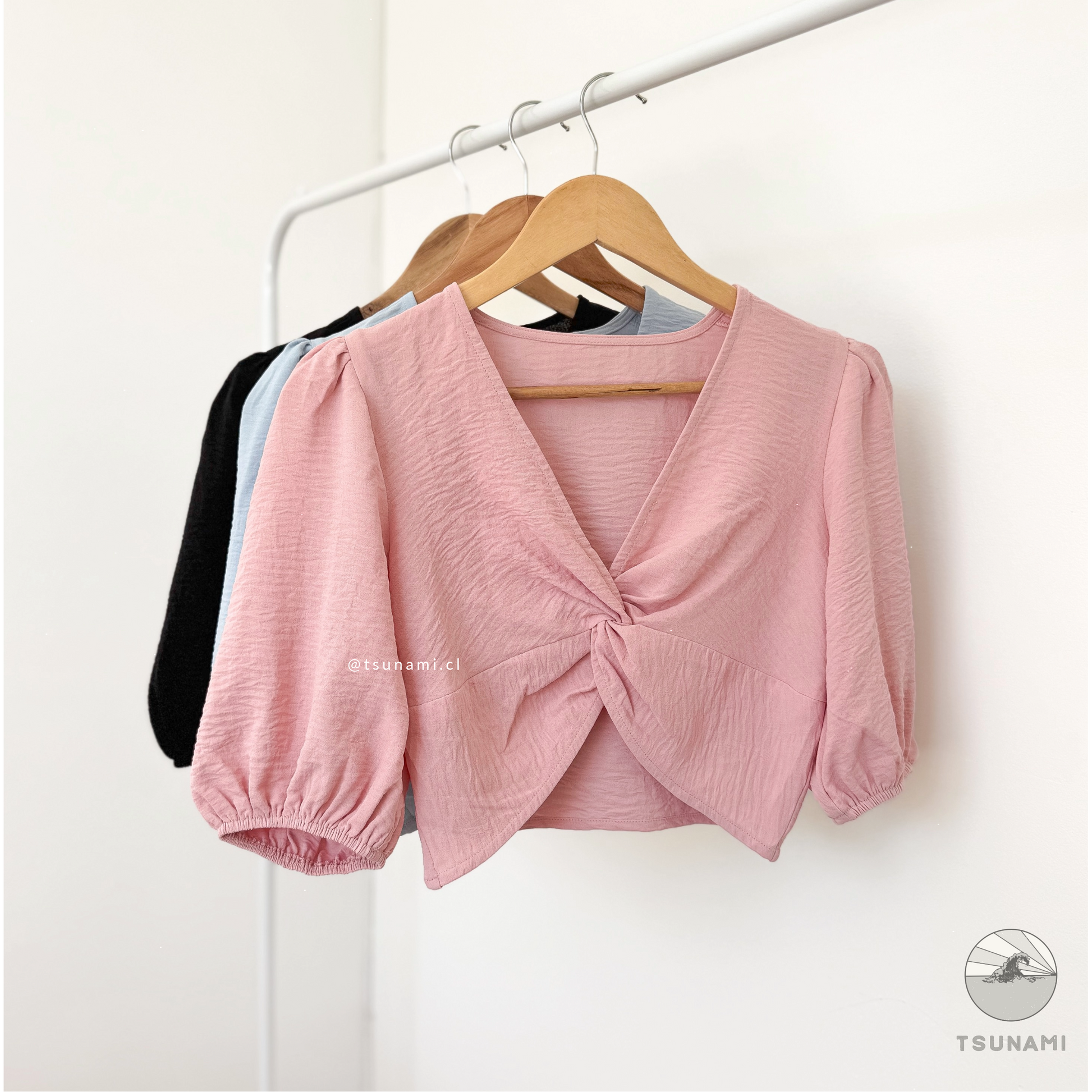 Crop top nudo con manga 3/4 abullonada. Es de tela delgadita y liviana, fresca para estar cómoda en los días más calurosos!!