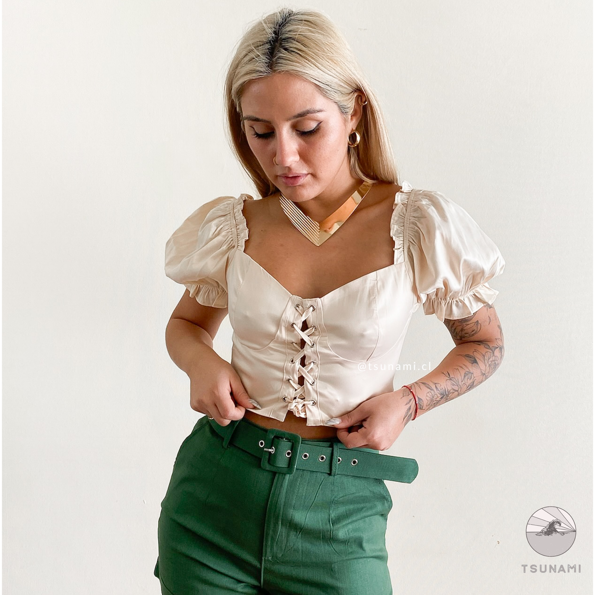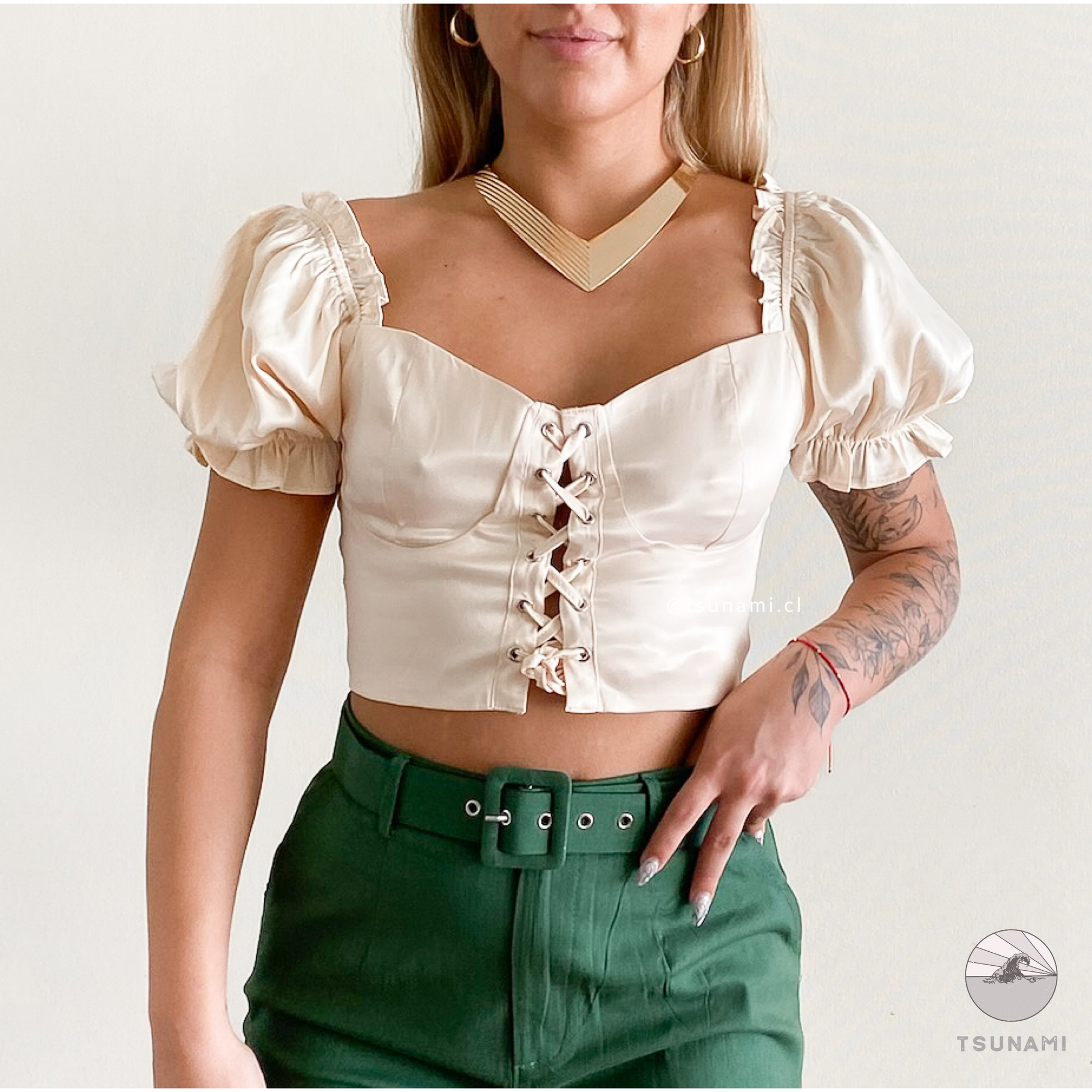Prenda muy versátil!! Puedes usarlo en looks de día, de noche, casuales e incluso más formales. Las mangas estilo princesa le dan un toque romántico a este top, además se puede ajustar al frente para resaltar más tu figura.