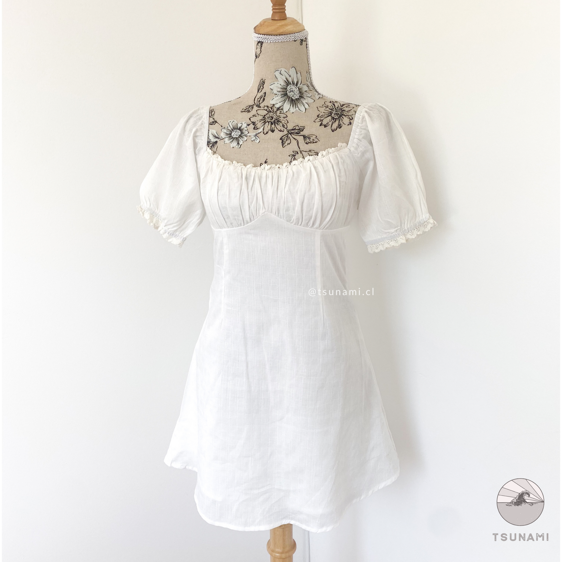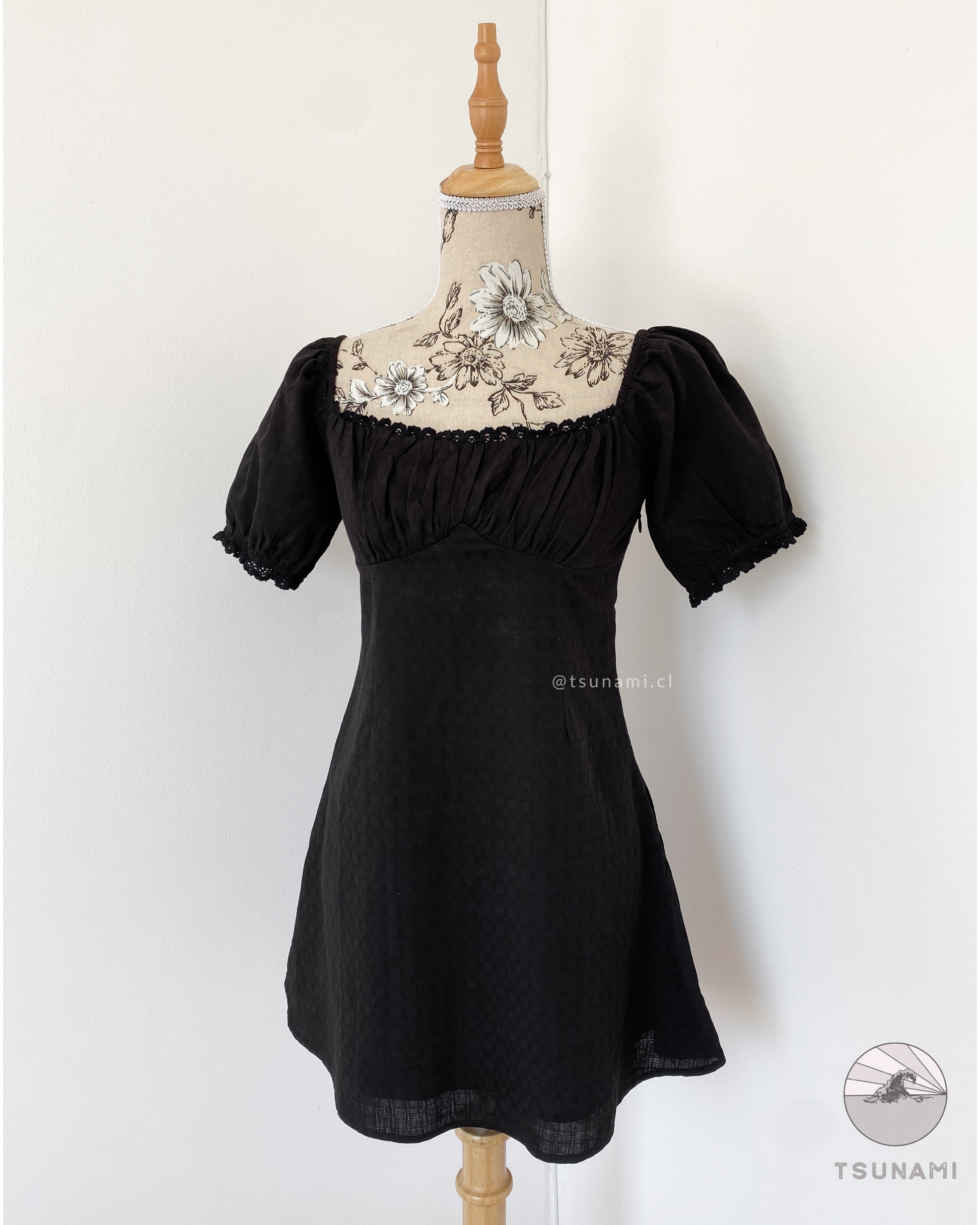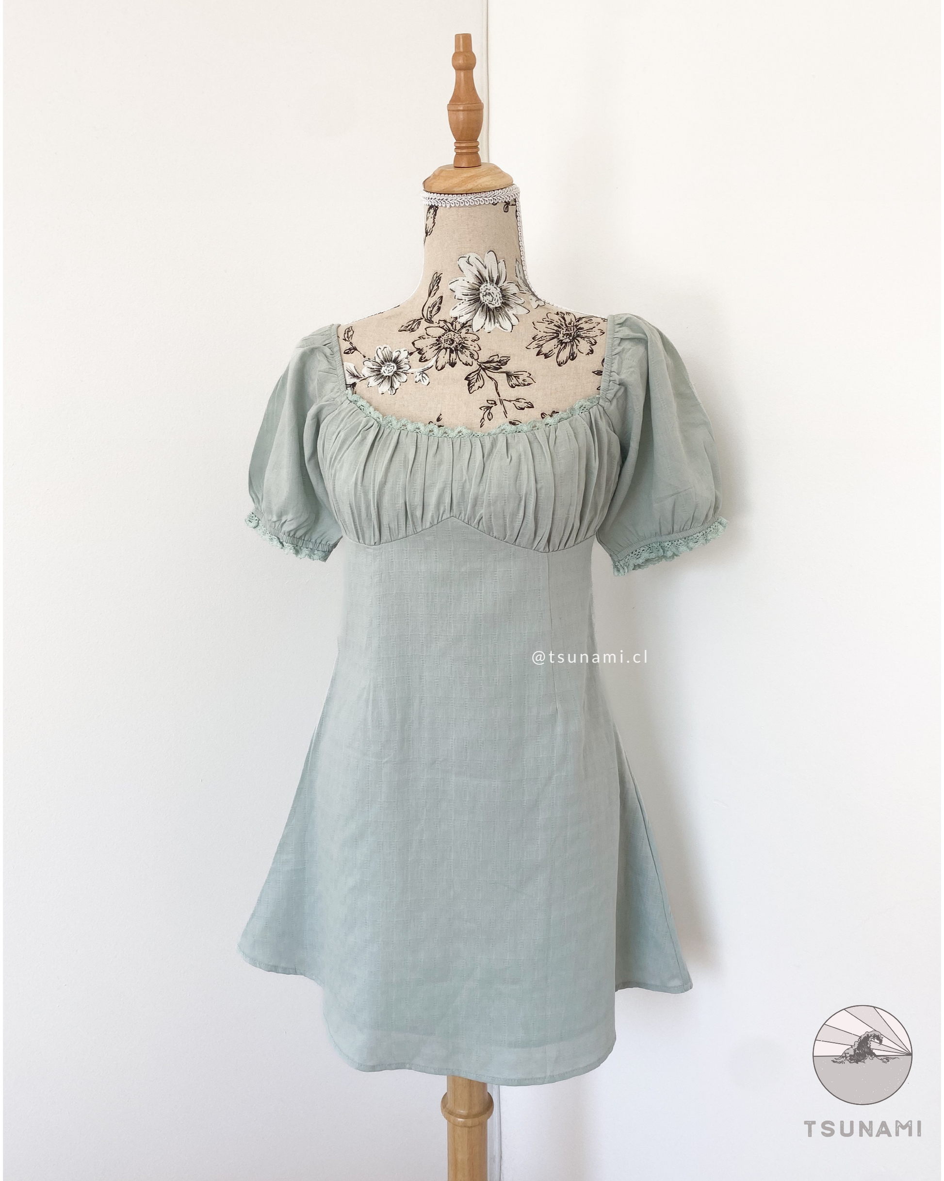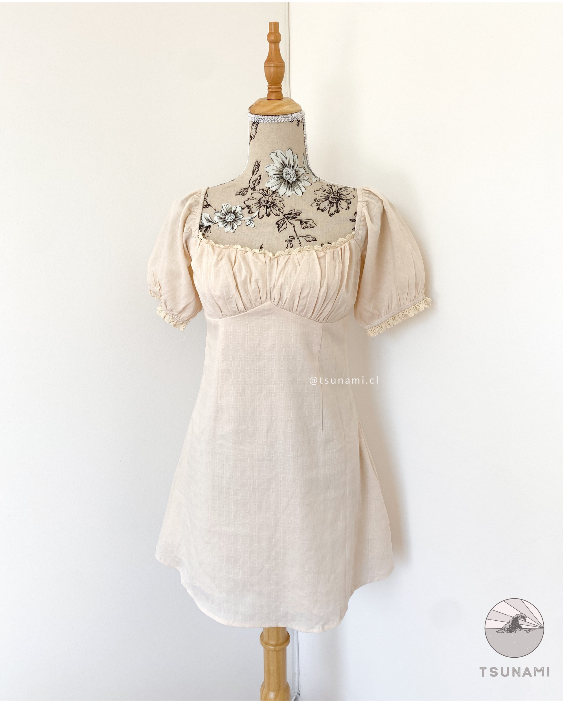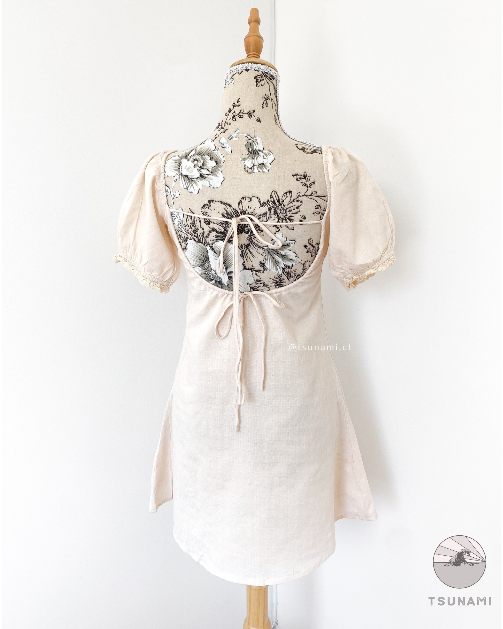 Vestido súper cute con mangas galopadas y espalda un poco rebajada. Está hecho de tela con características similares al lino: ligera y fresca, por lo que es ideal para los días mas calurosos.